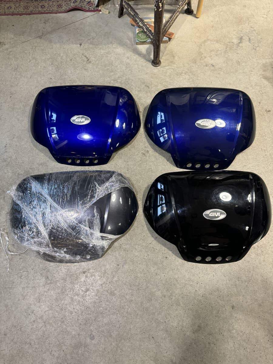 Prodáme originál lakované víka kufrů GIVI na kufry GIVI V46 barva: černá, šedá, modré navy, modrá steel dále GIVI Simply 470 barva: stříbrná GIVI Maxia 52 barva: stříbrný mat. dále vrchní kryt na topcase Kawasaki Versys (klasická zelená) za 699, a 1x givi (bílá) a 1x GIVI s emblémem suzuki (červený). Prosíme pouze VOLAT. Díky!