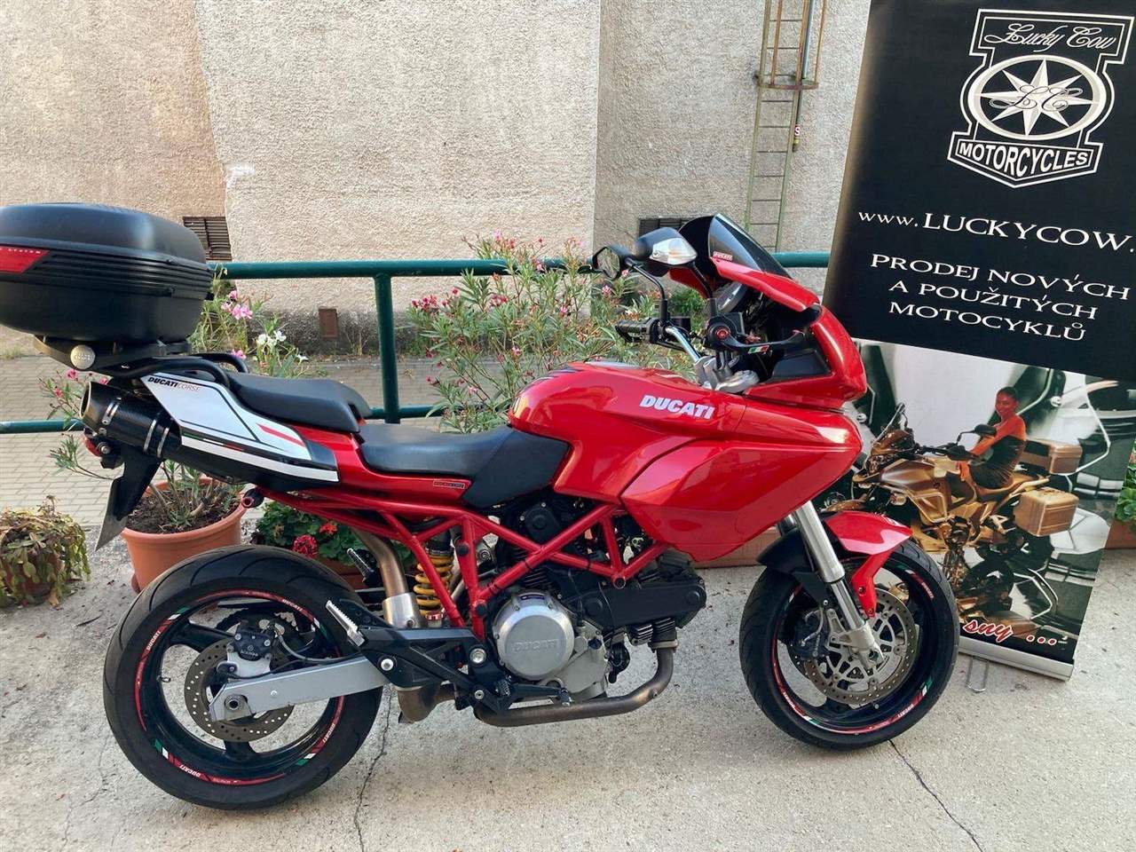Nehavarovaná lehounce ovladatelná setra od větší multice pro bábovky, nebo bázlivé klučíky. Velmi atraktivní vzhled v gtradiční červené s pár doplňky v ceně - topcase, carbon výfuky aj.. Motocykl s CZ TP a platnou TK do 7/2028. Prosíme pouze VOLAT. Děkujeme!