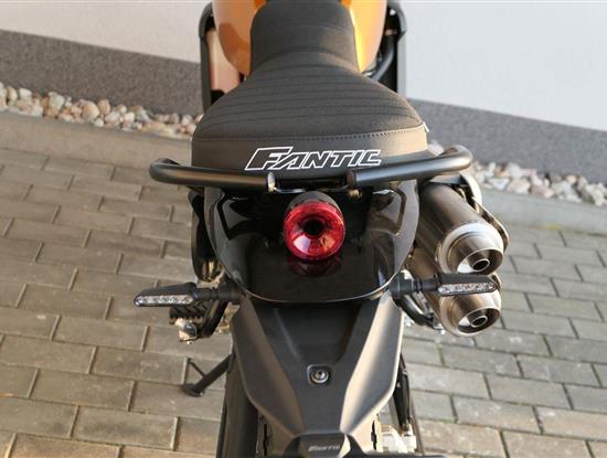 Elegantní lakovaná nádrž, kontrastní závodní číslo na boční tabulce a řada CNC detailů odkazují na legendární modely Fantic ze 70. let.