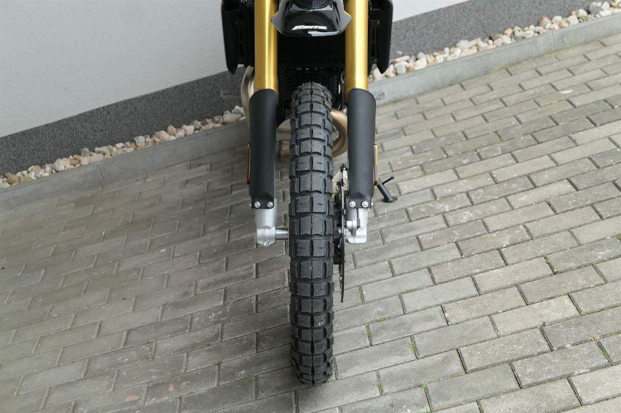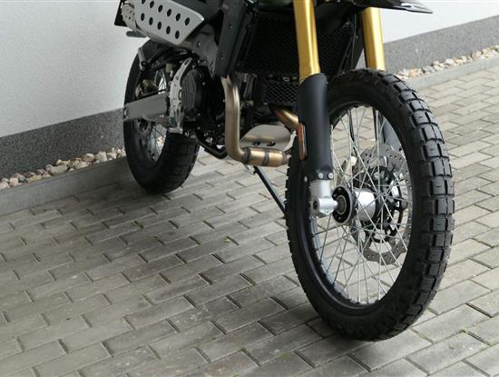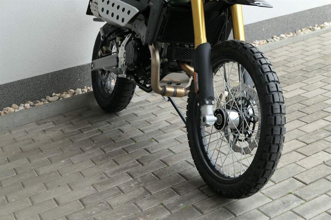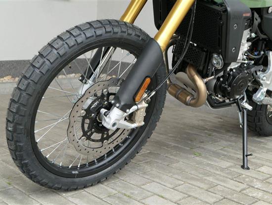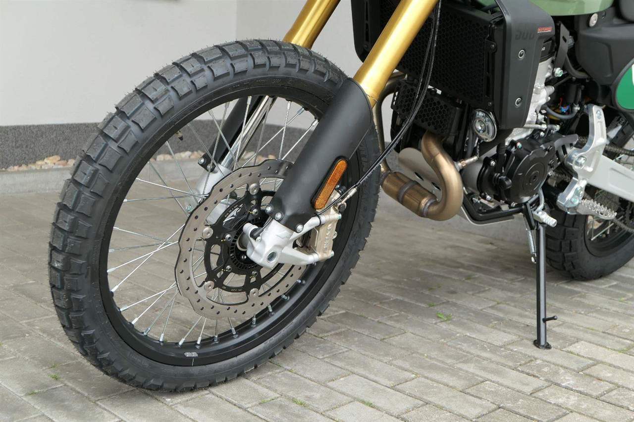 Drátová kola obutá do pneumatik Pirelli Scropion Rally (90/90-21 vepředu a 140/80-17 vzadu), dodávají motocyklu skutečný terénní charakter. 320 mm přední plovoucí a 230 mm zadní brzdový kotouč a nastavitelné náklonové ABS s kontrolou trakce zaručují skvělou bezpečnost v každé situaci.