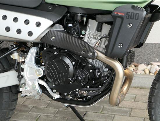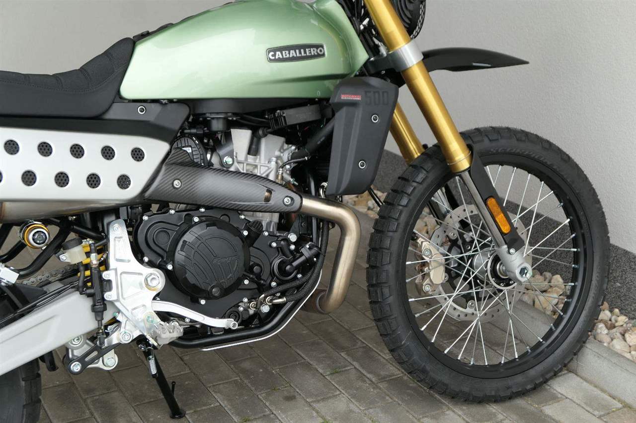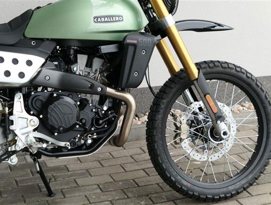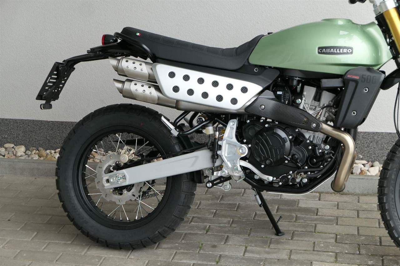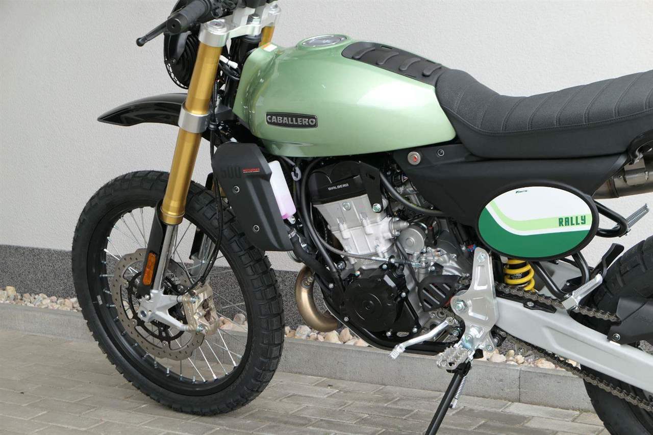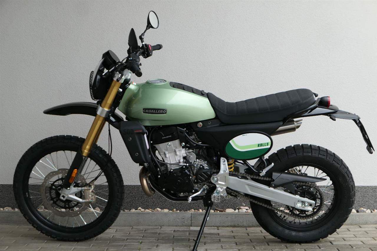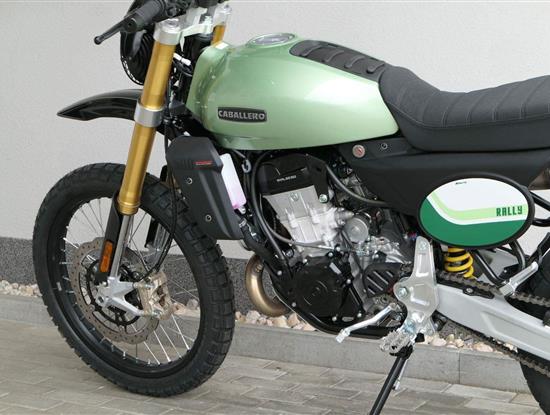 Caballero 500 Rally je vybaveno novým jednoválcovým motorem DOHC o objemu 460 ccm, vyvinutým a vyrobeným společností Motori Minarelli — italským srdcem, které poskytuje vynikající výkon a vzrušující jízdní projev, navržený tak, aby si poradil s jakoukoli terénní výzvou s maximální silou a spolehlivostí. Motor, jenž zosobňuje vášeň a excelenci italské motocyklové tradice.