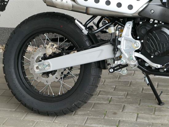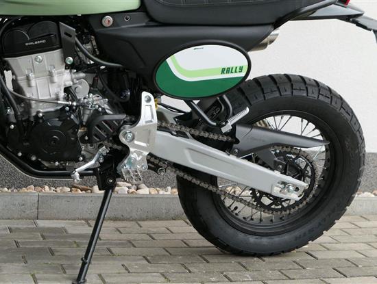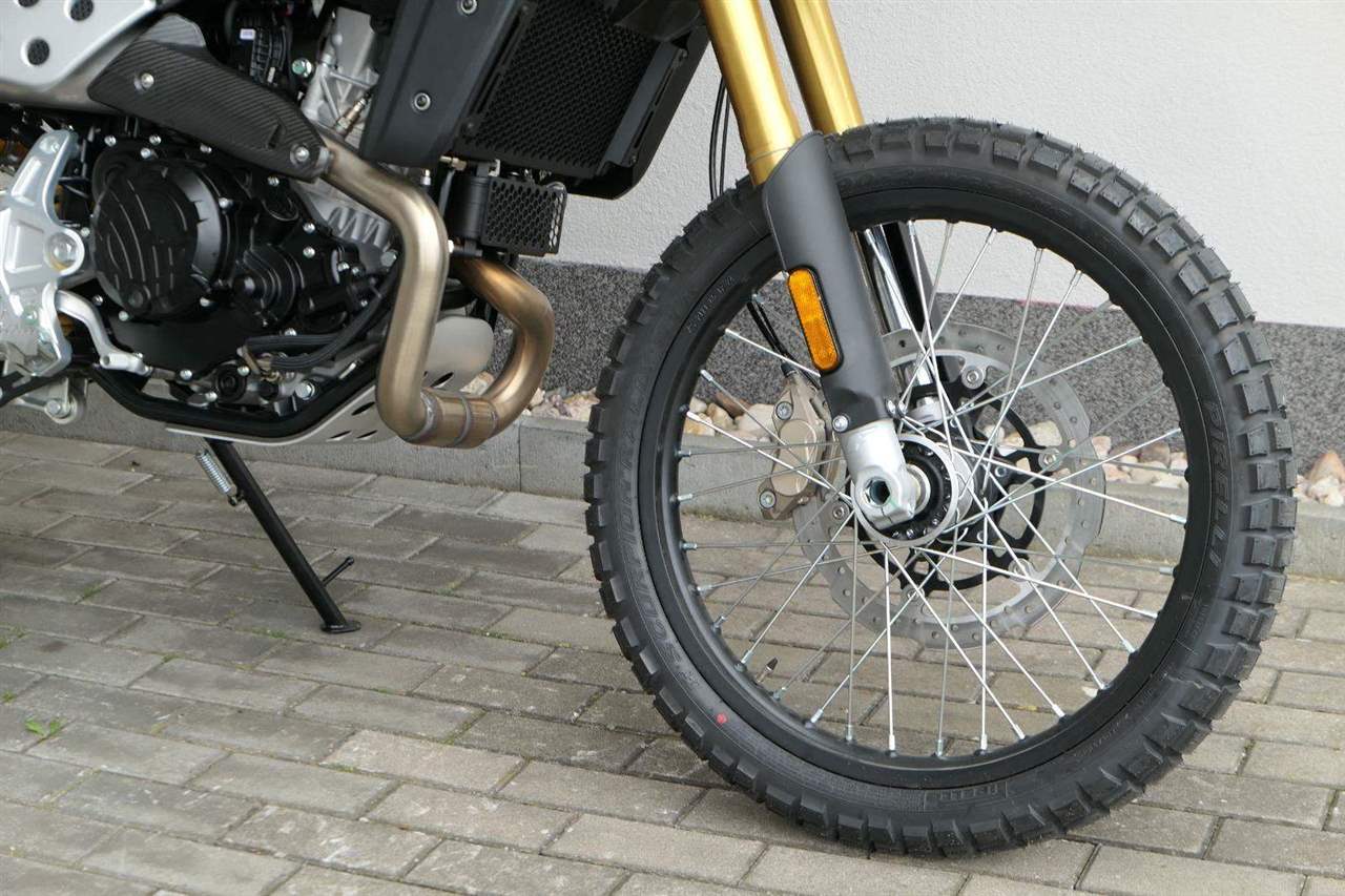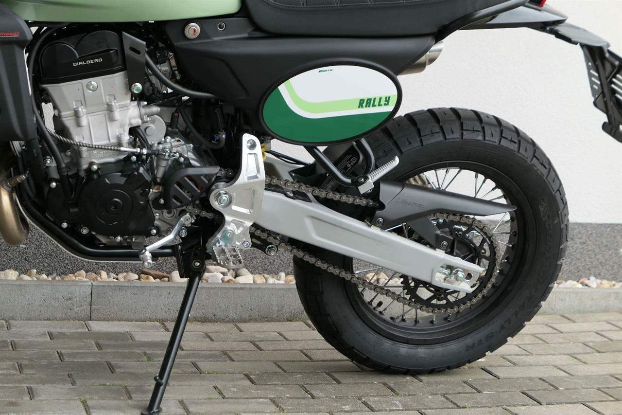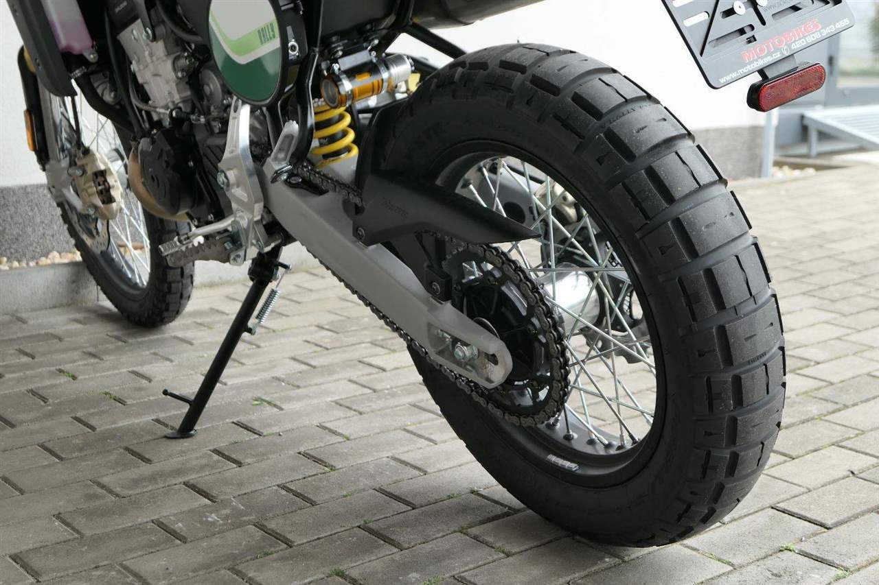 Jeho off-roadová konfigurace — obsahující 43mm plně nastavitelné odpružení se zvětšeným zdvihem, vysoko umístěný přední blatník, kyvnou vidlici z hliníkové slitiny s variabilním průřezem a progresivní přepákování — z něj dělá ideálního společníka pro jezdce, kteří hledají intenzivní zážitky a dobrodružství. Dominantním prvkem verze Rally je 21" přední kolo, které zaručuje špičkové off-roadové vlastnosti.