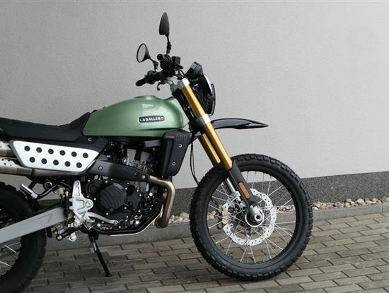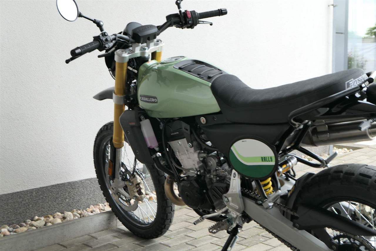 Caballero 500 Rally od Fantic Motor je navrženo pro ty nejextrémnější off-roadové podmínky, kombinuje odvážný design s vysoce účinnými technickými komponenty. Každý detail je vymyšlen s ohledem na odolnost a funkčnost: vysoký přední blatník, kryt motoru, ochranná mřížka světlometu i přední startovní tabulka zdůrazňují jeho dobrodružný charakter.