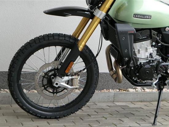 Caballero 500 Rally představuje vrchol podvozkové evoluce celé modelové řady, navržený pro zvládnutí jakéhokoli terénu s maximální jistotou. Poprvé je vybaven pneumatikami Pirelli Scorpion Rally STR a předním kolem o průměru 21" — ideální kombinace pro zvýšenou stabilitu a kontrolu v terénu.