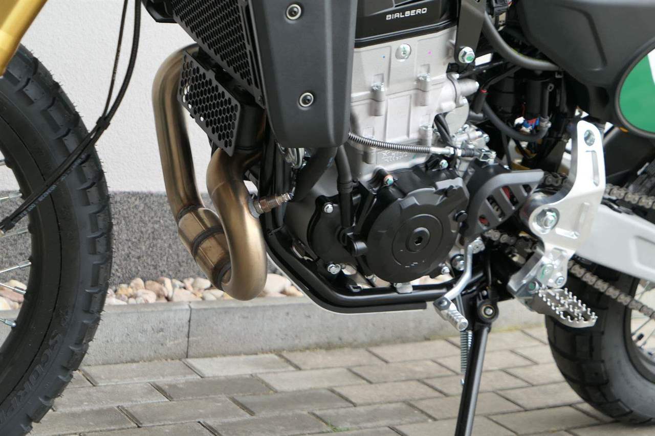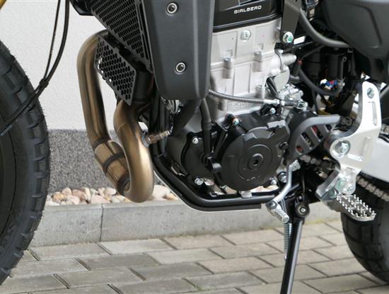 Dvojitý vačkový hřídel s vahadly zajišťuje ostrou a razantní odezvu v celém rozsahu otáček, přičemž kombinuje typický točivý moment jednoválce se sportovním výkonem — na vrcholu třídy řidičského oprávnění A2. Kovaný píst, inspirovaný závodní technikou, umožňuje vysoké otáčky, zatímco kompaktní hlava válce optimalizuje vyvážení motocyklu a nabízí ideální uspořádání pro přesné a stabilní ovládání, zejména v oblasti nádrže.