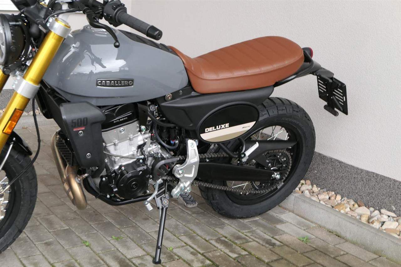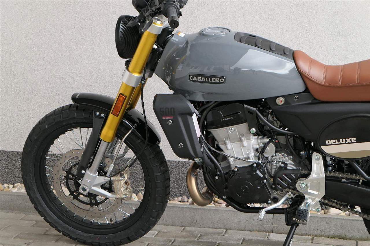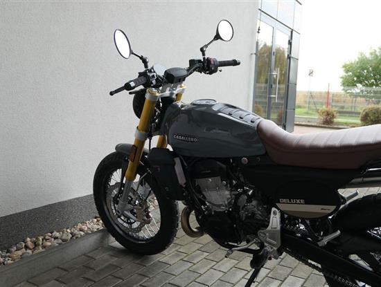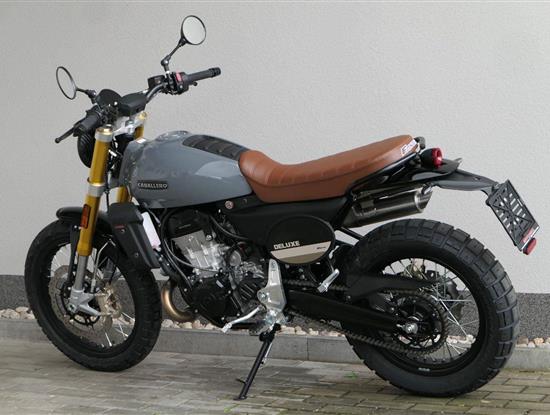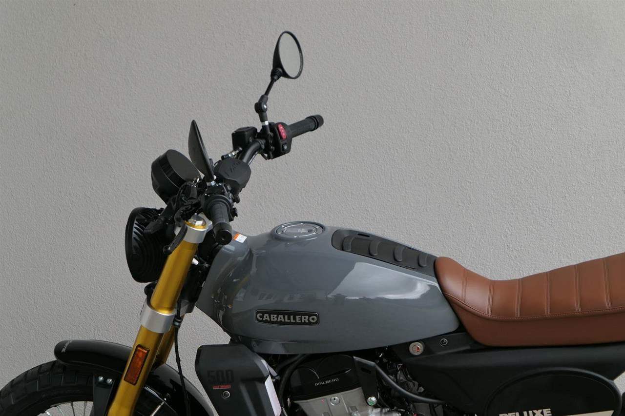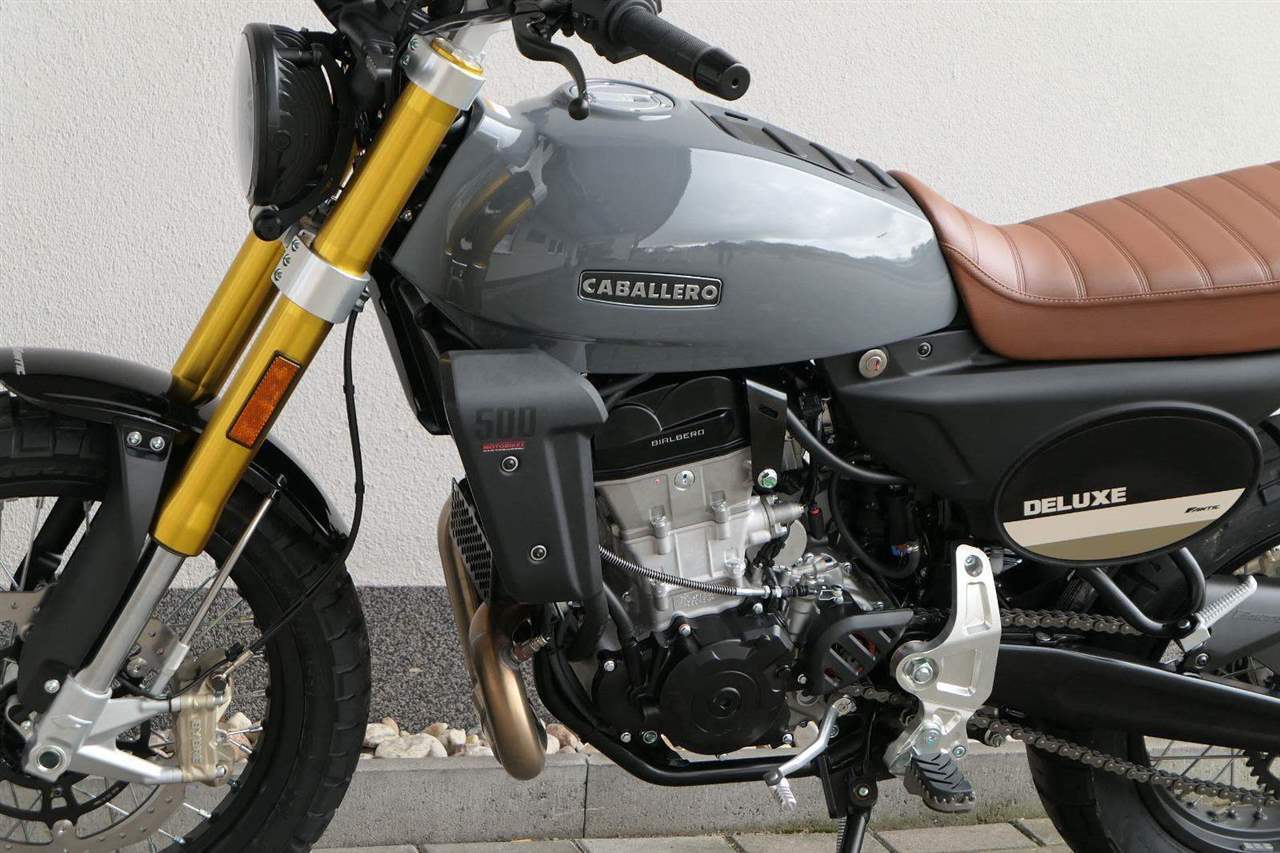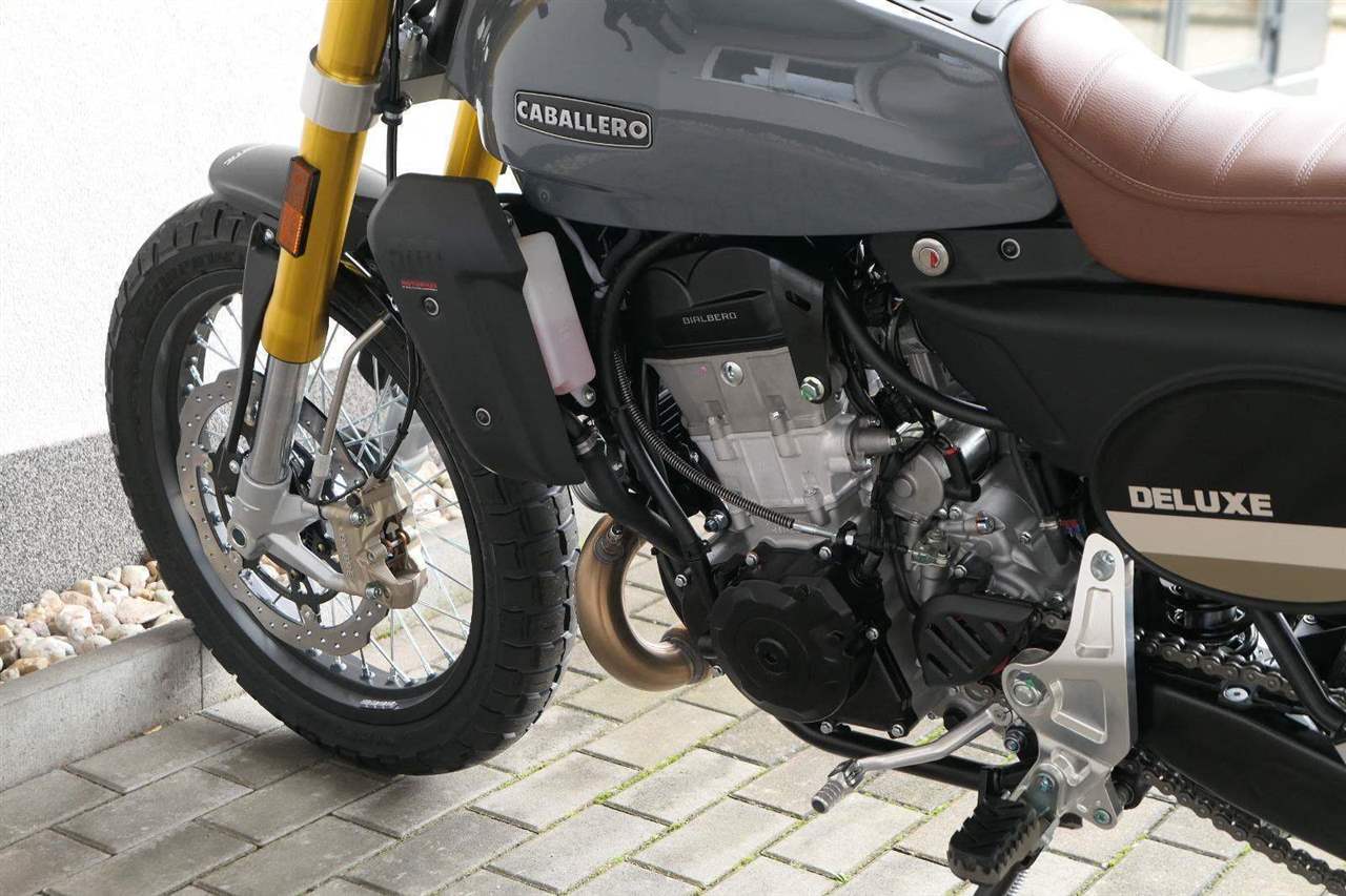 Caballero 500 Deluxe je ideální pro ty, kteří si rádi užívají lehký off-roadový zážitek na elegantním, přesto rebelském stroji, který nabízí perfektní zvládání hustého městském provozu a nebojí se vyjet i mimo zpevněné cesty. Verze Deluxe je vyrobená podle stejných technických specifikací jako provedení Scrambler, ale s důrazem na eleganci a italský styl. Skutečný mix městského a terénního bajku!