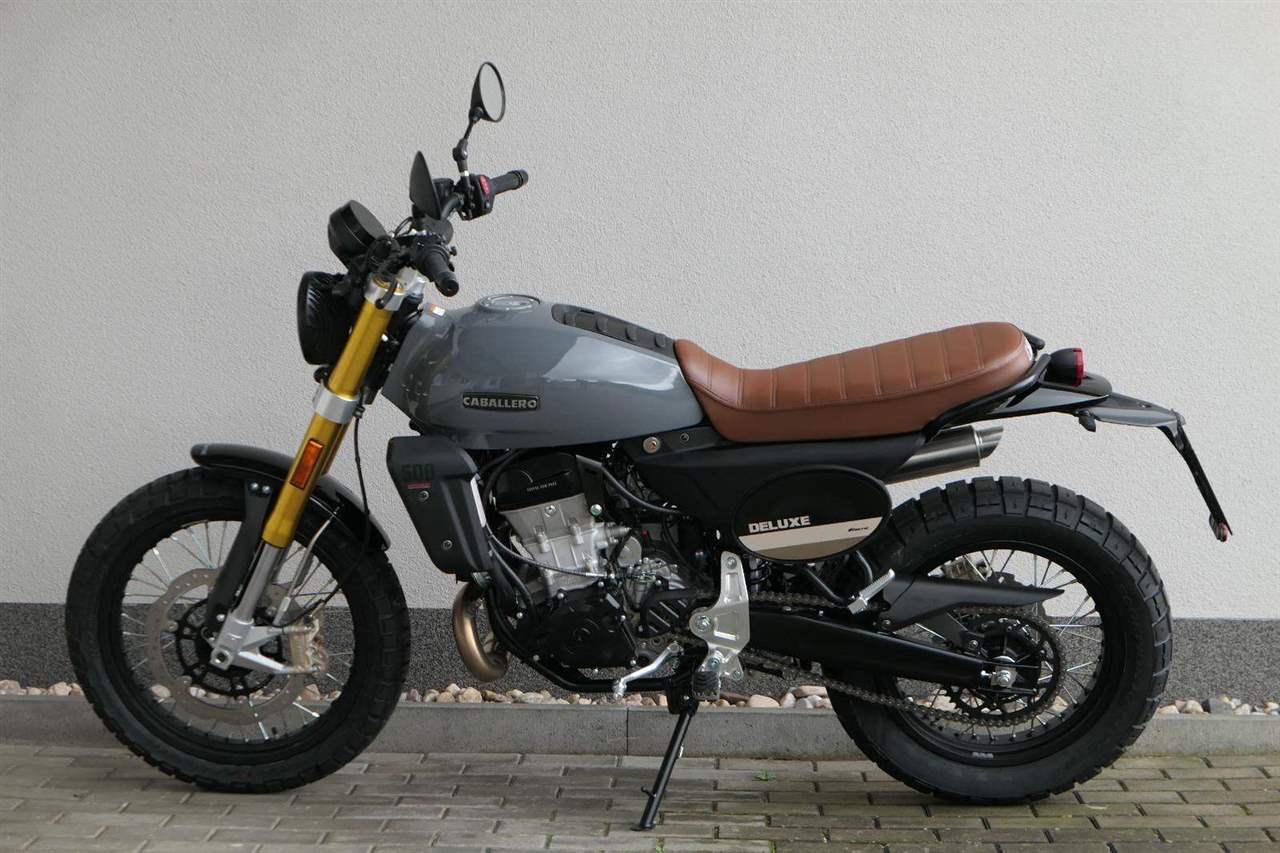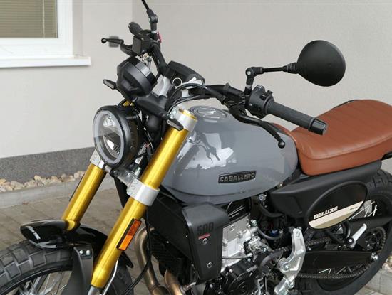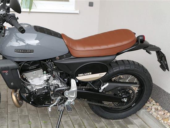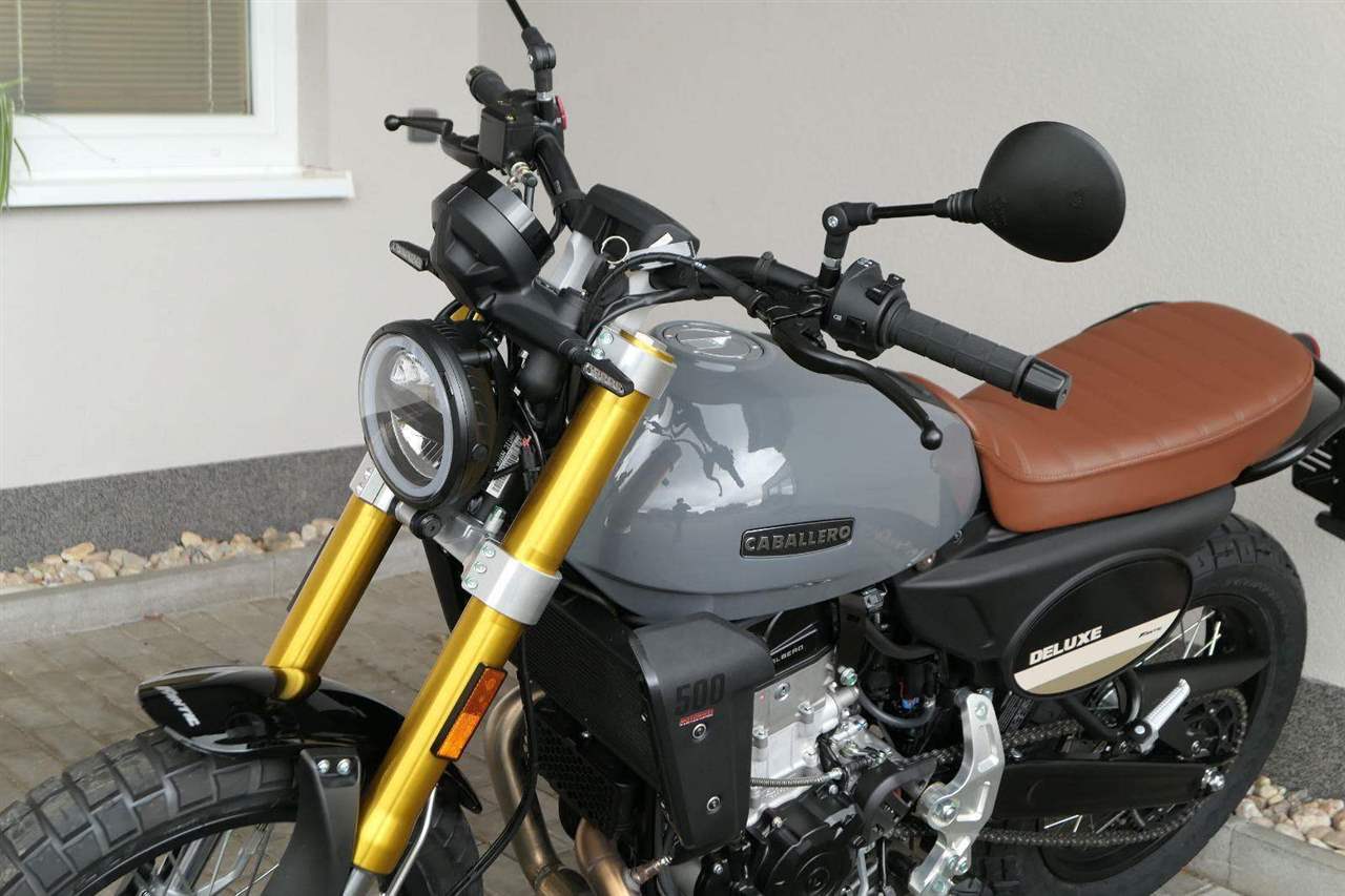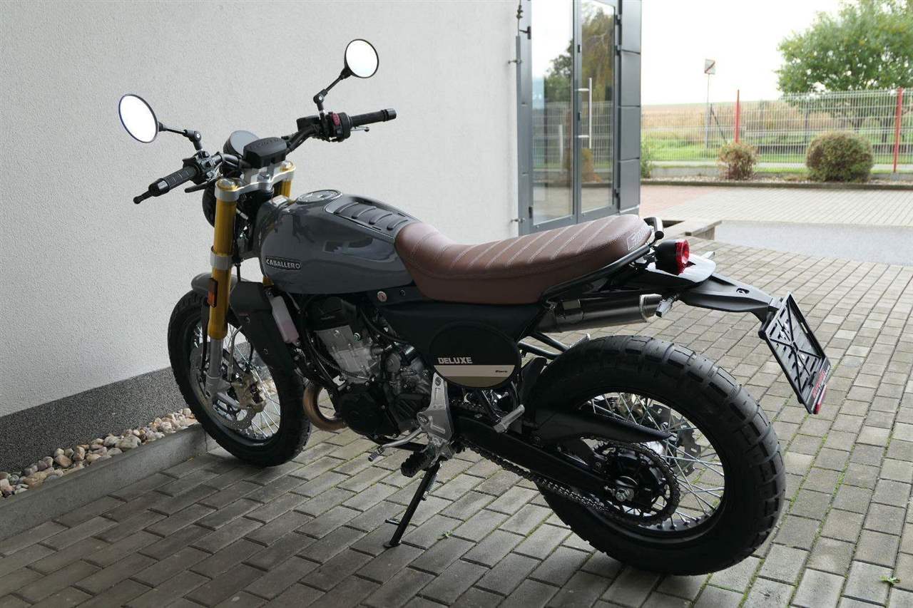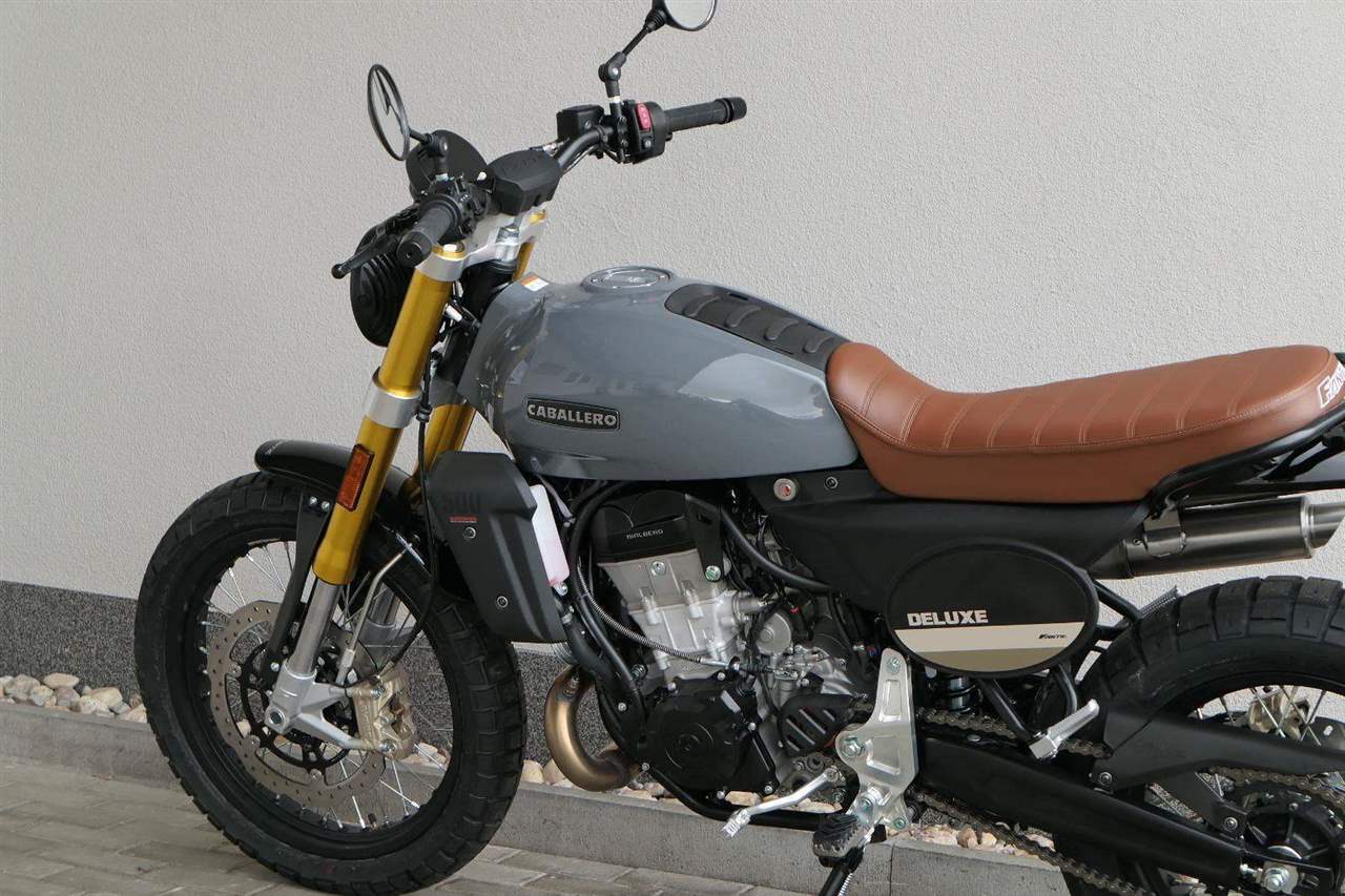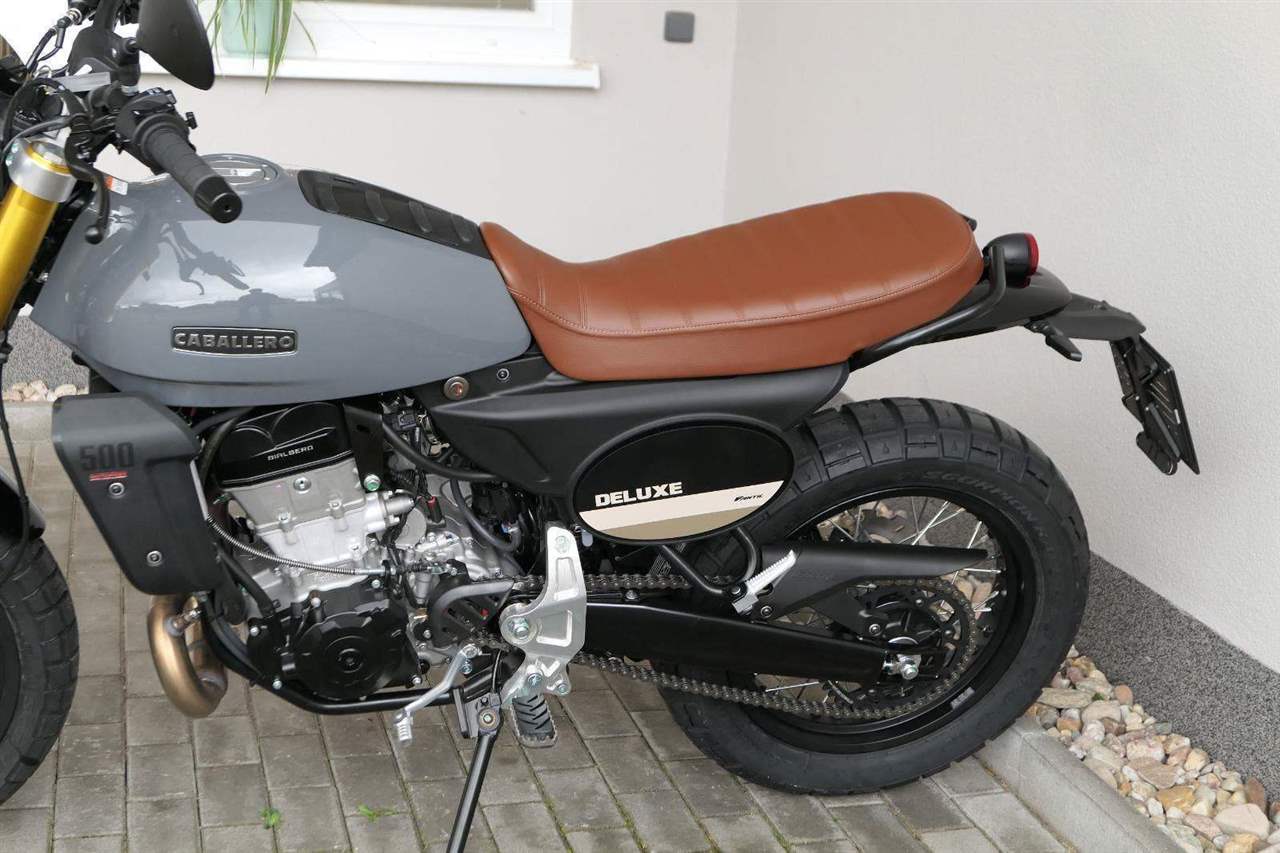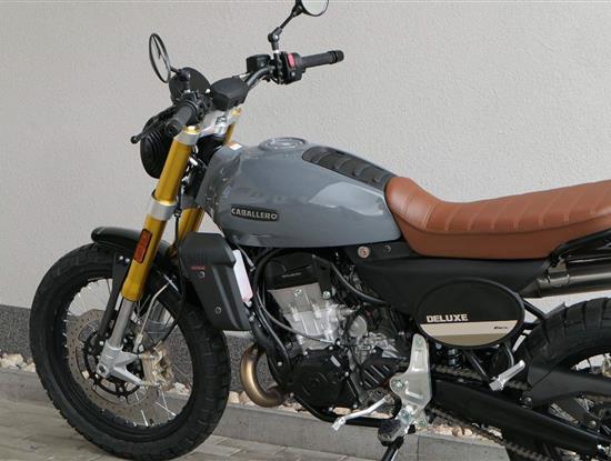 Caballero 500 Deluxe je ideální pro ty, kteří si rádi užívají lehký off-roadový zážitek na elegantním, přesto rebelském stroji, který nabízí perfektní zvládání hustého městském provozu a nebojí se vyjet i mimo zpevněné cesty. Verze Deluxe je vyrobená podle stejných technických specifikací jako provedení Scrambler, ale s důrazem na eleganci a italský styl. Skutečný mix městského a terénního bajku!