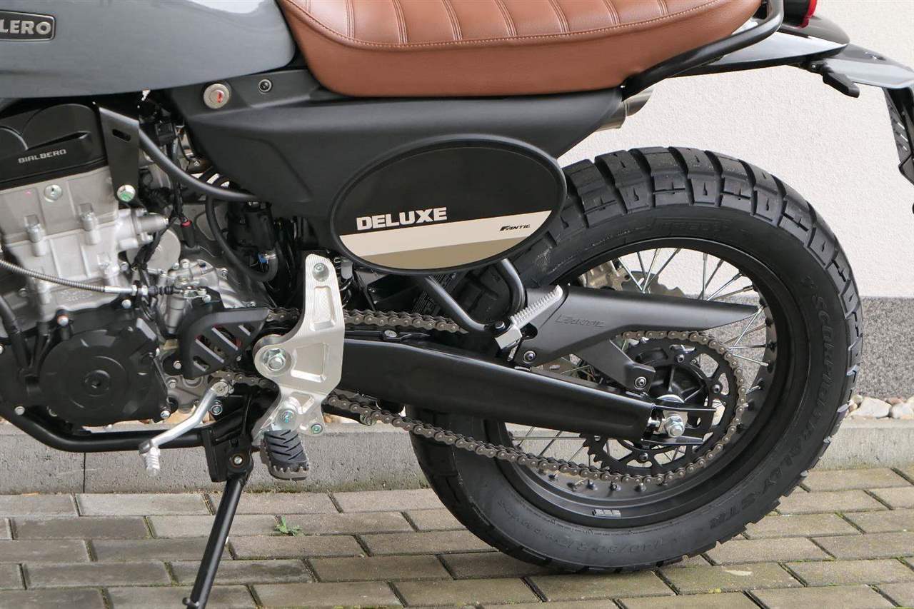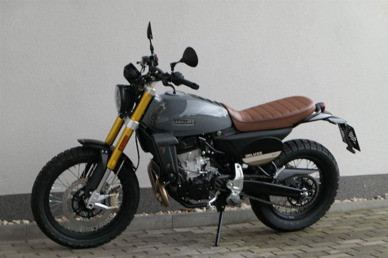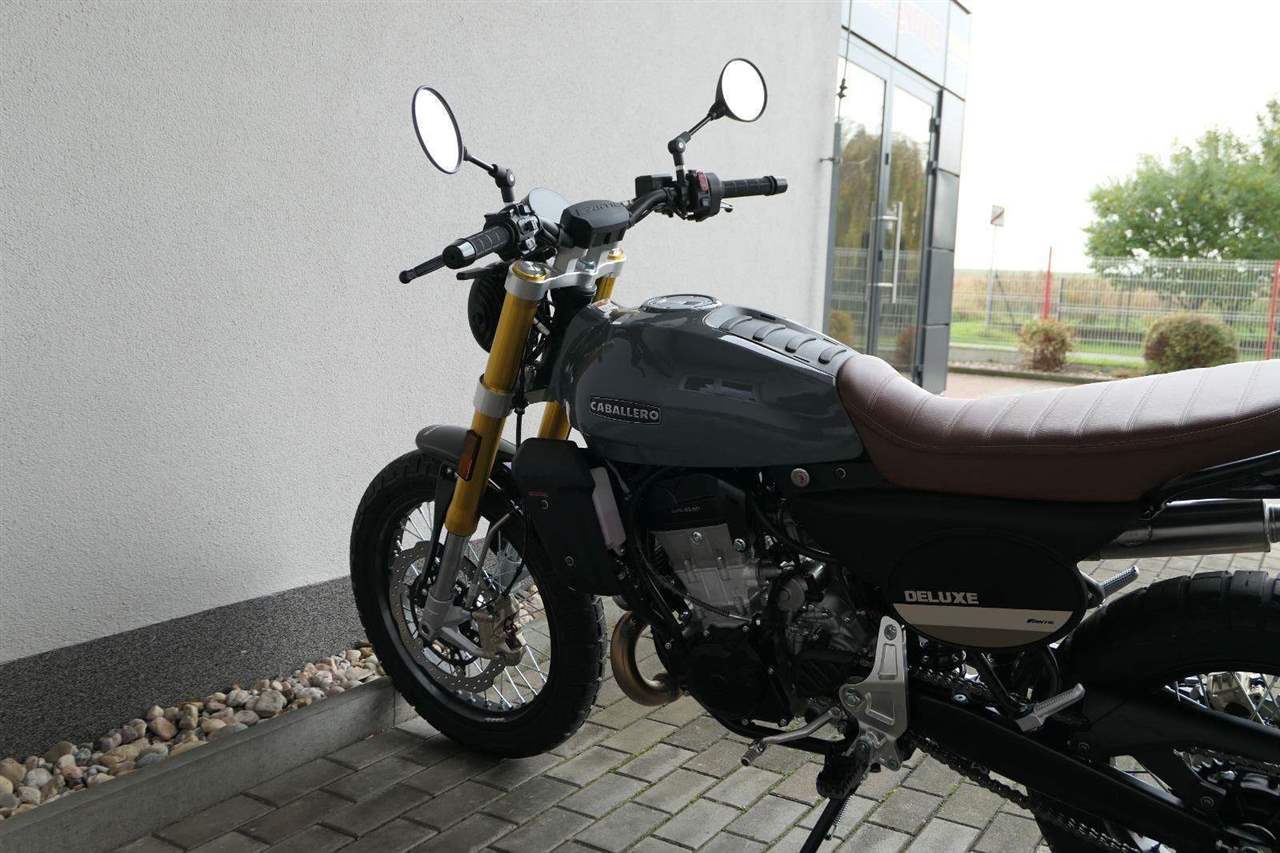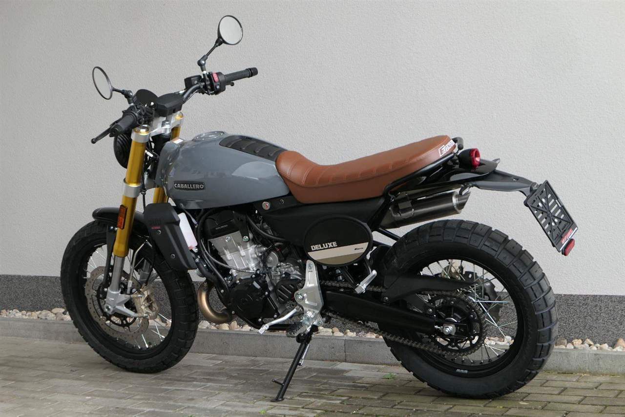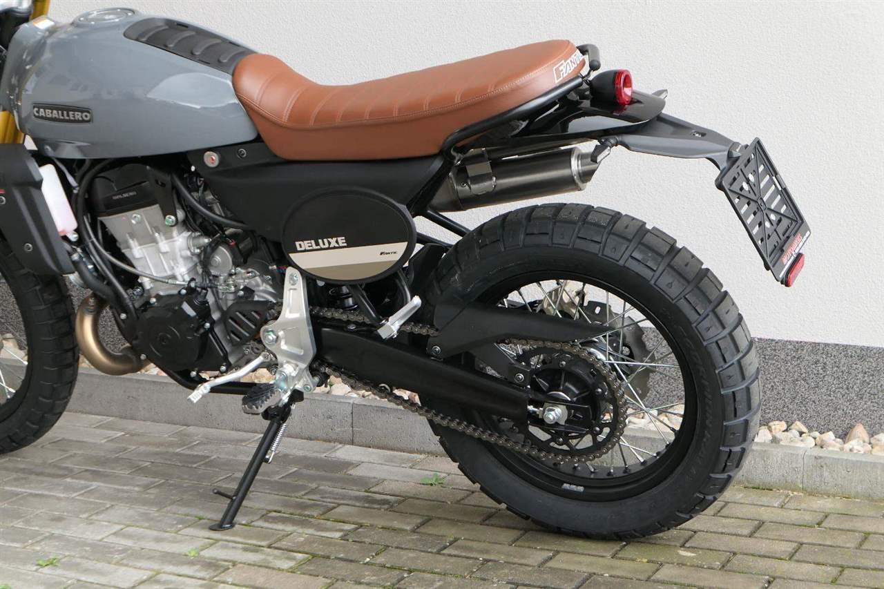 Caballero 500 Deluxe je ideální pro ty, kteří si rádi užívají lehký off-roadový zážitek na elegantním, přesto rebelském stroji, který nabízí perfektní zvládání hustého městském provozu a nebojí se vyjet i mimo zpevněné cesty. Verze Deluxe je vyrobená podle stejných technických specifikací jako provedení Scrambler, ale s důrazem na eleganci a italský styl. Skutečný mix městského a terénního bajku!