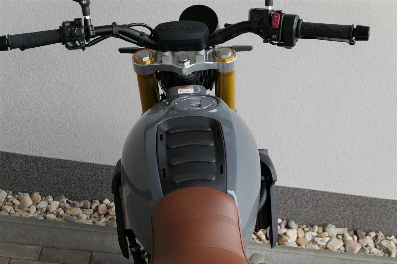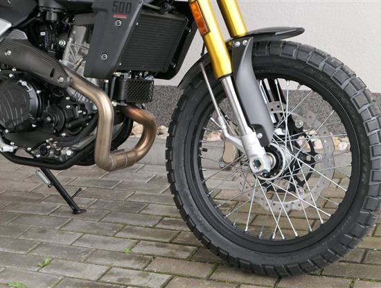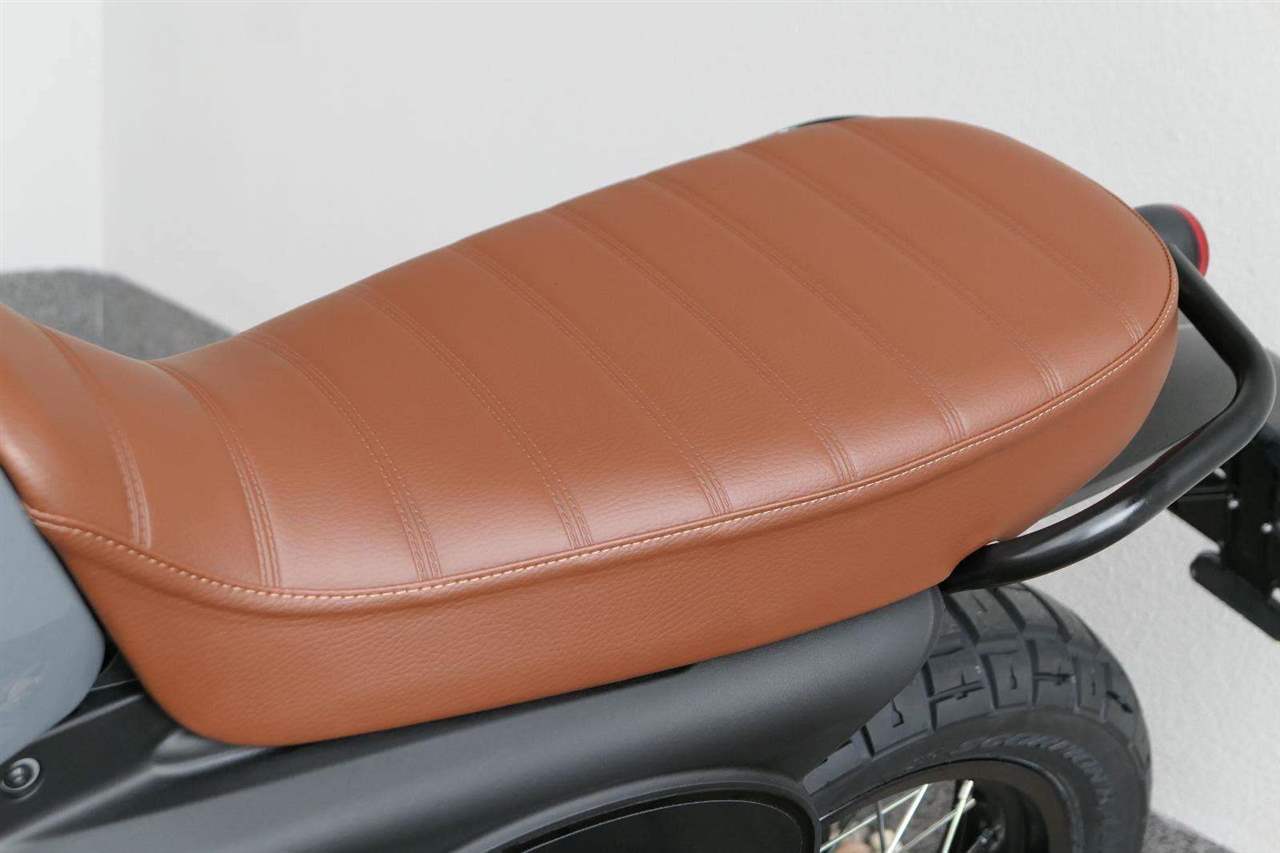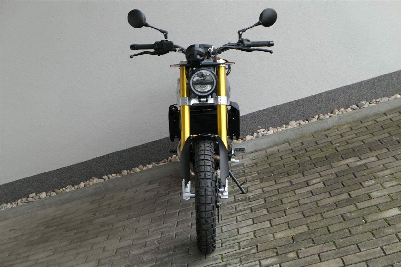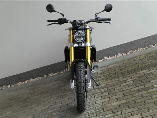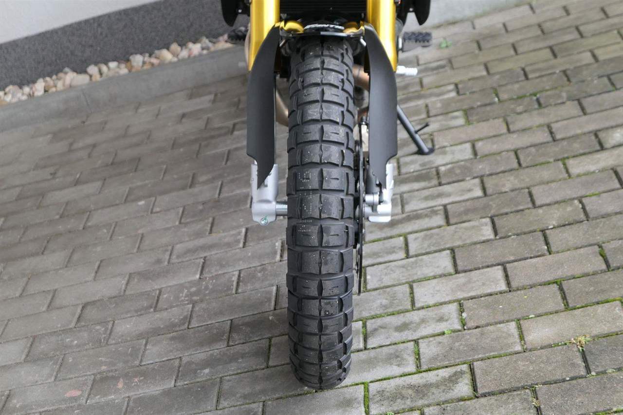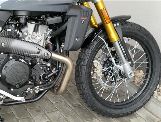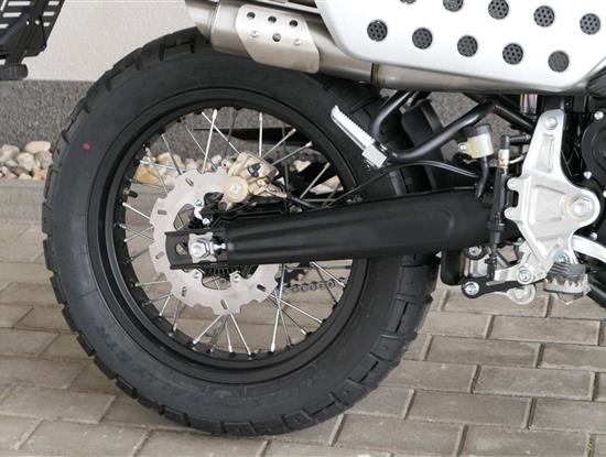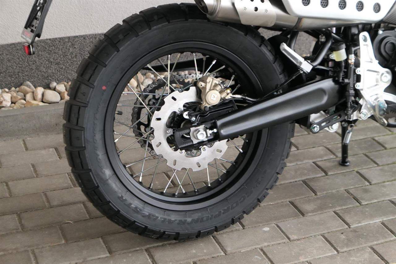 Drátová kola s pneumatikami Pirelli Scorpion Rally (110/80-19 vpředu a 140/80-17 vzadu) dodávají motocyklu autentický scrambler vzhled. 320 mm přední plovoucí a 230 mm zadní brzdový kotouč a nastavitelné náklonové ABS s kontrolou trakce zaručují skvělou bezpečnost v každé situaci.