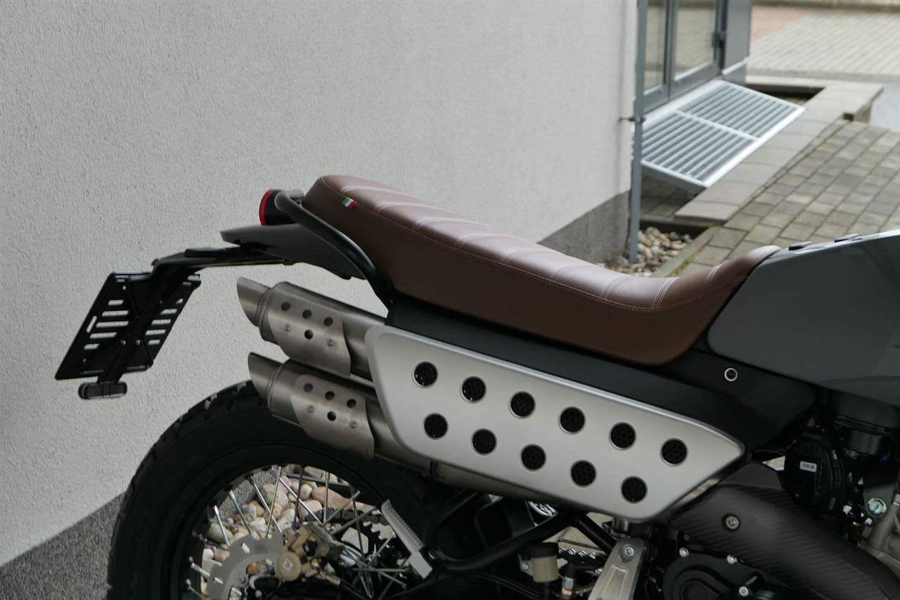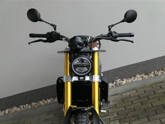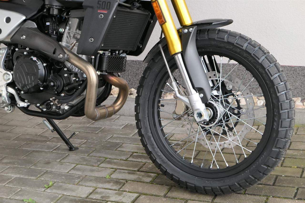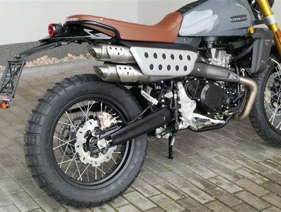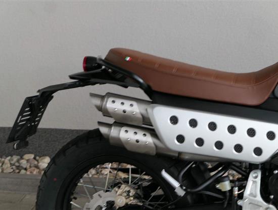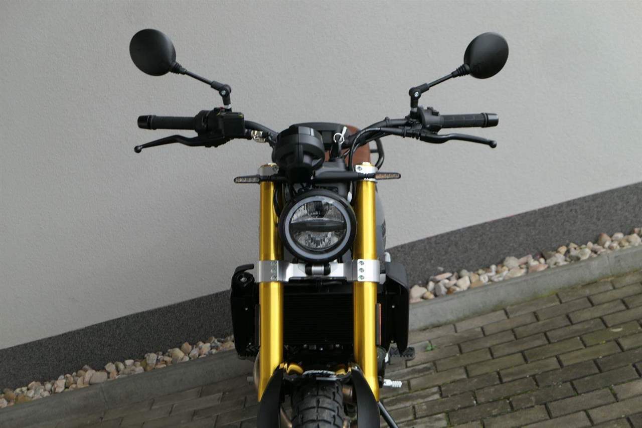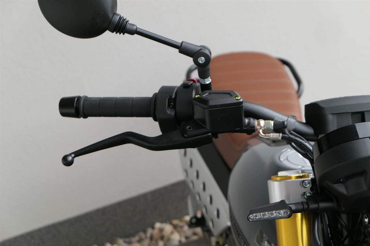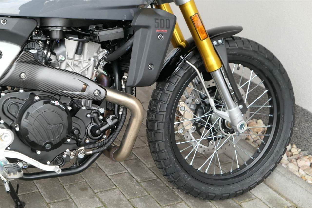 Drátová kola s pneumatikami Pirelli Scorpion Rally (110/80-19 vpředu a 140/80-17 vzadu) dodávají motocyklu autentický scrambler vzhled. 320 mm přední plovoucí a 230 mm zadní brzdový kotouč a nastavitelné náklonové ABS s kontrolou trakce zaručují skvělou bezpečnost v každé situaci.