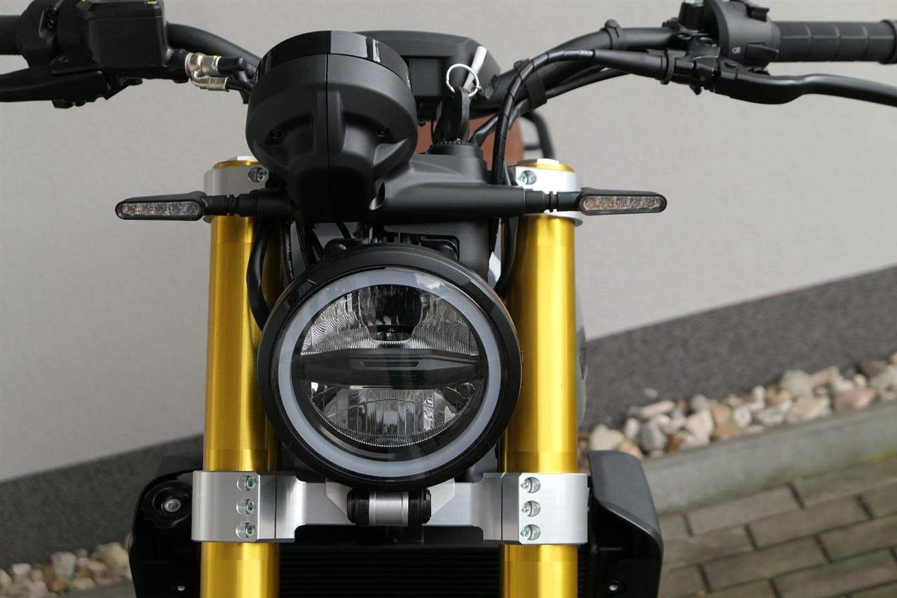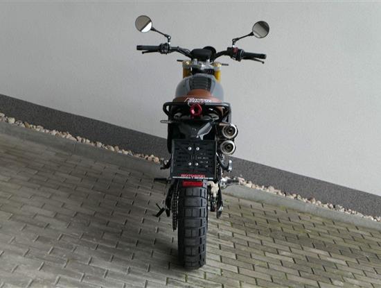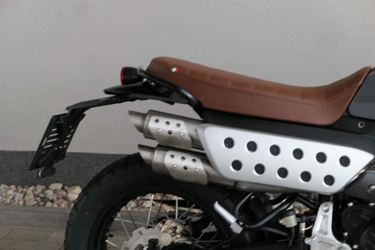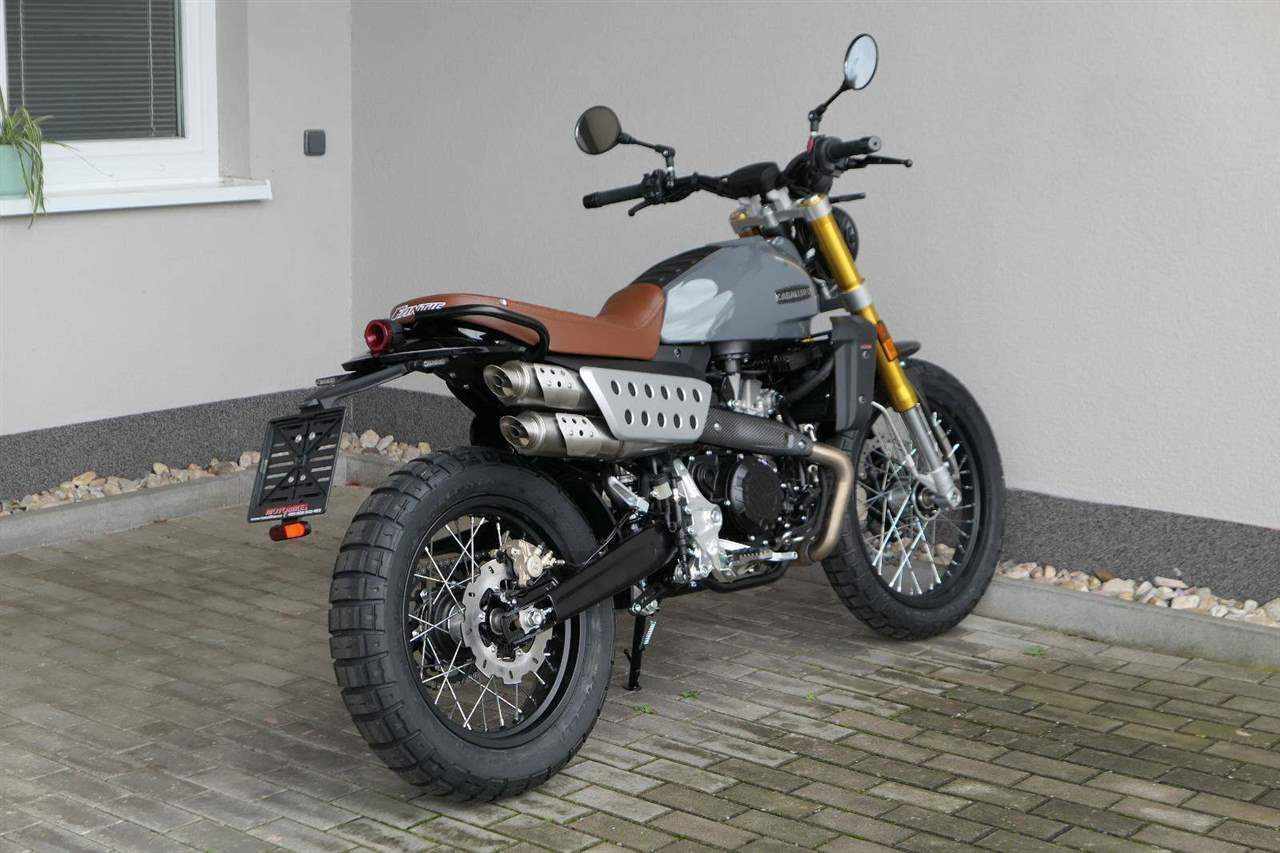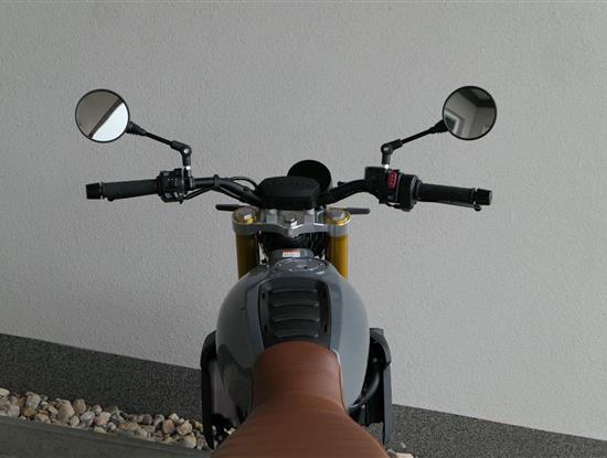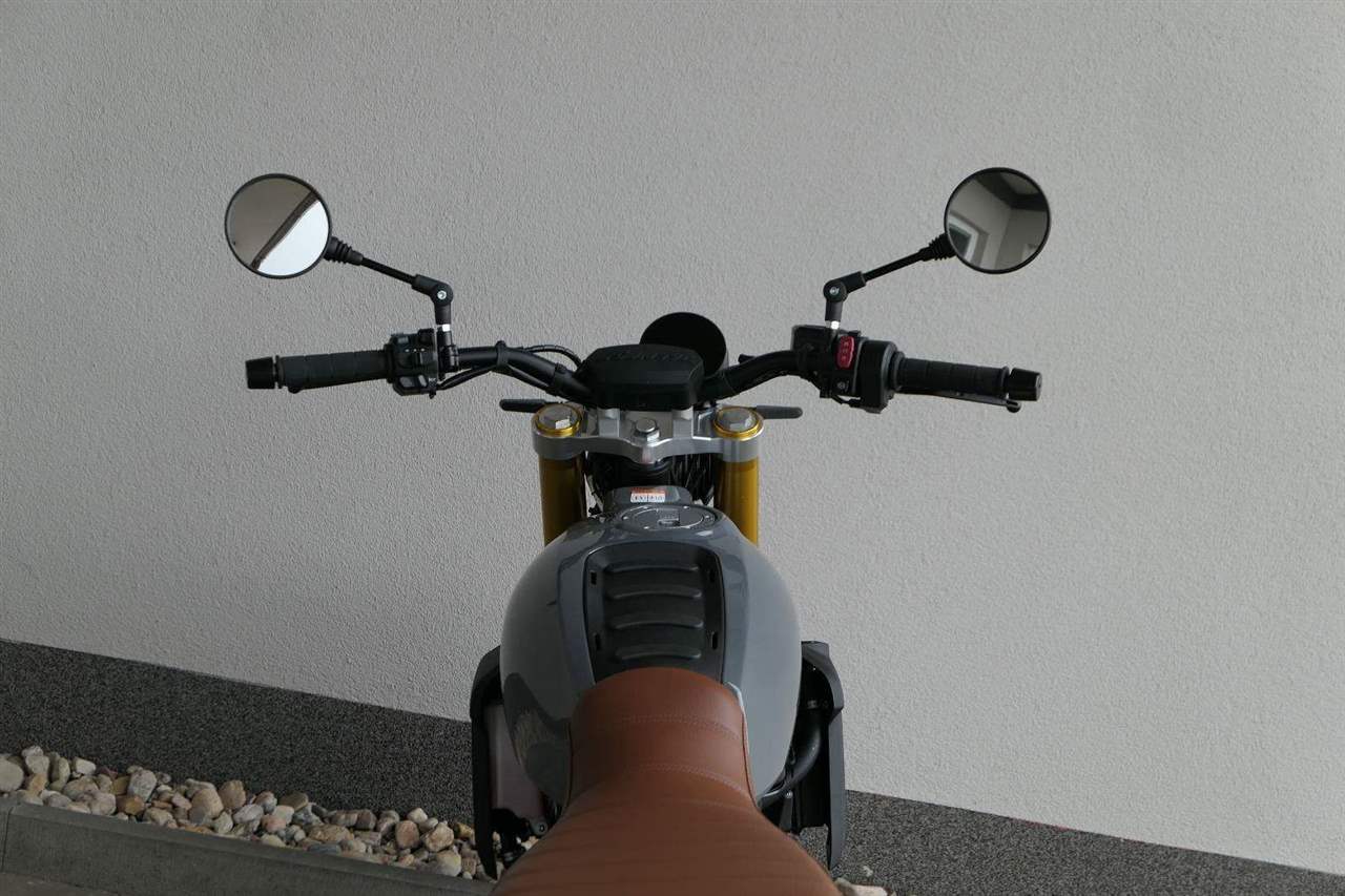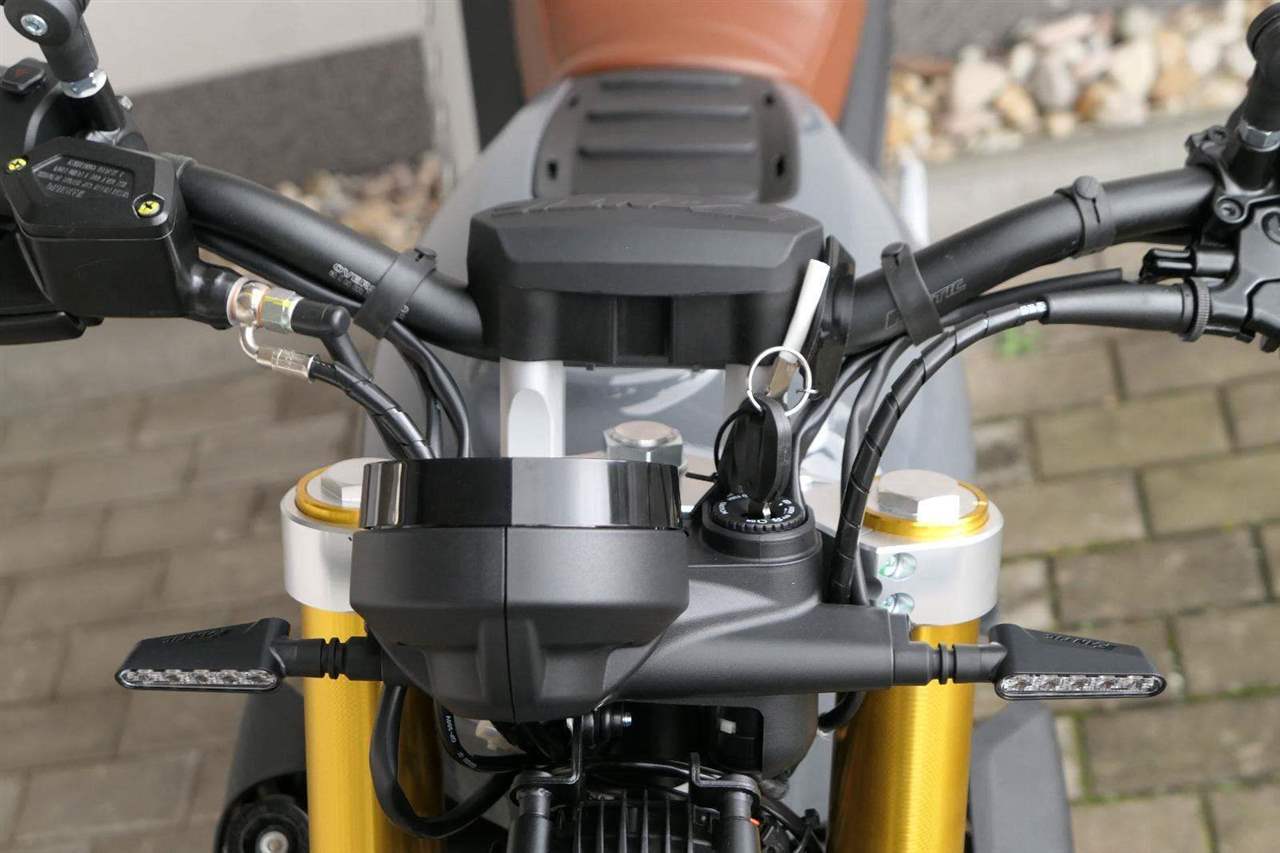 Drátová kola s pneumatikami Pirelli Scorpion Rally (110/80-19 vpředu a 140/80-17 vzadu) dodávají motocyklu autentický scrambler vzhled. 320 mm přední plovoucí a 230 mm zadní brzdový kotouč a nastavitelné náklonové ABS s kontrolou trakce zaručují skvělou bezpečnost v každé situaci.
