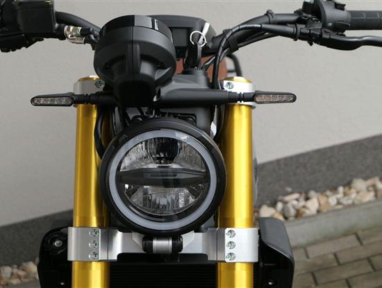 Kompletní LED osvětlení kombinuje moderní design a praktičnost. Přední světlo s kruhovým tvarem je optimalizované pro odolnost proti vibracím a nárazům, přičemž jeho styl ladí se zadním světlem.