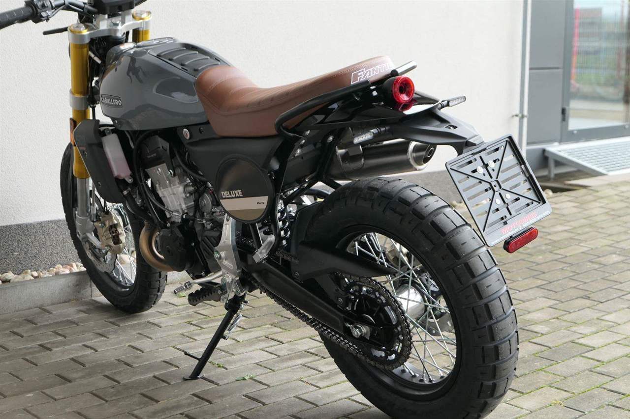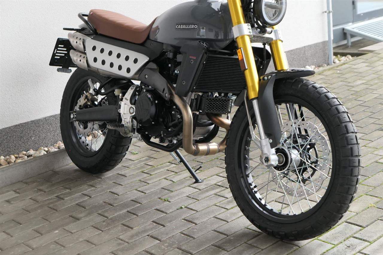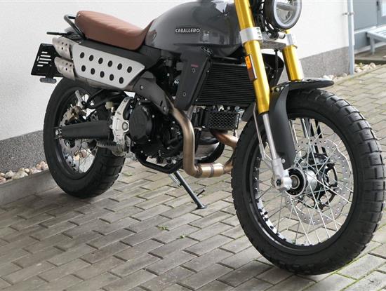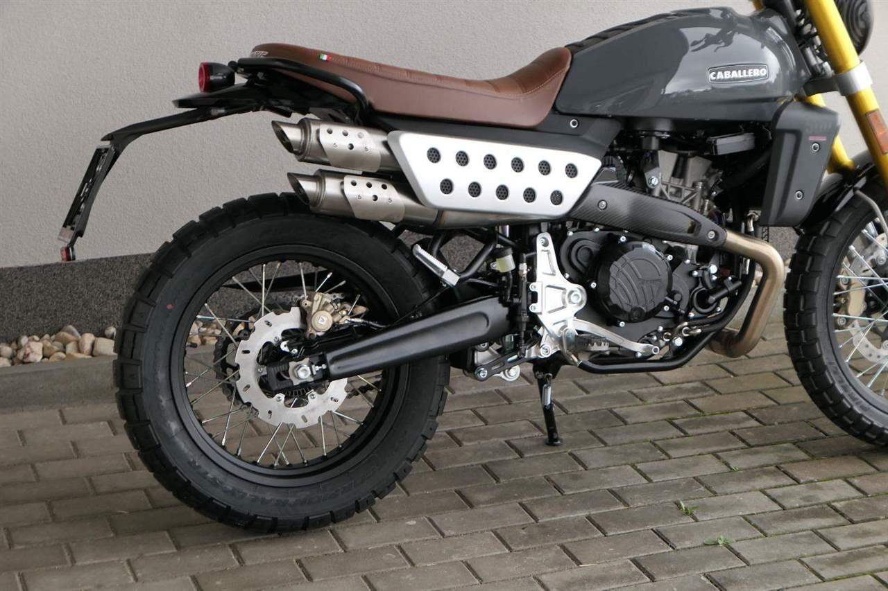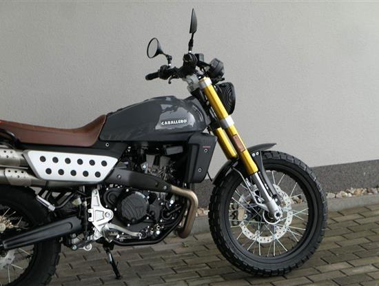 Luxusně lakovaná palivová nádrž a kontrastní boční závodní tabulka inspirovaná ikonickým Fantic Motor Caballero ze 70. let. Široká řídítka s off-roadovým tvarem, dvojitý výfukový systém od Arrow, mnoho CNC detailů, designová přední a zadní LED světla, maximum součástí zakázkově vyráběných v Itálii, to vše dělá z Caballera neodolatelnou hračku pro jezdce všech generací.