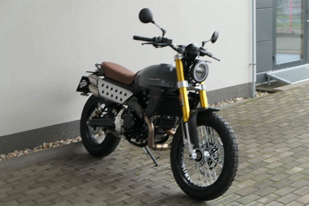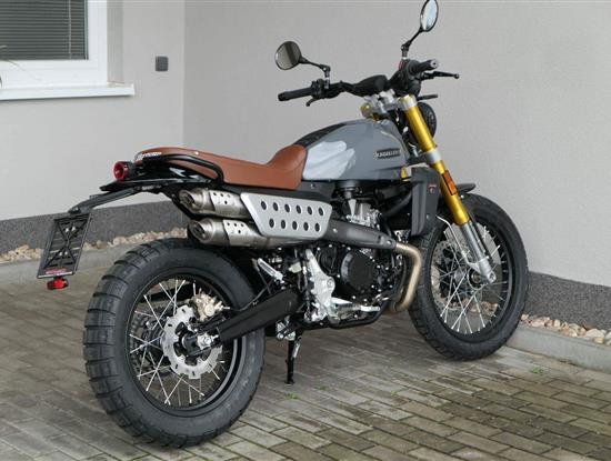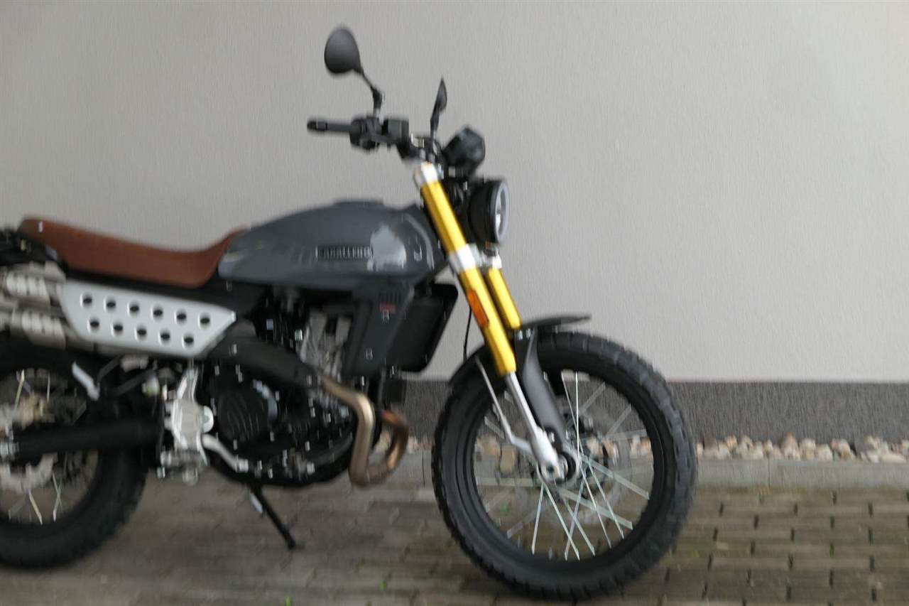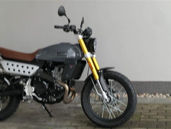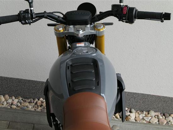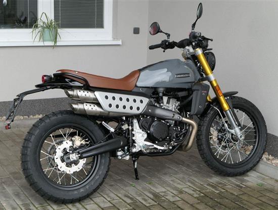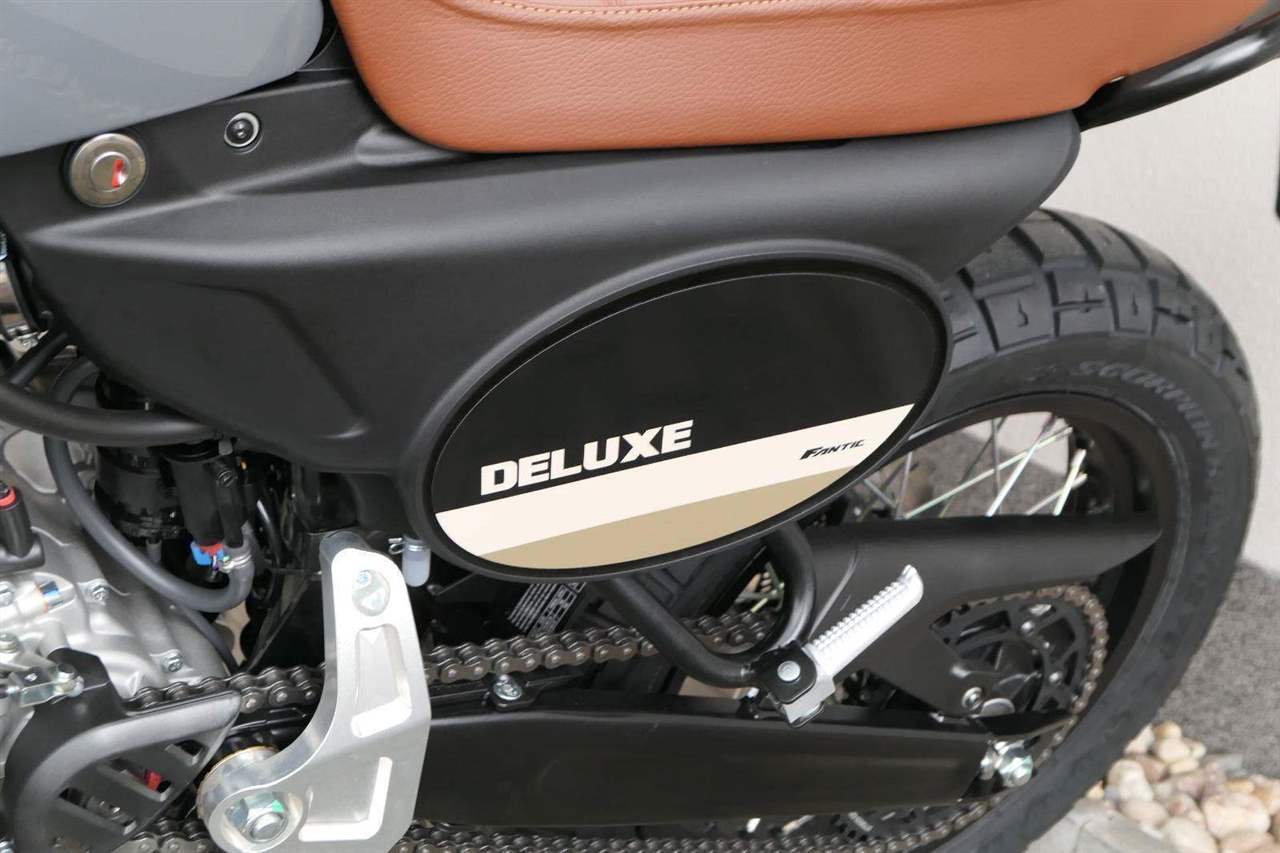 Přední 41mm USD vidlice FANTIC FRS má zdvih 150 mm, zadní odpružení se stejným zdvihem je také tovární FANTIC FSR. U verze Scrambler je nastavitelný odskok u zadního tlumiče.
