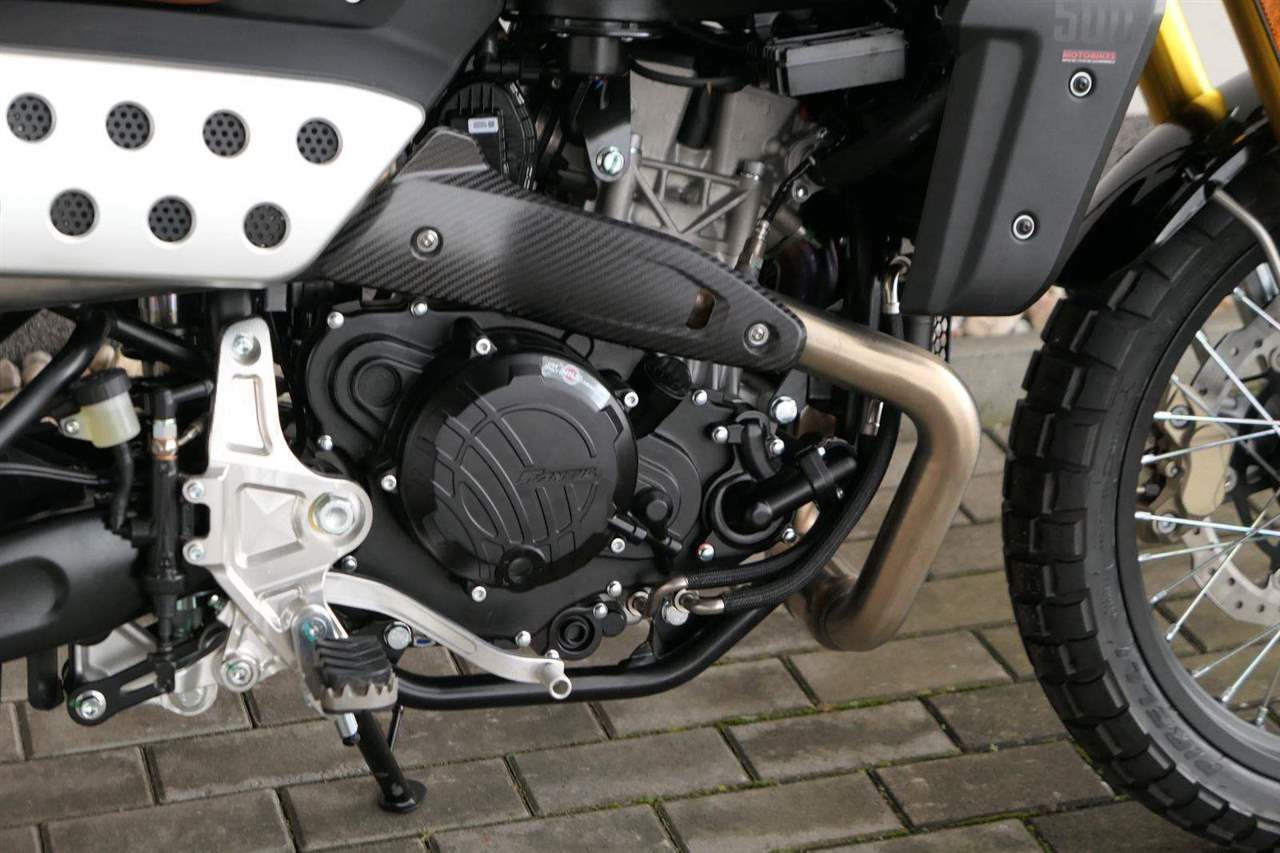 Nový čtyřventilový jednoválec Minarelli o objemu 463 ccm splňuje nejnovější emisní normu Euro 5+ a oproti svému předchůdci nabízí řadu vylepšení. S výkonem 45 koní (nárůst o 12%) nabízí vyšší dynamiku, kterou podporuje přesné elektronické vstřikování a vylepšená „Ride by Wire“ škrtící klapka s průměrem 46 mm. Samozřejmostí je nastavitelná kontrola trakce, zatímco nová kluzná spojka zajišťuje lepší výkon i při náročném používání.