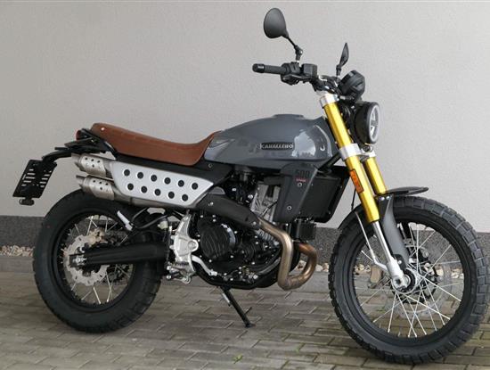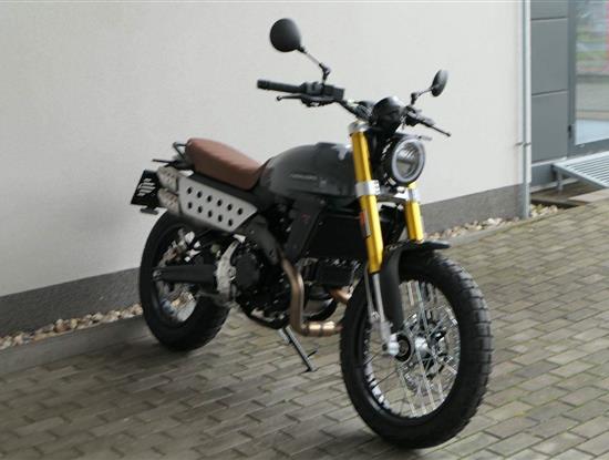 Přední 41mm USD vidlice FANTIC FRS má zdvih 150 mm, zadní odpružení se stejným zdvihem je také tovární FANTIC FSR. U verze Scrambler je nastavitelný odskok u zadního tlumiče.
