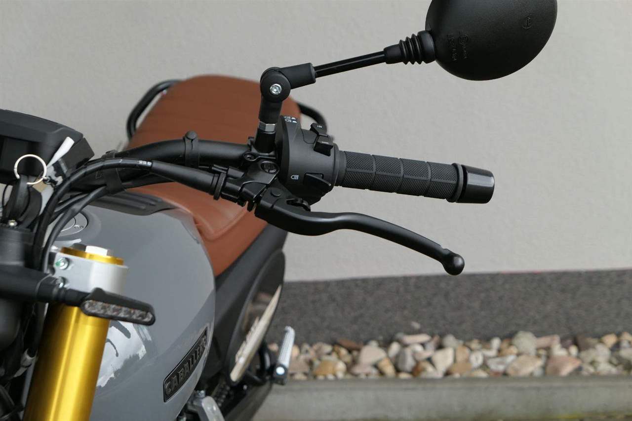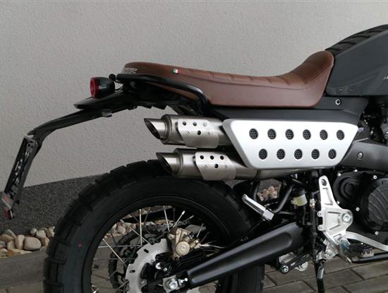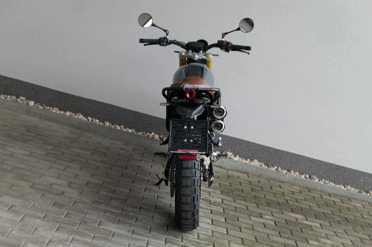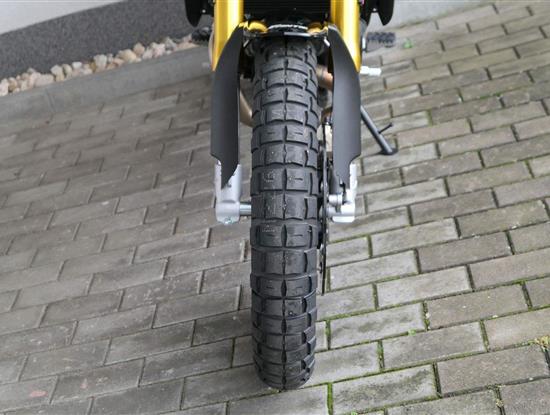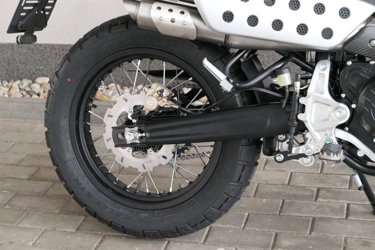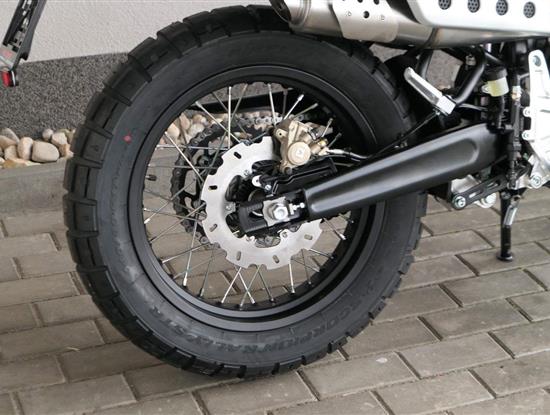 Drátová kola s pneumatikami Pirelli Scorpion Rally (110/80-19 vpředu a 140/80-17 vzadu) dodávají motocyklu autentický scrambler vzhled. 320 mm přední plovoucí a 230 mm zadní brzdový kotouč a nastavitelné náklonové ABS s kontrolou trakce zaručují skvělou bezpečnost v každé situaci.