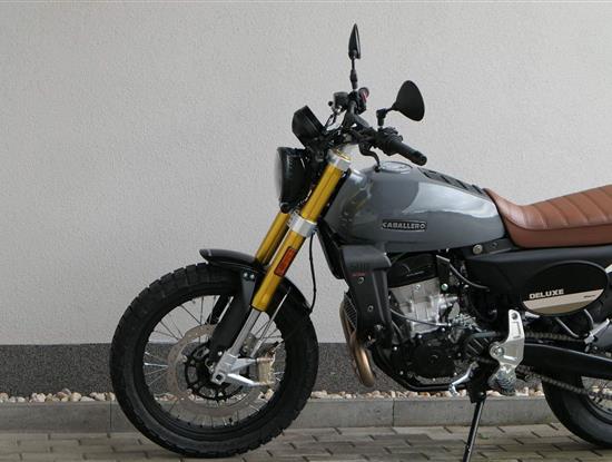 Caballero 500 Deluxe je ideální pro ty, kteří si rádi užívají lehký off-roadový zážitek na elegantním, přesto rebelském stroji, který nabízí perfektní zvládání hustého městském provozu a nebojí se vyjet i mimo zpevněné cesty. Verze Deluxe je vyrobená podle stejných technických specifikací jako provedení Scrambler, ale s důrazem na eleganci a italský styl. Skutečný mix městského a terénního bajku!