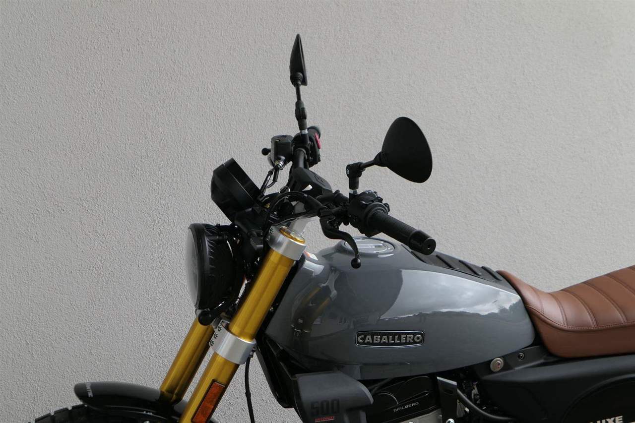 Luxusně lakovaná palivová nádrž a kontrastní boční závodní tabulka inspirovaná ikonickým Fantic Motor Caballero ze 70. let. Široká řídítka s off-roadovým tvarem, dvojitý výfukový systém od Arrow, mnoho CNC detailů, designová přední a zadní LED světla, maximum součástí zakázkově vyráběných v Itálii, to vše dělá z Caballera neodolatelnou hračku pro jezdce všech generací.