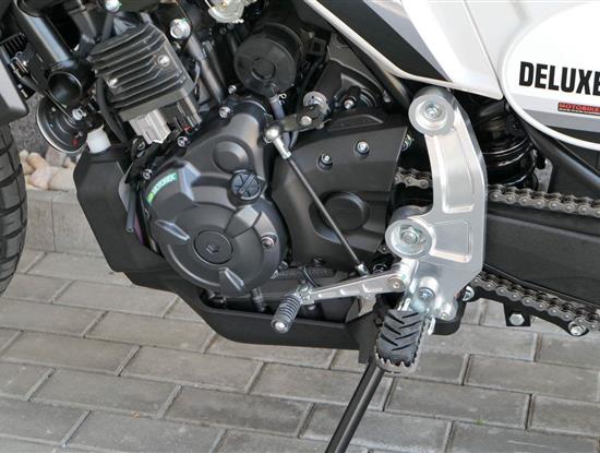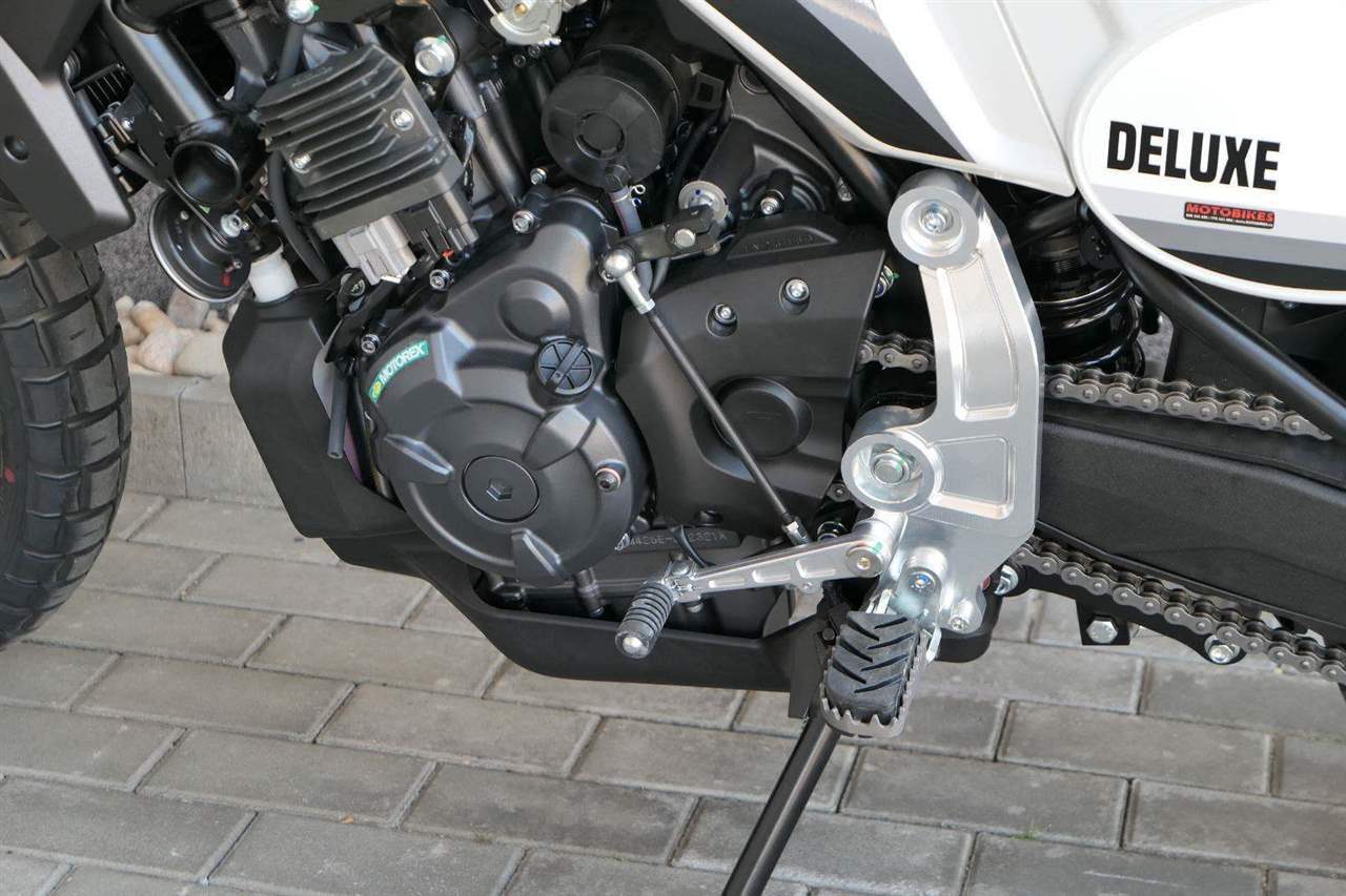 Varianta Deluxe přináší navíc off-roadové řídítka s hrazdičkou a nové šedé lakování Campovolo Grey s dekorativními modrými pruhy.