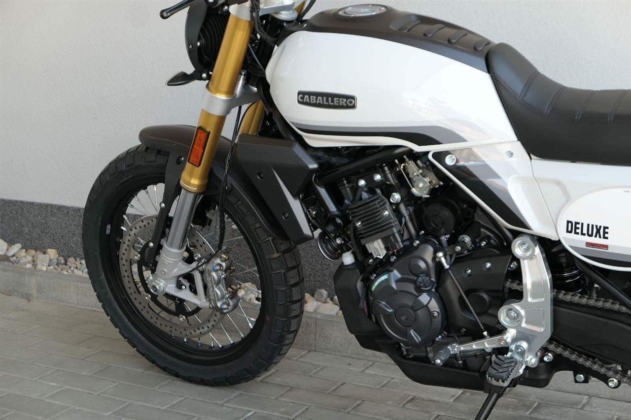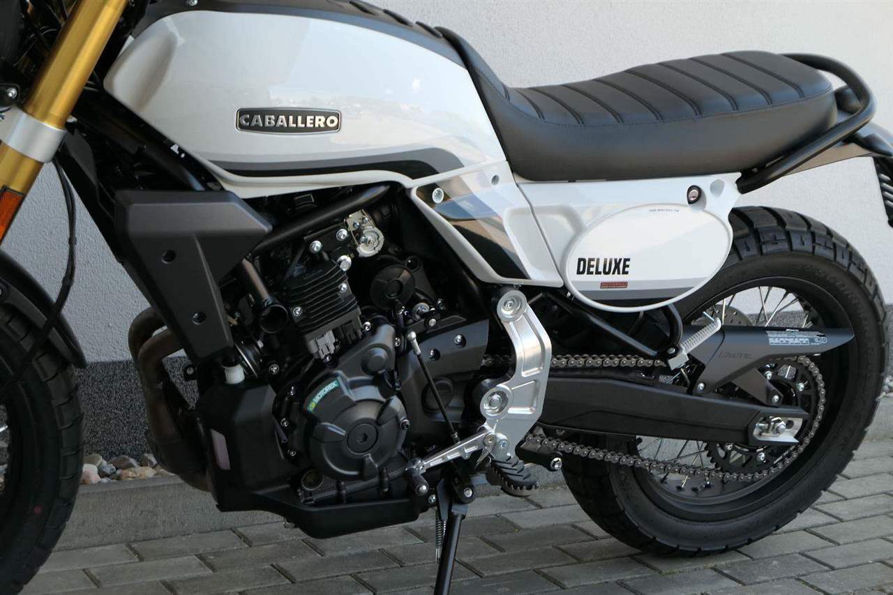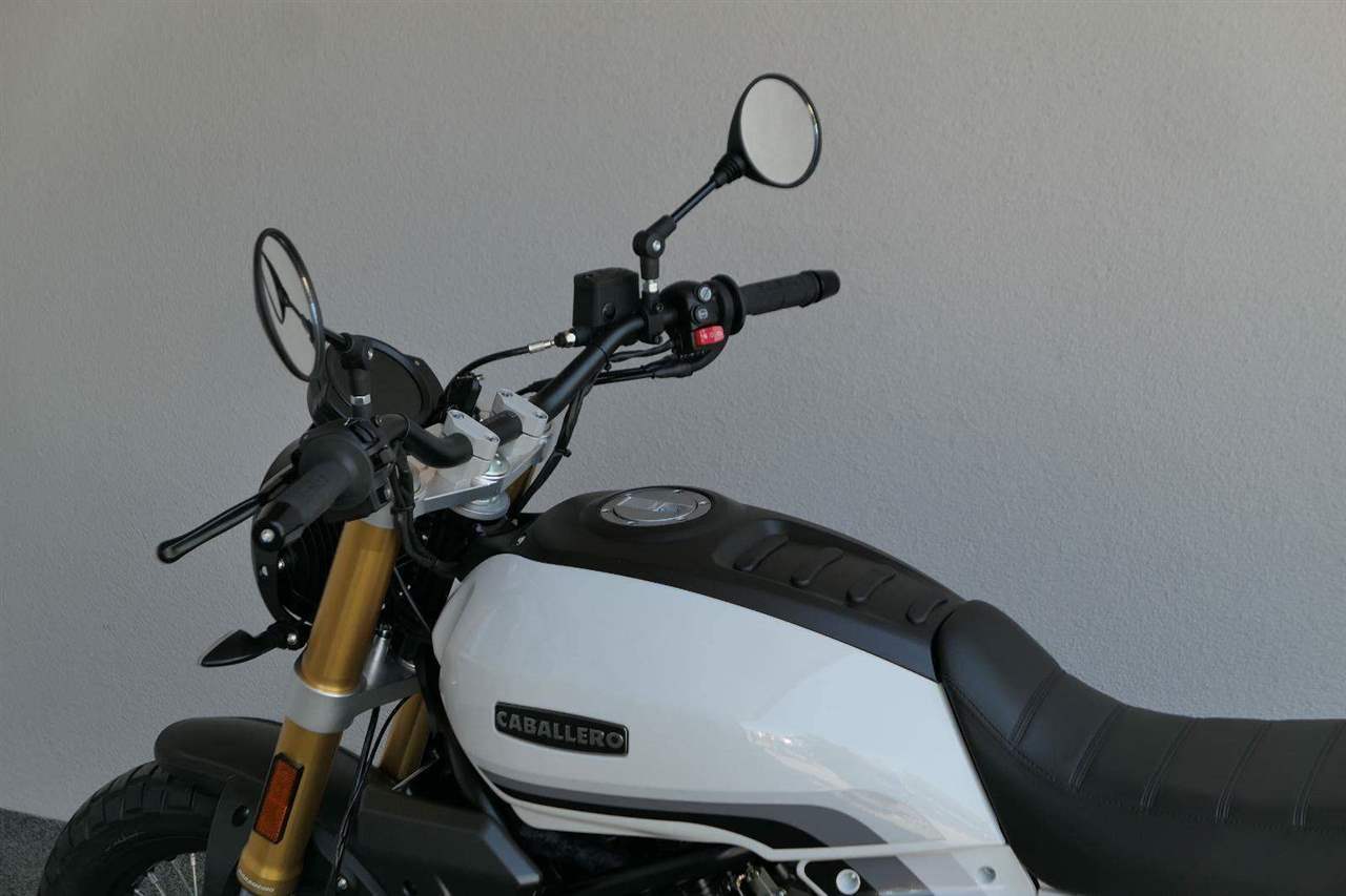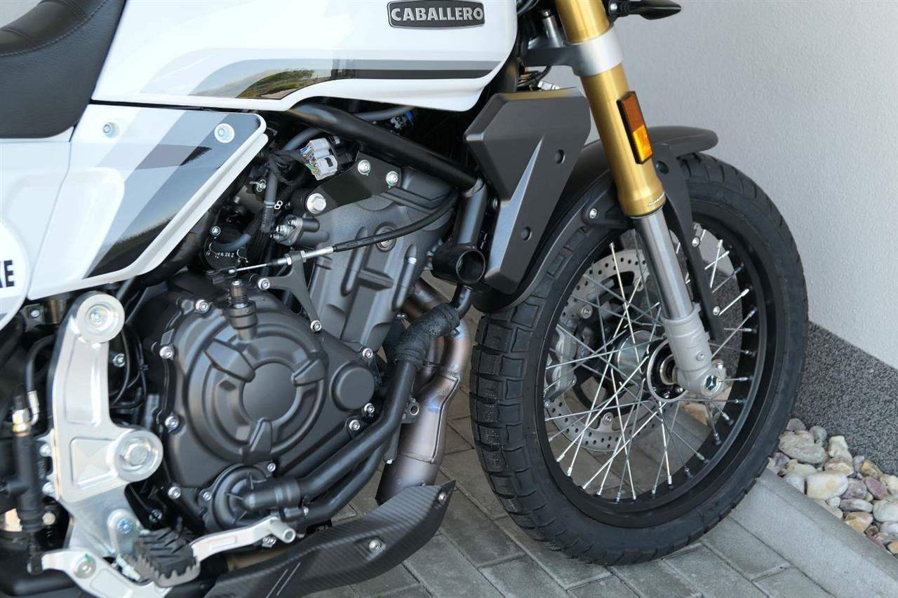 Caballero 700 spojuje výkon paralelního dvouválce Yamaha CP2, špičkovou elektroniku s náklonovým ABS – s možností deativace přímo z řídítek – a nastavitelnou kontrolou trakce, prémiový podvozek Marzocchi a brzdný systém Brembo. Díky nízké hmotnosti 175 kg, 19″ a 17″, drátovým kolům a optimalizovanému odpružení zvládá s lehkostí silnice i terén, přesně tak, jak se na autentický scrambler patří.