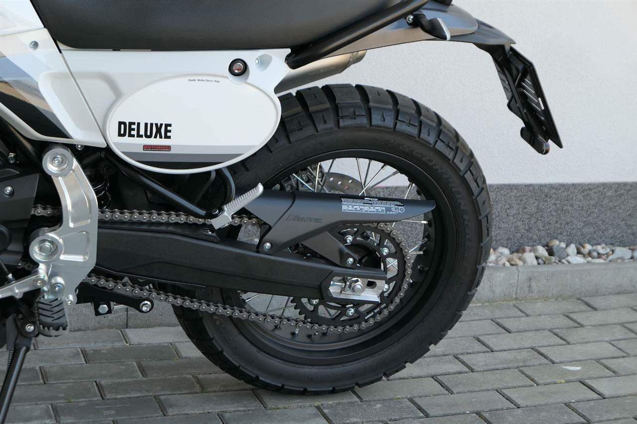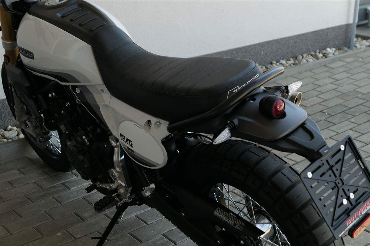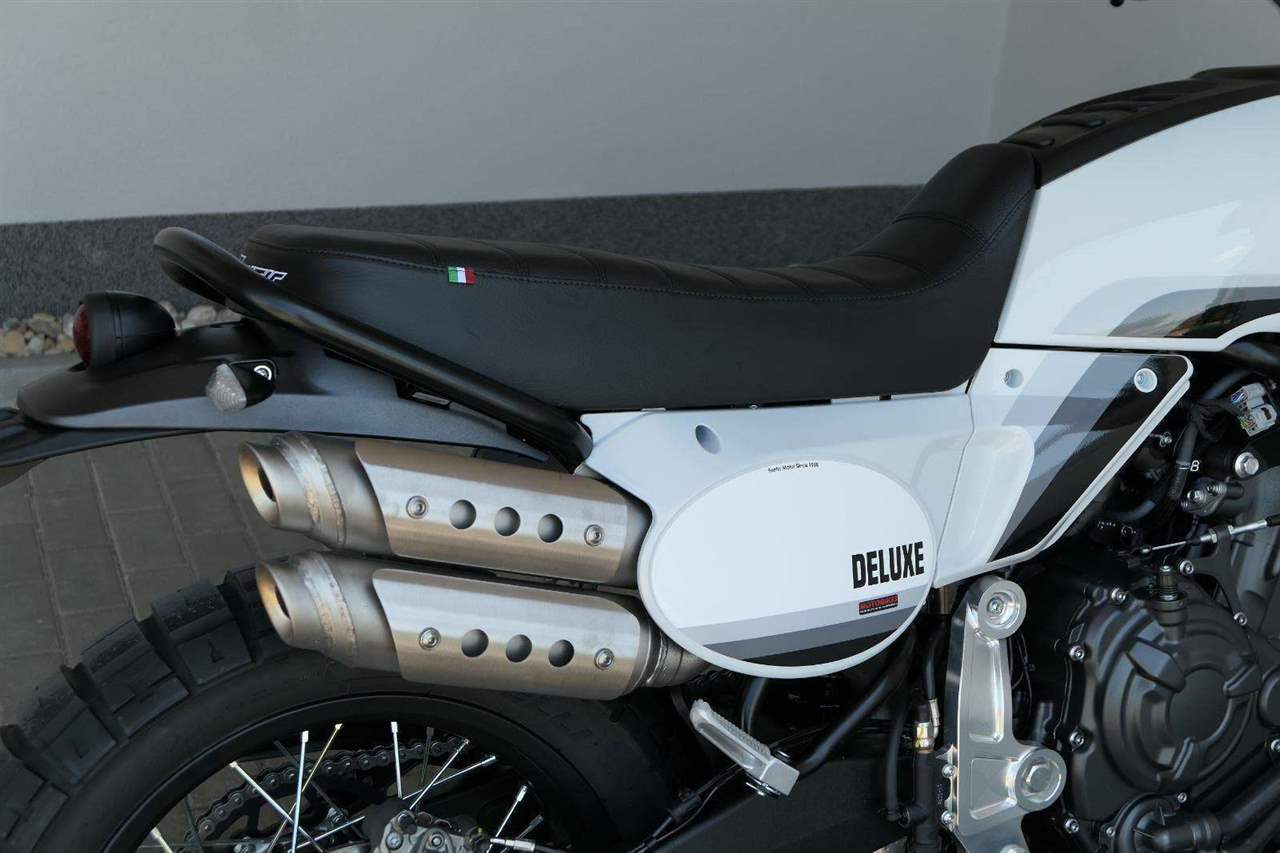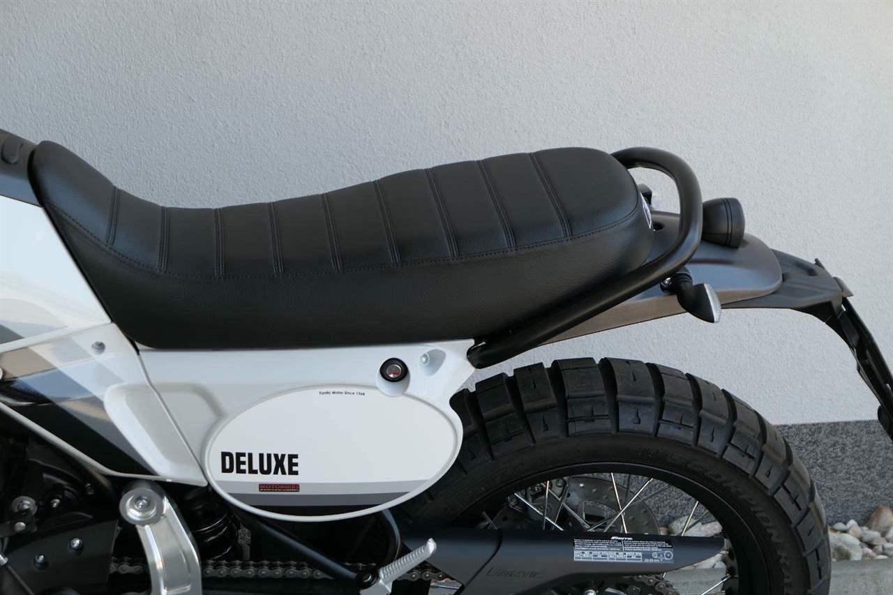 Verze Deluxe představuje designovou evoluci základního modelu Scrambler, která přináší promyšlený design v nové barvě Campovolo Grey v odstínech šedé s třemi modrými pruhy. Oproti verzi Scrambler najdete na Deluxe hrazdová řídítka.