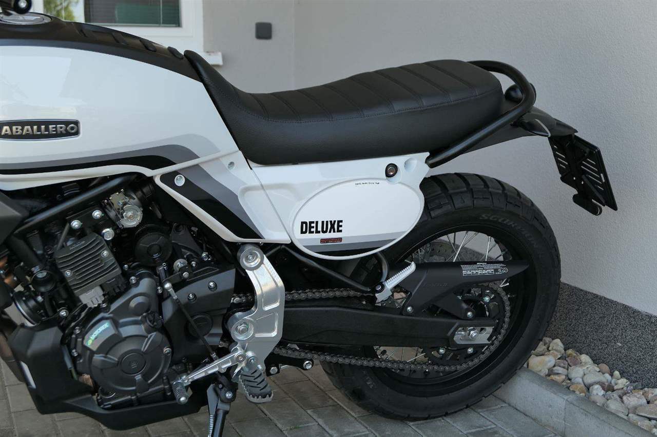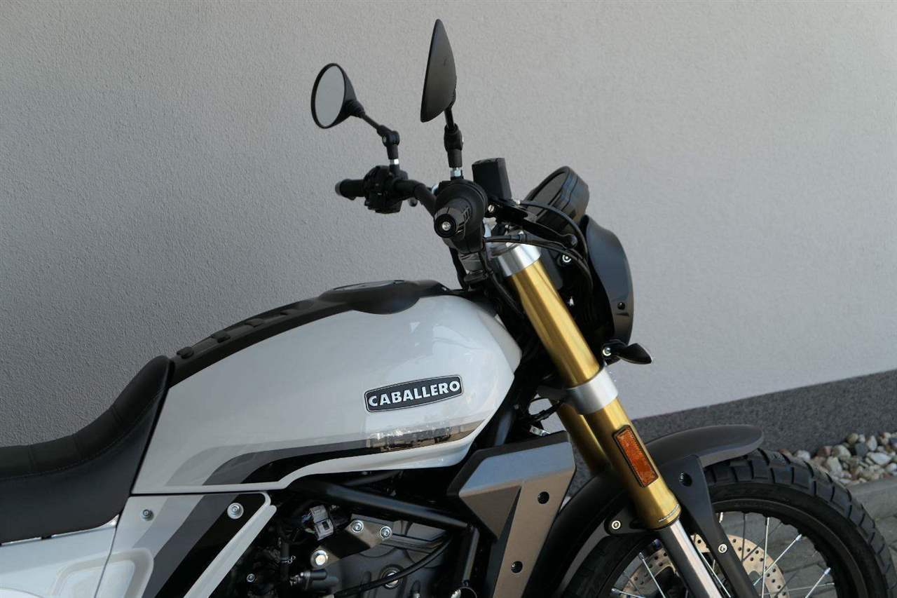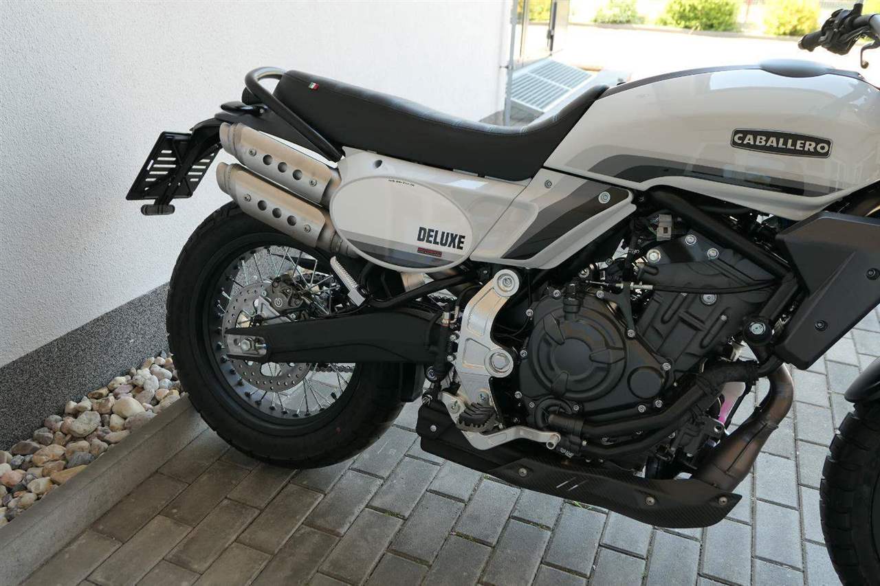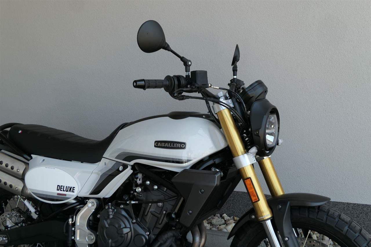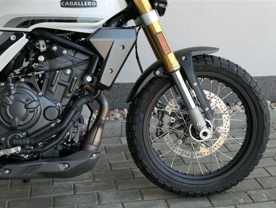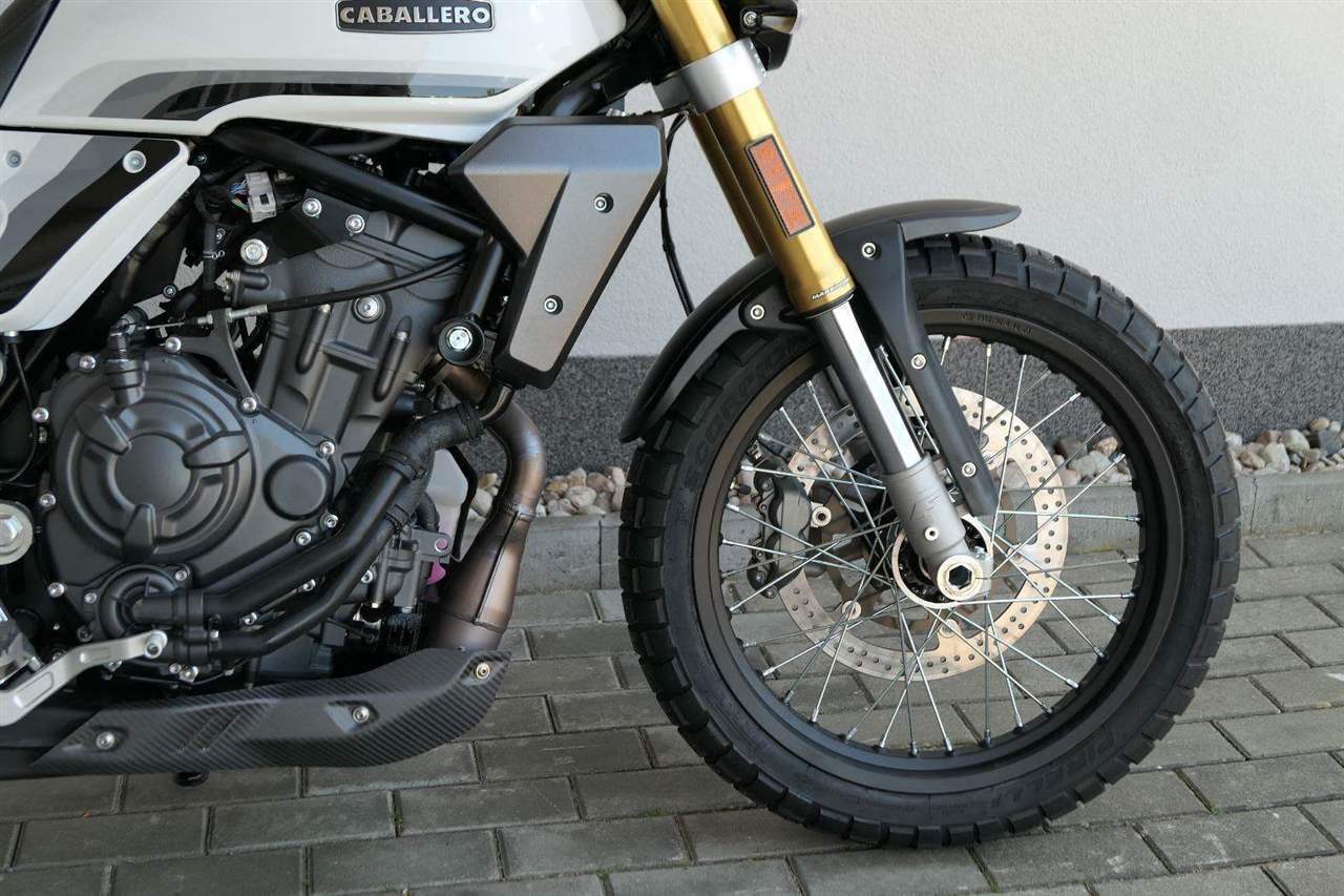 Caballero 700 spojuje výkon paralelního dvouválce Yamaha CP2, špičkovou elektroniku s náklonovým ABS – s možností deativace přímo z řídítek – a nastavitelnou kontrolou trakce, prémiový podvozek Marzocchi a brzdný systém Brembo. Díky nízké hmotnosti 175 kg, 19″ a 17″, drátovým kolům a optimalizovanému odpružení zvládá s lehkostí silnice i terén, přesně tak, jak se na autentický scrambler patří.