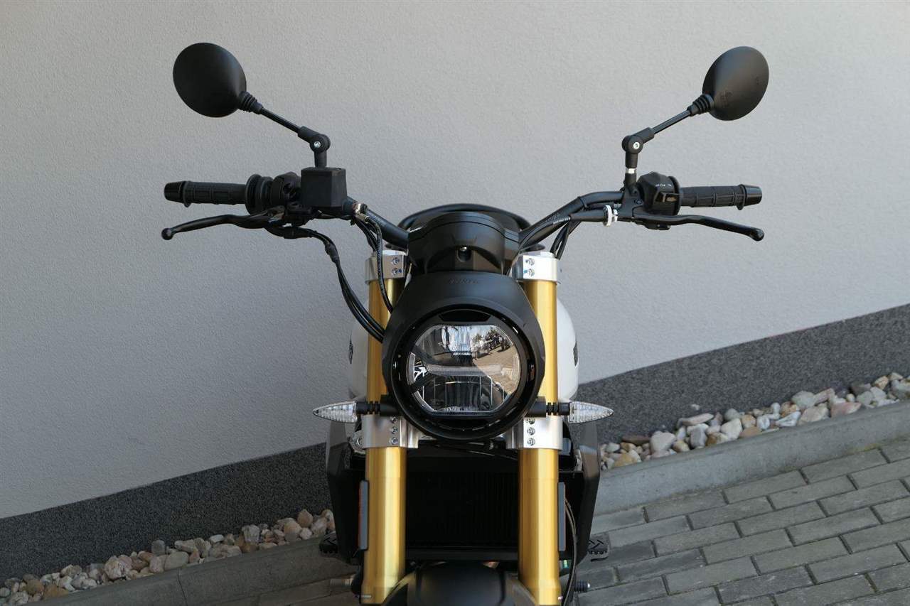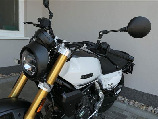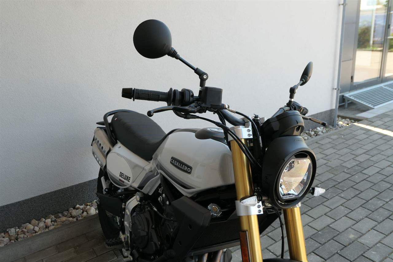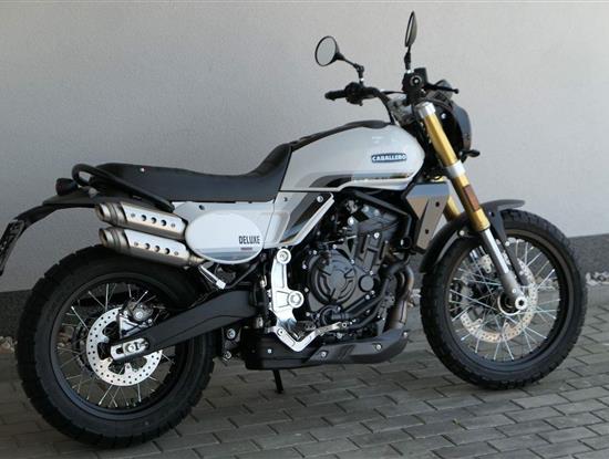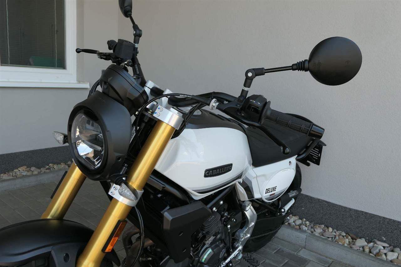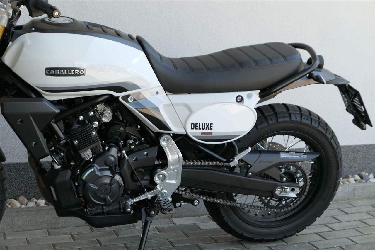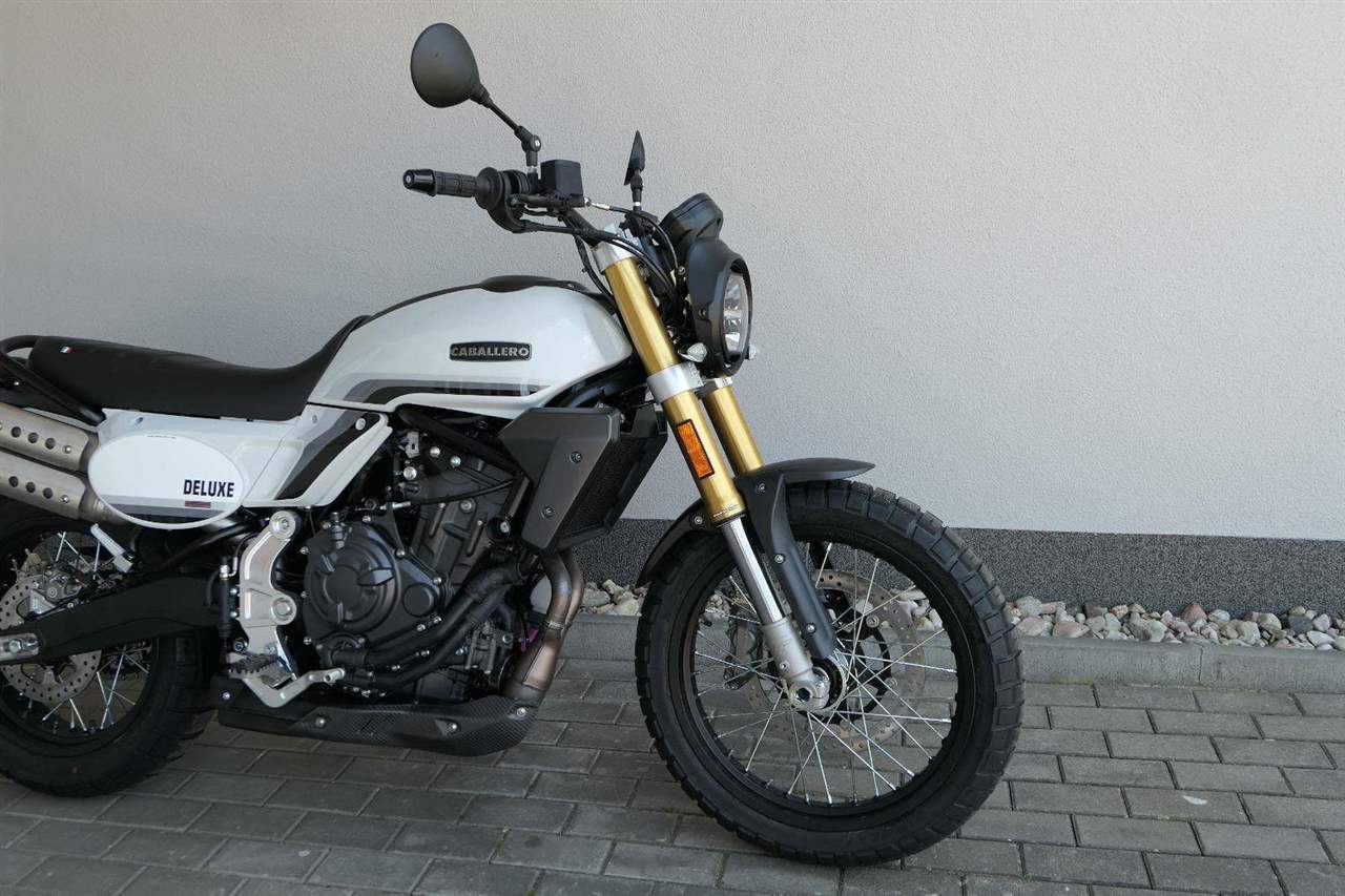 Caballero 700 spojuje výkon paralelního dvouválce Yamaha CP2, špičkovou elektroniku s náklonovým ABS – s možností deativace přímo z řídítek – a nastavitelnou kontrolou trakce, prémiový podvozek Marzocchi a brzdný systém Brembo. Díky nízké hmotnosti 175 kg, 19″ a 17″, drátovým kolům a optimalizovanému odpružení zvládá s lehkostí silnice i terén, přesně tak, jak se na autentický scrambler patří.