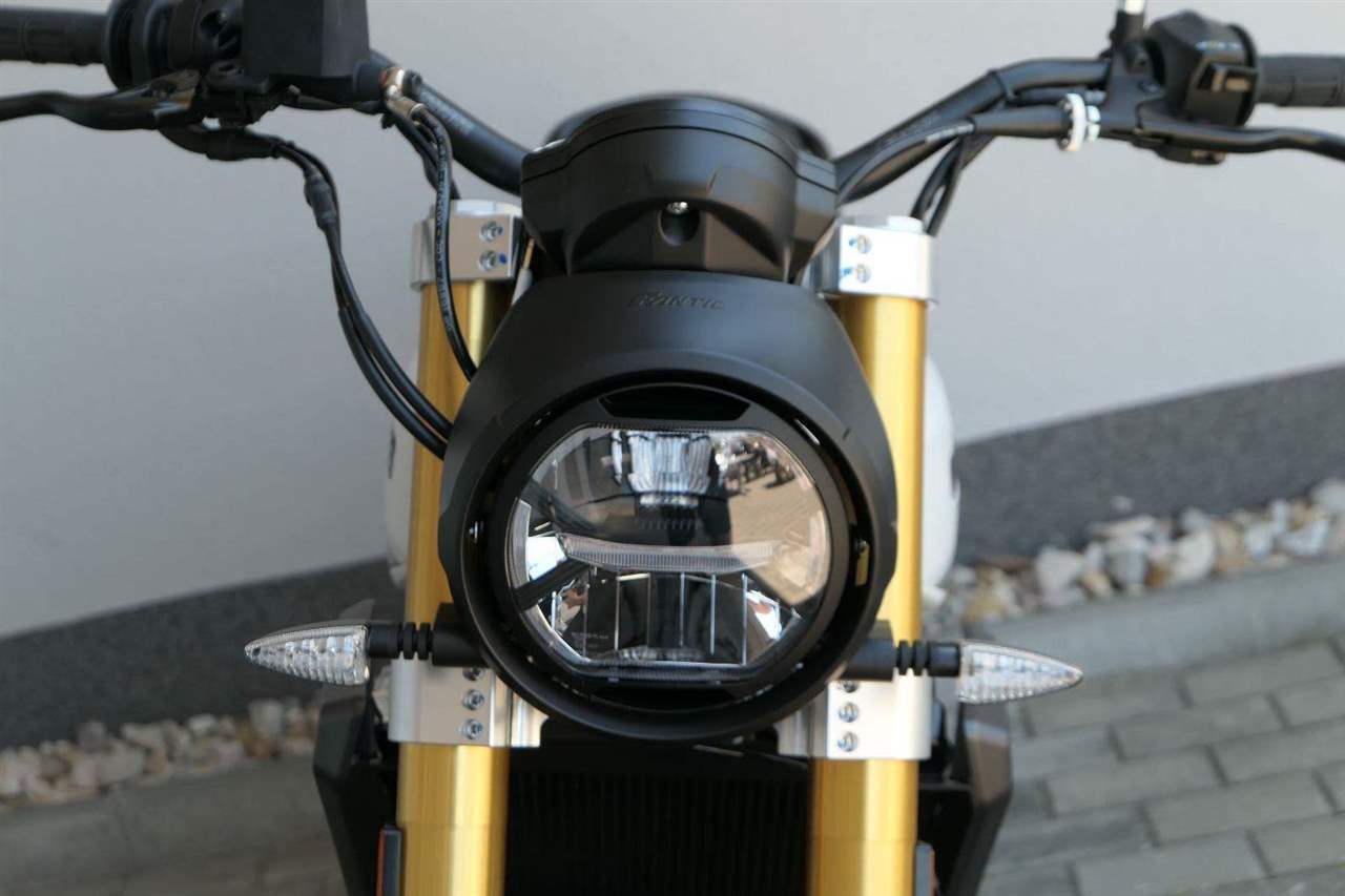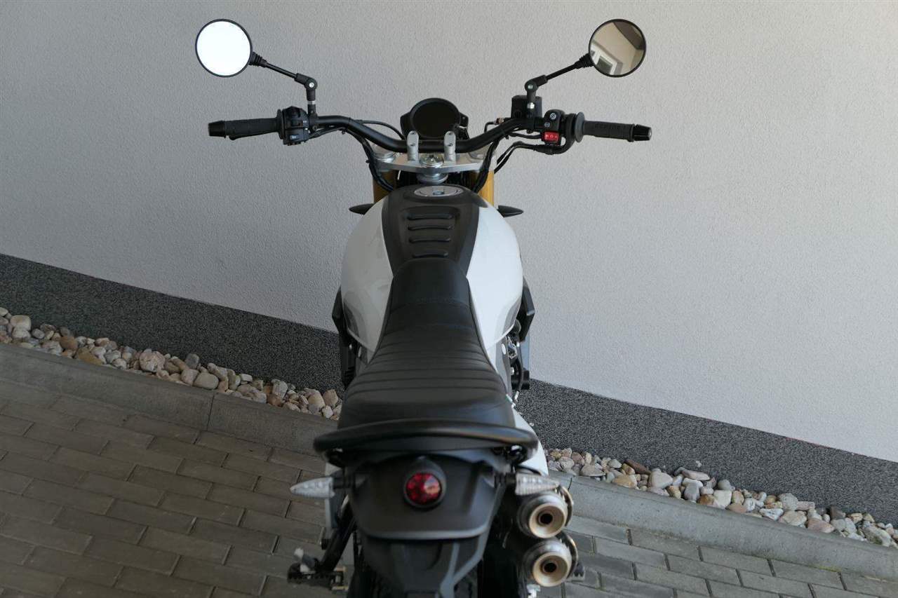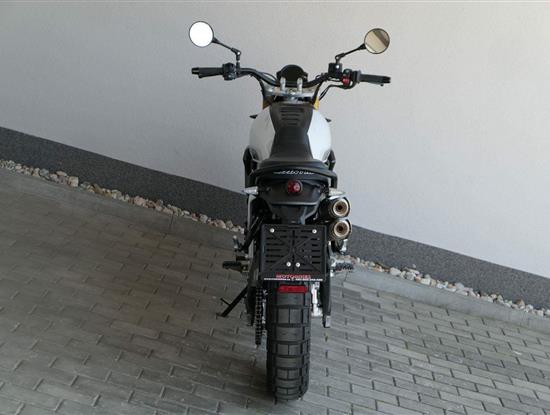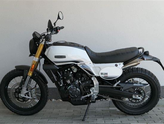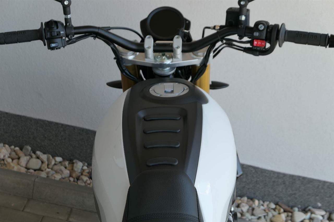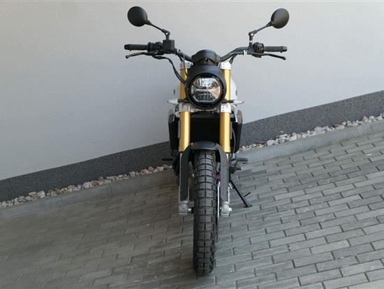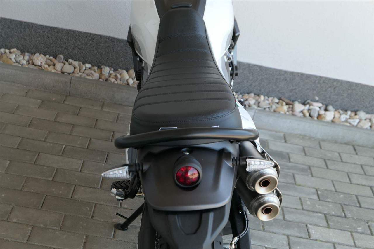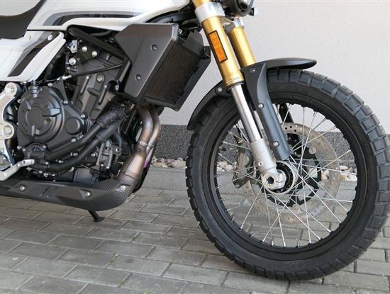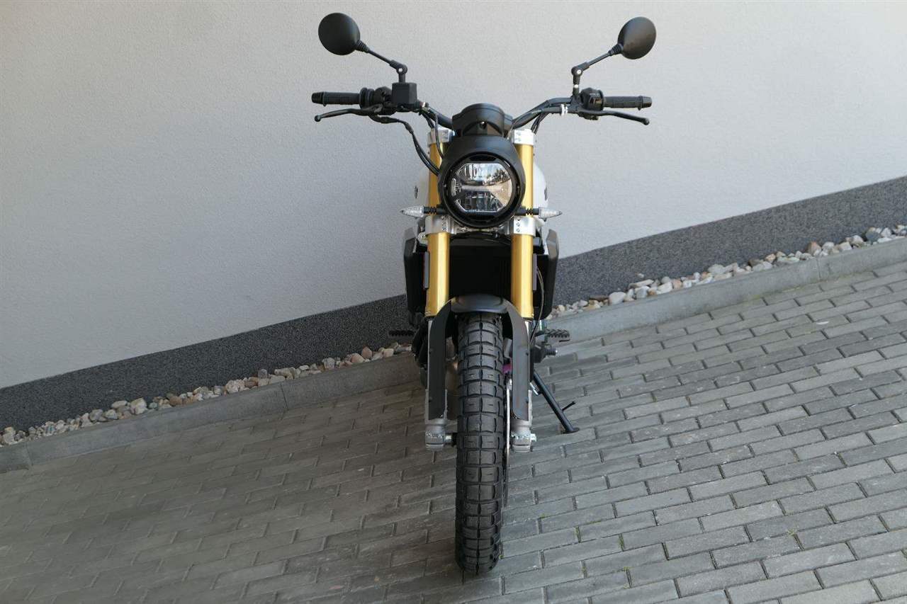 Caballero 700 spojuje výkon paralelního dvouválce Yamaha CP2, špičkovou elektroniku s náklonovým ABS – s možností deativace přímo z řídítek – a nastavitelnou kontrolou trakce, prémiový podvozek Marzocchi a brzdný systém Brembo. Díky nízké hmotnosti 175 kg, 19″ a 17″, drátovým kolům a optimalizovanému odpružení zvládá s lehkostí silnice i terén, přesně tak, jak se na autentický scrambler patří.