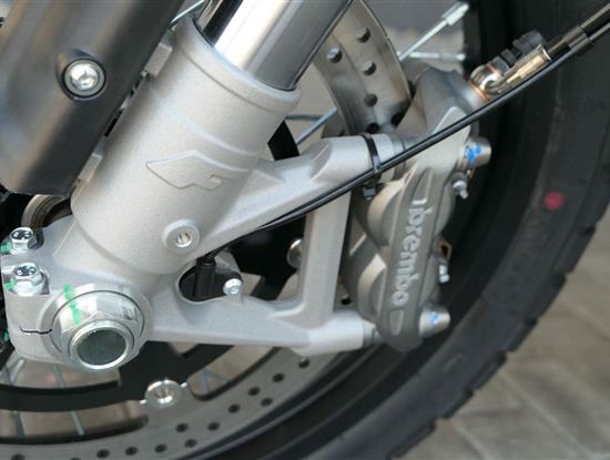 Caballero 700 také poskytuje výjimečný brzdný výkon. Tento motocykl hravě zvládne jakoukoli silnici díky výkonné kombinaci 330mm kotouče a 4pístkových třmenů Brembo vpředu a 240mm kotouče s třmenem Brembo vzadu.