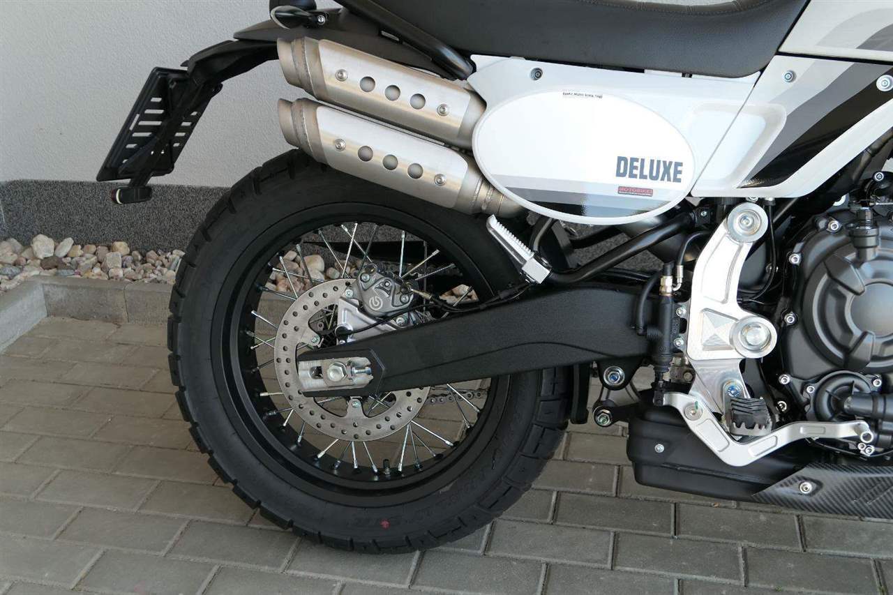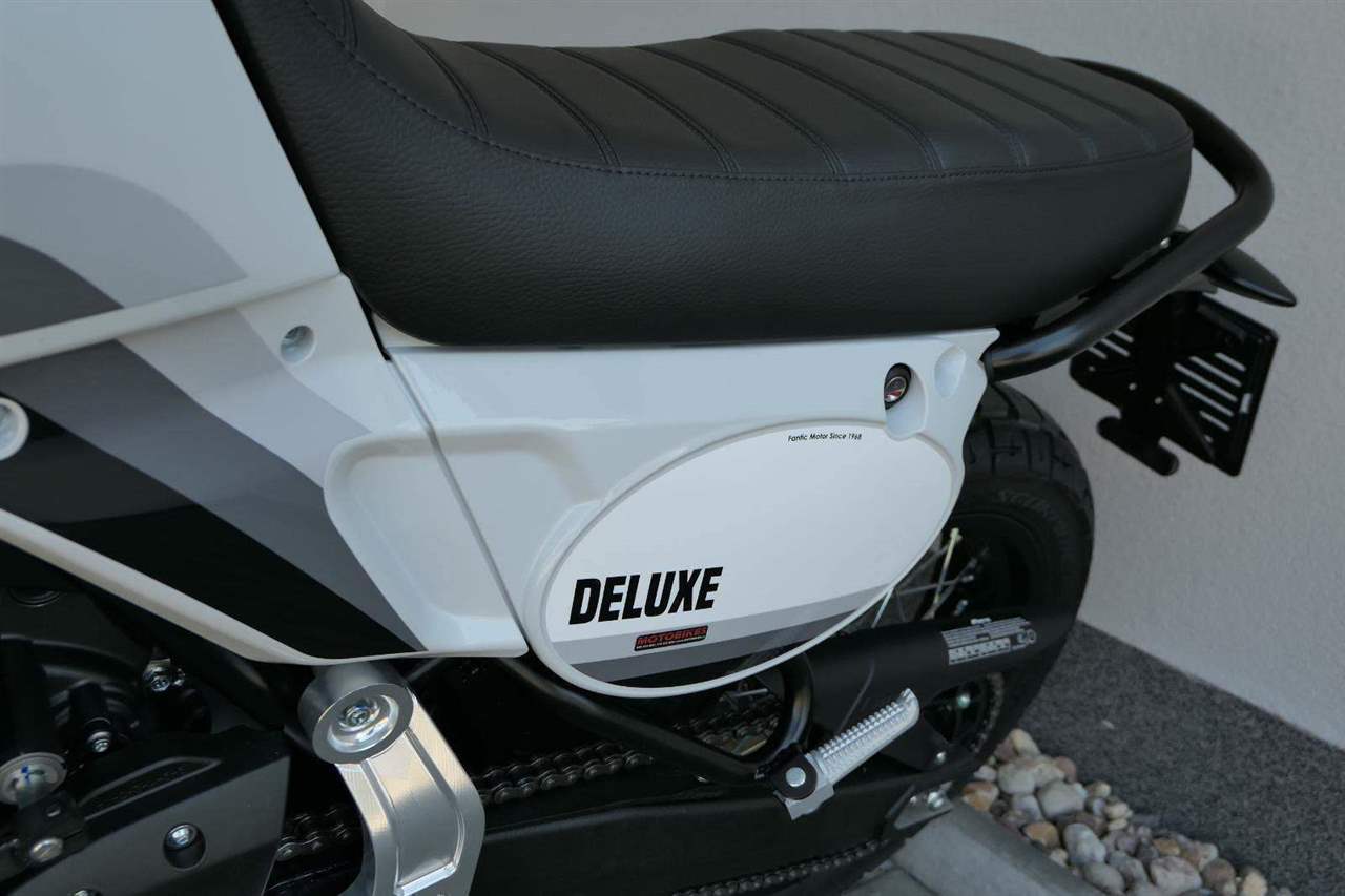 Verze Deluxe představuje designovou evoluci základního modelu Scrambler, která přináší promyšlený design v nové barvě Campovolo Grey v odstínech šedé s třemi modrými pruhy. Oproti verzi Scrambler najdete na Deluxe hrazdová řídítka.