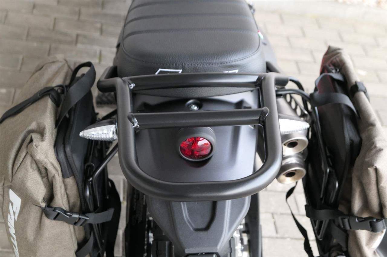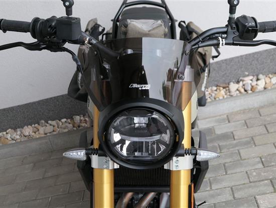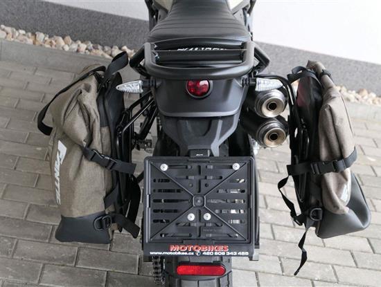 Ve spolupráci se značkou Givi vznikla speciálně pro verzi Travel dvojice bočních brašen včetně nosičů, které jsou barevně sladěné s malou brašnou na nádrži. Pro cestovatele s vyššími nároky na úložný prostor tu máme zadní nosič s možností upevnění dalších zavazadel nebo originálního zadního vaku. Cestovního ducha pak doplňuje nízký kouřový plexi štítek vyvinutý ve spolupráci s WRS.
