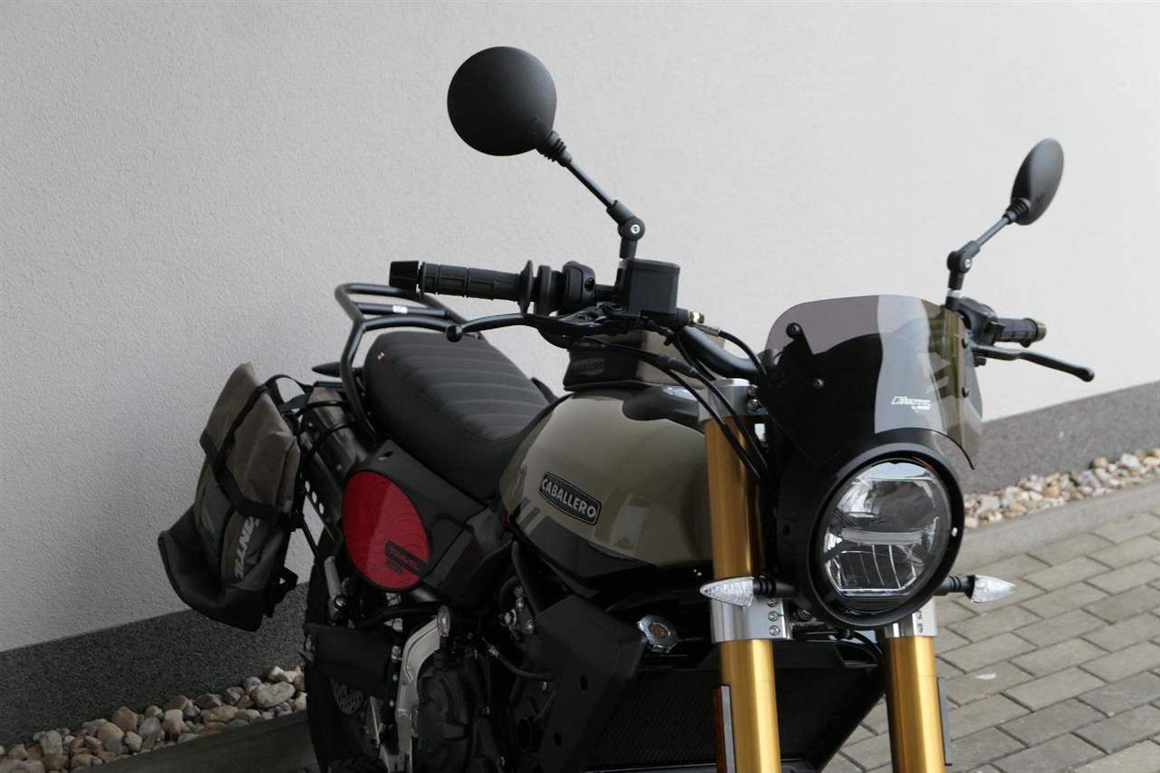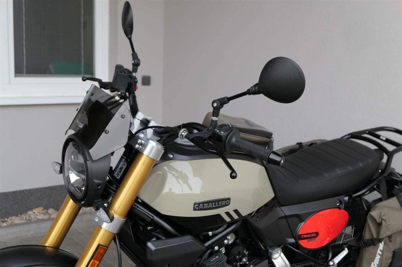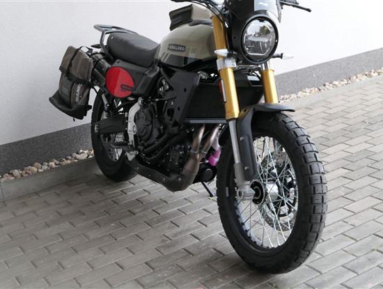 Caballero 700 spojuje výkon paralelního dvouválce Yamaha CP2, špičkovou elektroniku s náklonovým ABS – s možností deativace přímo z řídítek – a nastavitelnou kontrolou trakce, prémiový podvozek Marzocchi a brzdný systém Brembo. Díky nízké hmotnosti 175 kg, 19″ a 17″, drátovým kolům a optimalizovanému odpružení zvládá s lehkostí silnice i terén, přesně tak, jak se na autentický scrambler patří.