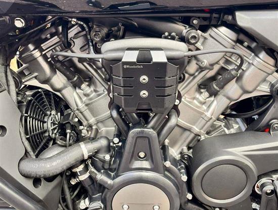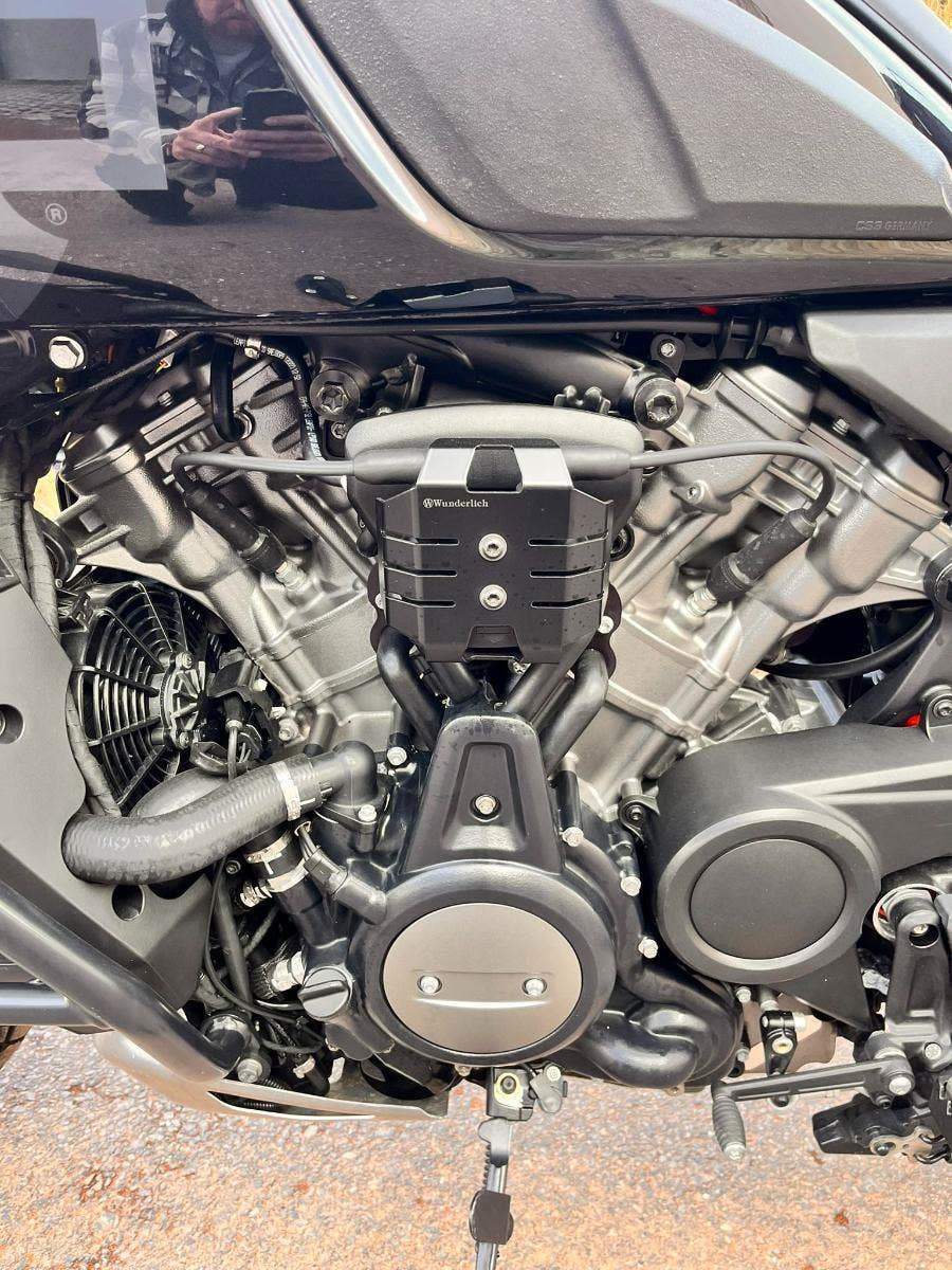 Vodou chlazený dvouválec o obsahu 1250ccm s výkonem 150 koní, 6ti stupňová převodovka.