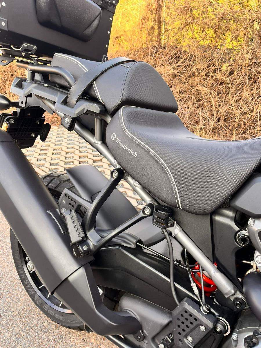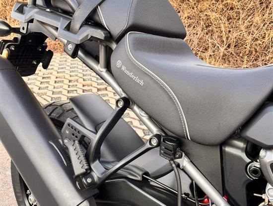Doplňková sedla, plexi, kryt brzdové nádoby a cívky a zvýšení řídítek od firmy Wunderlich.
