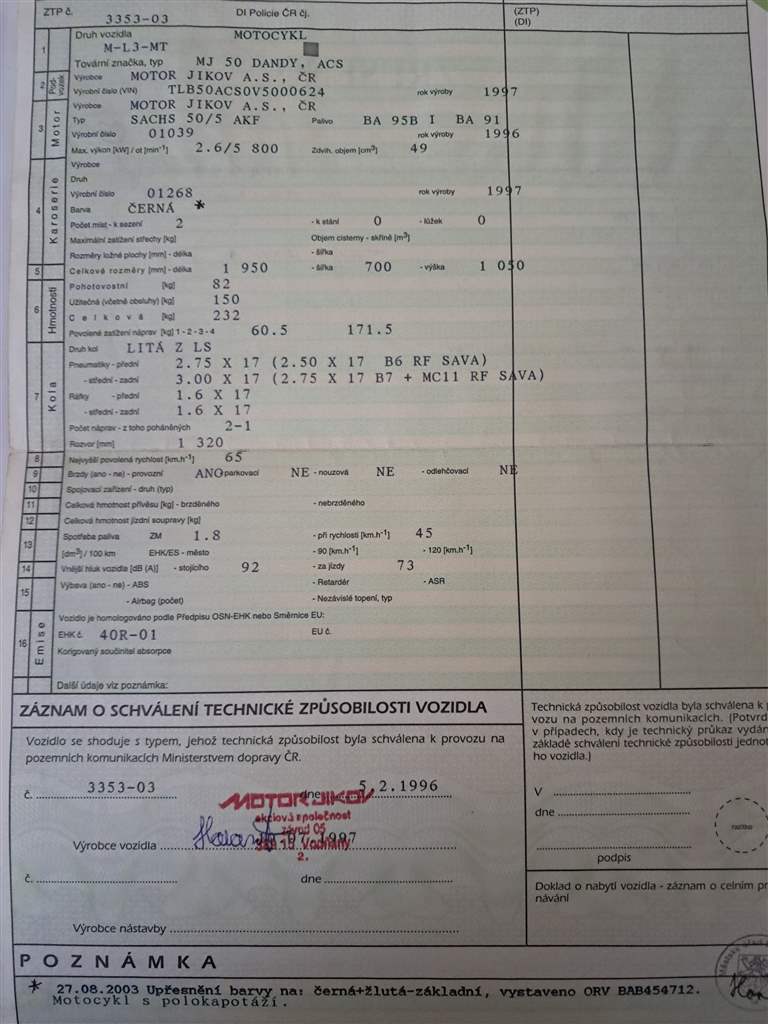 Vložit nový inzerát Upravit Motocykly na prodej Jawa 50 Dandy Přehled Upravit 50 000 Kč Jawa 50 Dandy 1996 Jedná se o model se 7 žebrovým válcem z první výroby motorka ma nový píst nový kroužky ložisko plus výměna oleje a filtrů motorka se momentálně pomalu zajíždí je to spíše moto na rekreační projetí k moto dvě sady klíčů servisní knížka plus veškeré dokumenty i s první kupní smlouvou při solidním a rychlém jednání sleva. nově přidáno Objem: 50 cm3 Vyrobeno: 1996 Najeto: neuvedeno Výkon: neuvedeno STK: 2027 Původ: CZ Výrobce: Jawa Model: 50 Dandy Zařazení: silniční, veterán Zobrazeno: 47×, servisní knížka Lokalita: Chbany , Ústecký kraj Vloženo: 6.4.2026 Typ inzerátu: bezplatná inzerce Vložit do schránky Nahlásit závadný inzerát Sdílet inzerát Prodávající Telefon: 723 279 260 Odpovedět na inzerát Podobné inzeráty Jawa Jaweta 551 1959 Kraj Vysočina 21 000 Kč Jawa 50/20 1977 Královéhradecký 9 000 Kč Jawa 350 Californian 1972 Středočeský 329 000 Kč Jawa Jawa 250/592 Panelka 1973 Ústecký 75 000 Kč Jawa 350/639 1991 Moravskoslezský 69 000 Kč Jawa 300 CL Olomoucký 149 900 Kč Jawa 350/354 Kývačka 1958 Liberecký dohodou