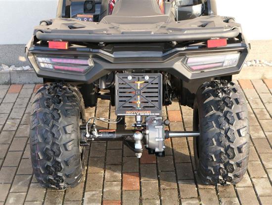 Takový čtyřkolkový spřežení ti nabídne pohodovej cval i pořádnej trysk. Překvapím tě silou i obratností. Vděčím za to 271ccm motoru se vstřikováním Bosh a kardanovýmu pohonu zadních kol. Na automatický převodovce s variátorem oceníš hlavně redukci do síly. Díky ní se nezaleknu žádnýho terénu a utáhnu i pořádně naloženej vozejk. V lese dokážu dřít jako kůň. Doslova. Pomocí elektrickýho navijáku o síle 2 500 liber ti z rokle vytáhnu i stoletý kmeny.