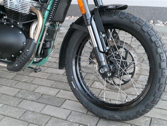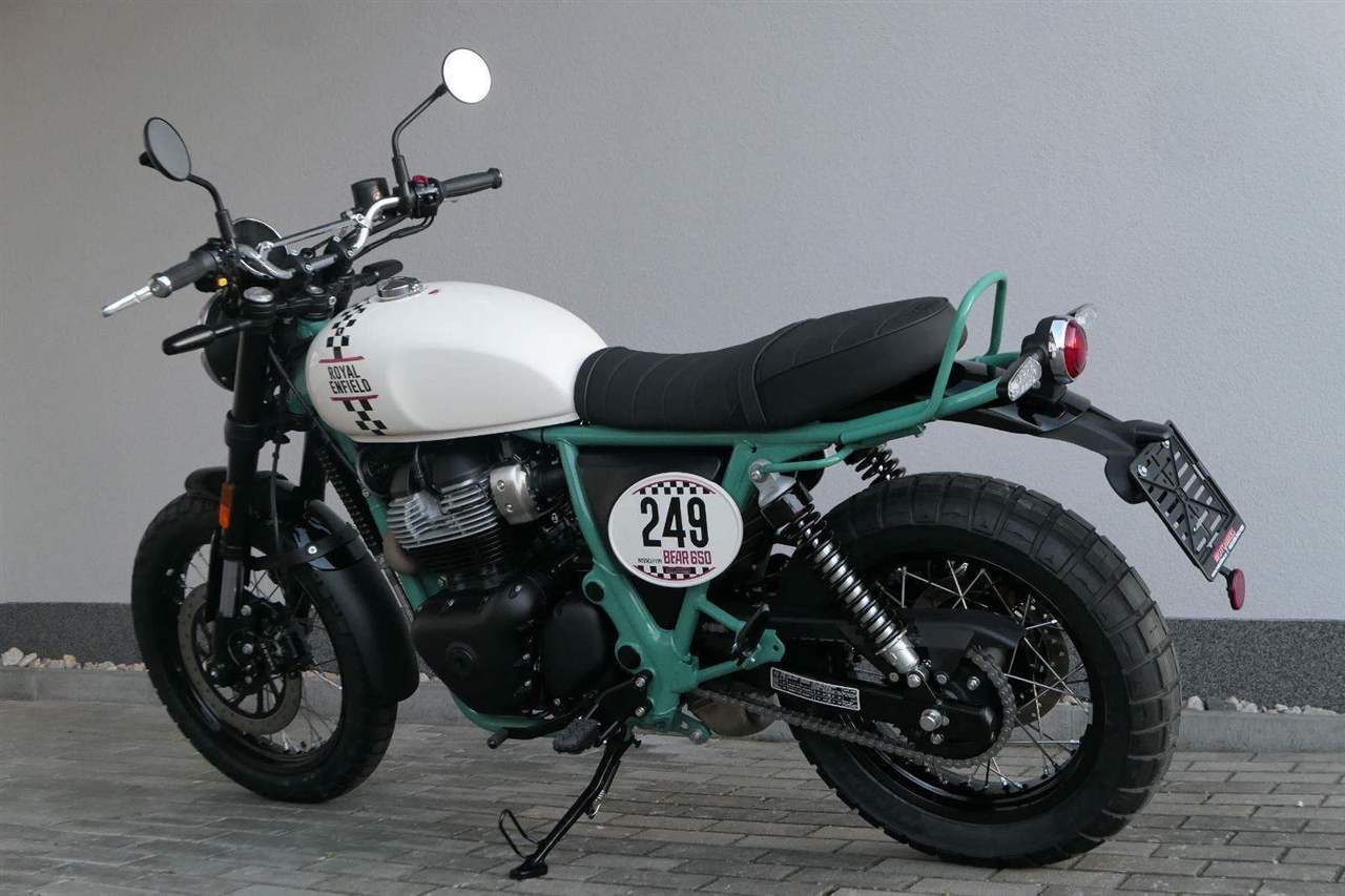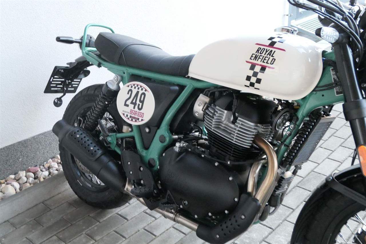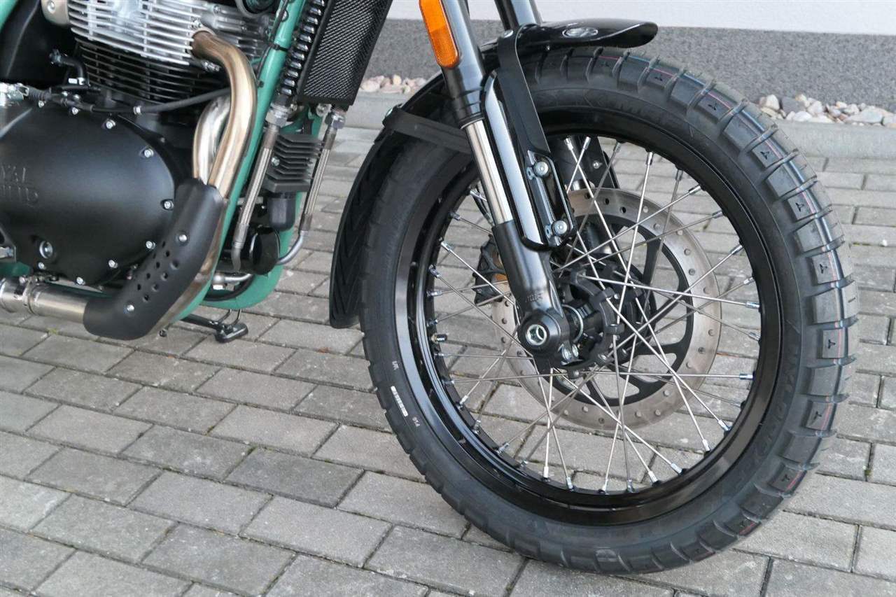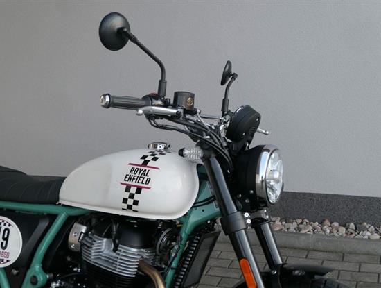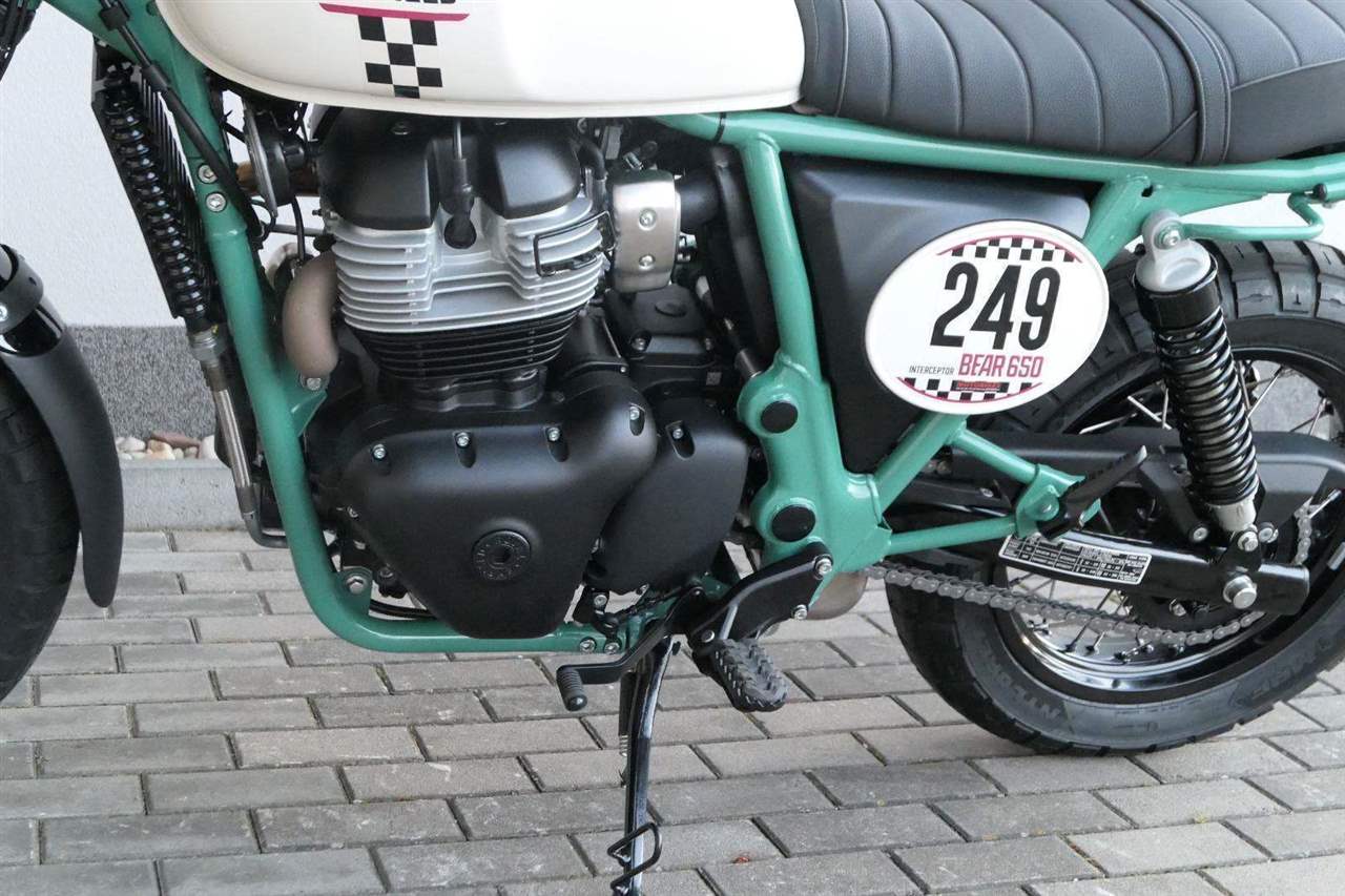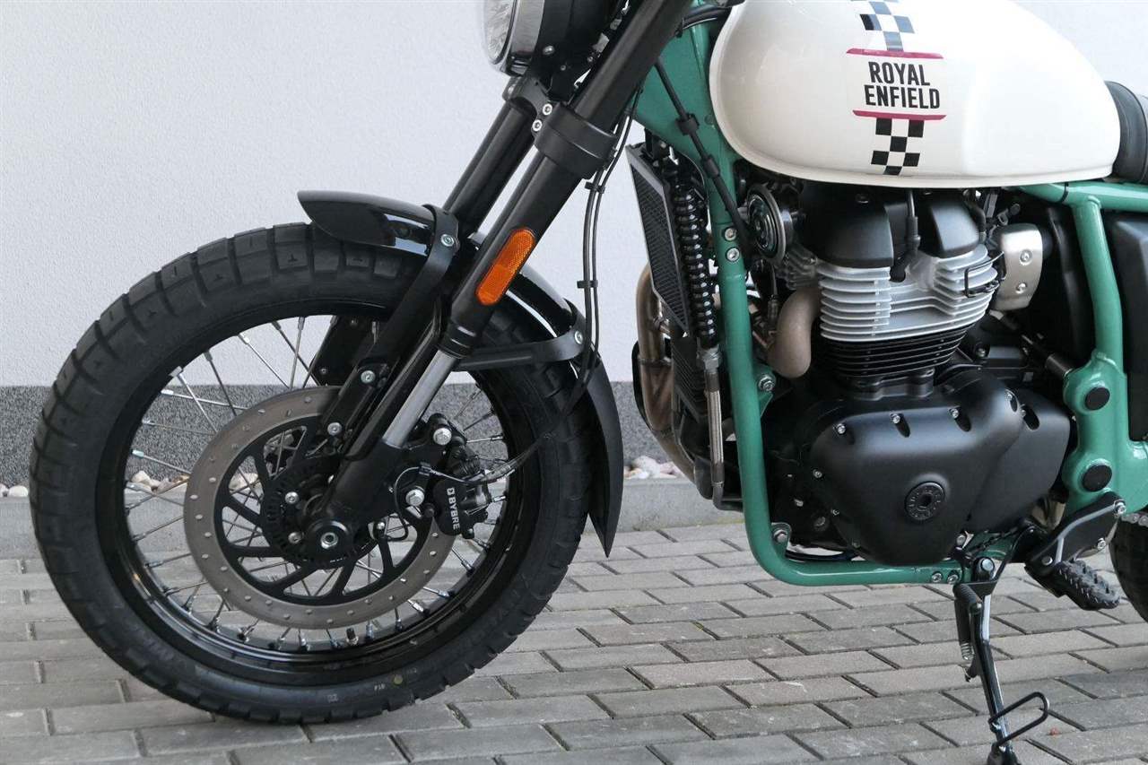 Napájení díky emocím a pohon zajišťuje ověřený paralelní dvouválec Royal Enfield o objemu 650 ccm. Je chráněn pláštěm ve vysoce odolné, prémiové černé úpravě, čímž získává robustní a účelné vzezření a je očividně dokonalým scramblerem.