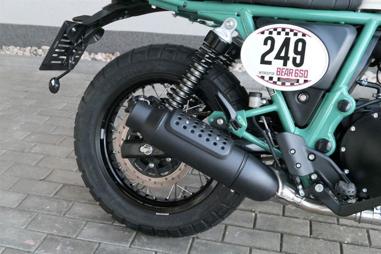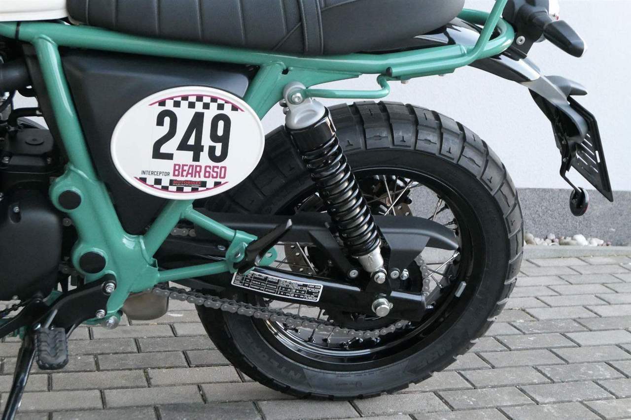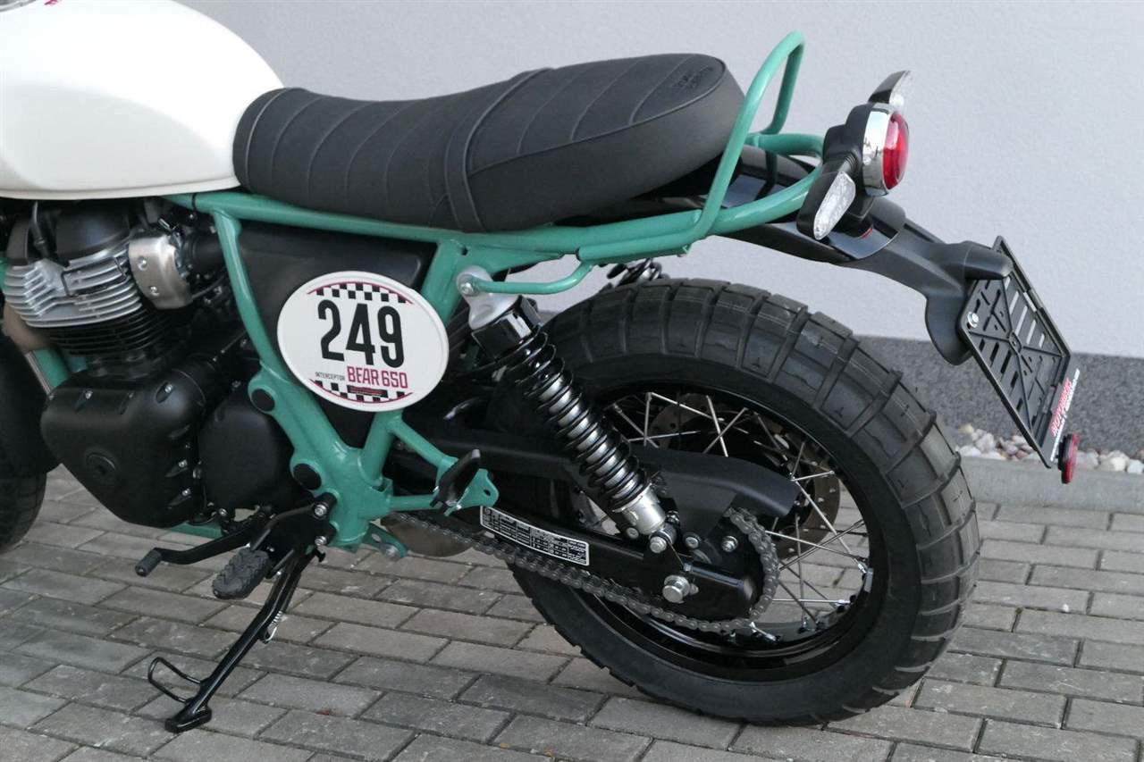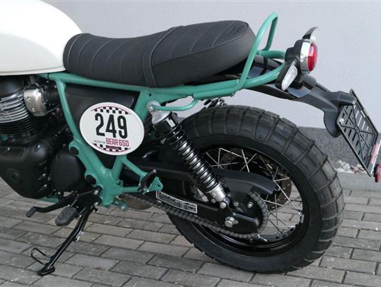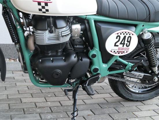 Silniční scramler s duší šedesátých let. Bear 650 ztělesňuje ducha šestnáctiletého nováčka, který se v roce 1960 seřadil vedle stovek spálených nadějí, všichni hladoví po vítězství v nejdivočejším závodě, jaký kdy kalifornská poušť znala - Big Bear Run.
