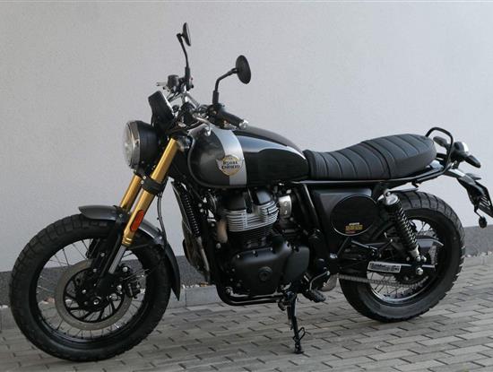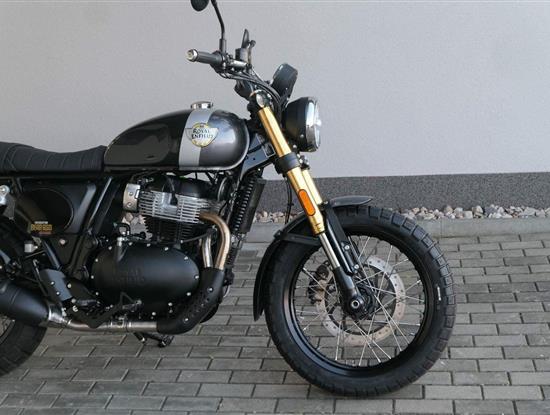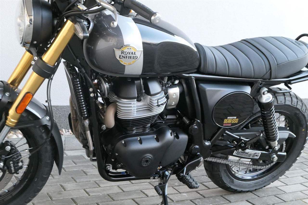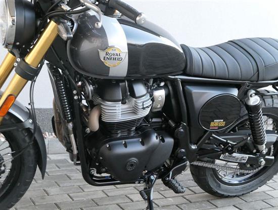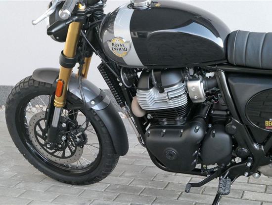 Napájení díky emocím a pohon zajišťuje ověřený paralelní dvouválec Royal Enfield o objemu 650 ccm. Je chráněn pláštěm ve vysoce odolné, prémiové černé úpravě, čímž získává robustní a účelné vzezření a je očividně dokonalým scramblerem.
