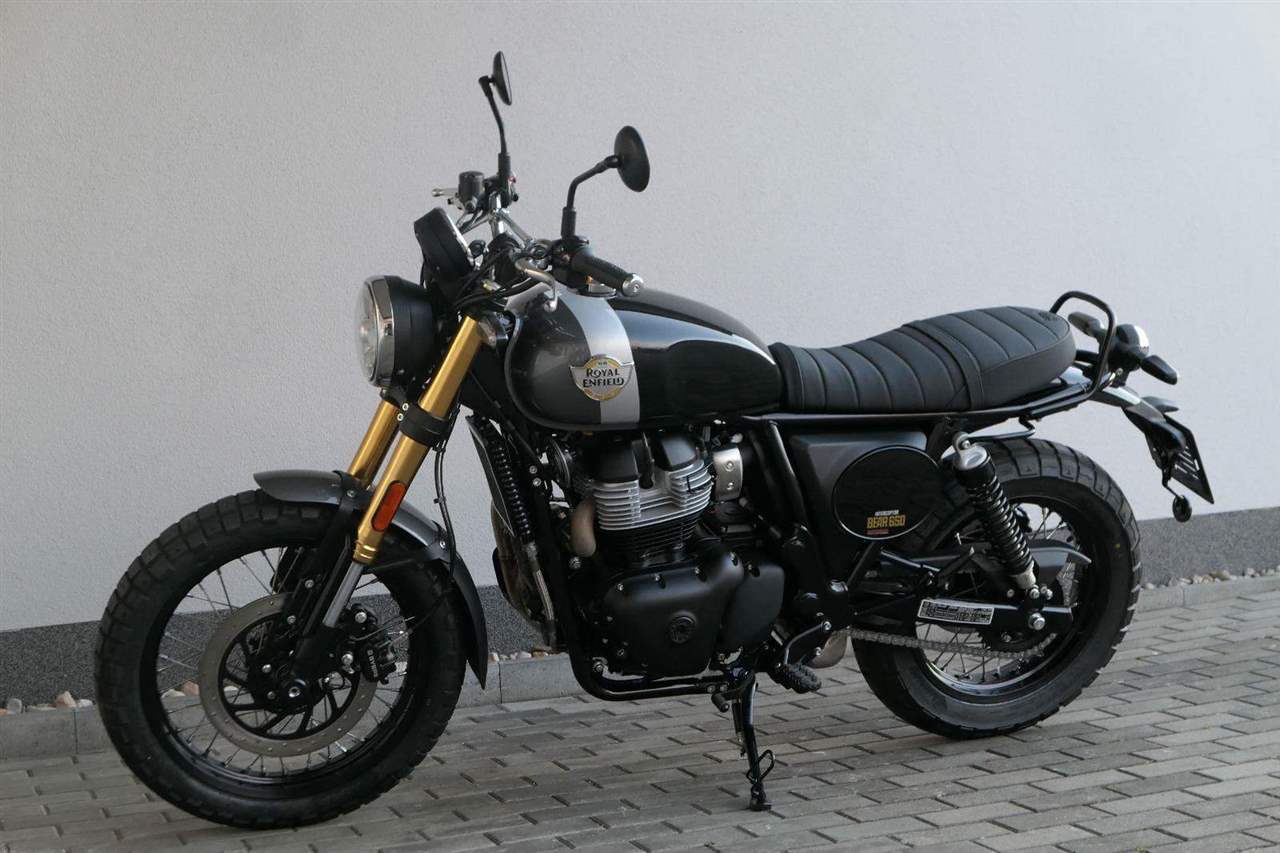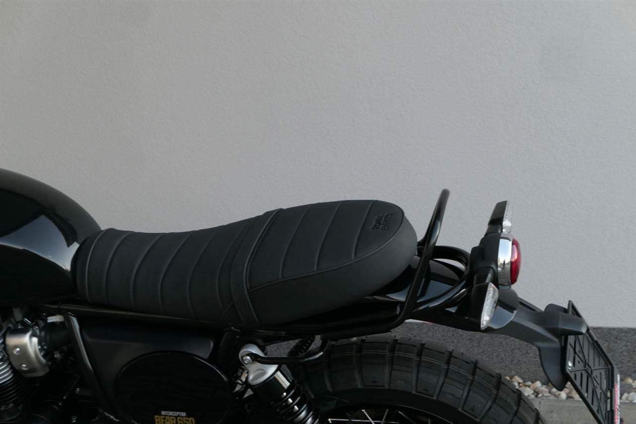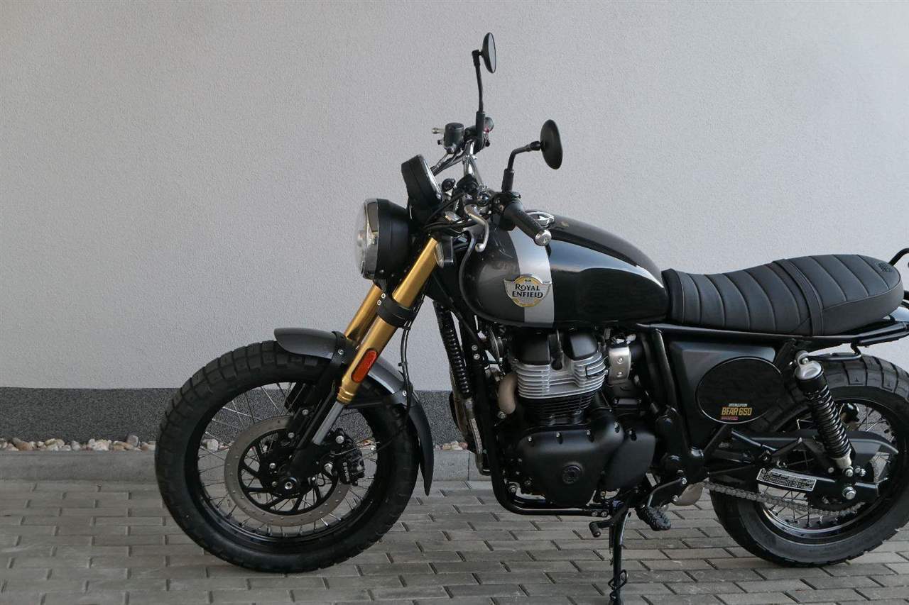 Silniční scramler s duší šedesátých let. Bear 650 ztělesňuje ducha šestnáctiletého nováčka, který se v roce 1960 seřadil vedle stovek spálených nadějí, všichni hladoví po vítězství v nejdivočejším závodě, jaký kdy kalifornská poušť znala - Big Bear Run.