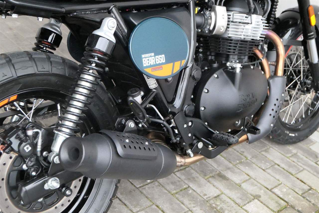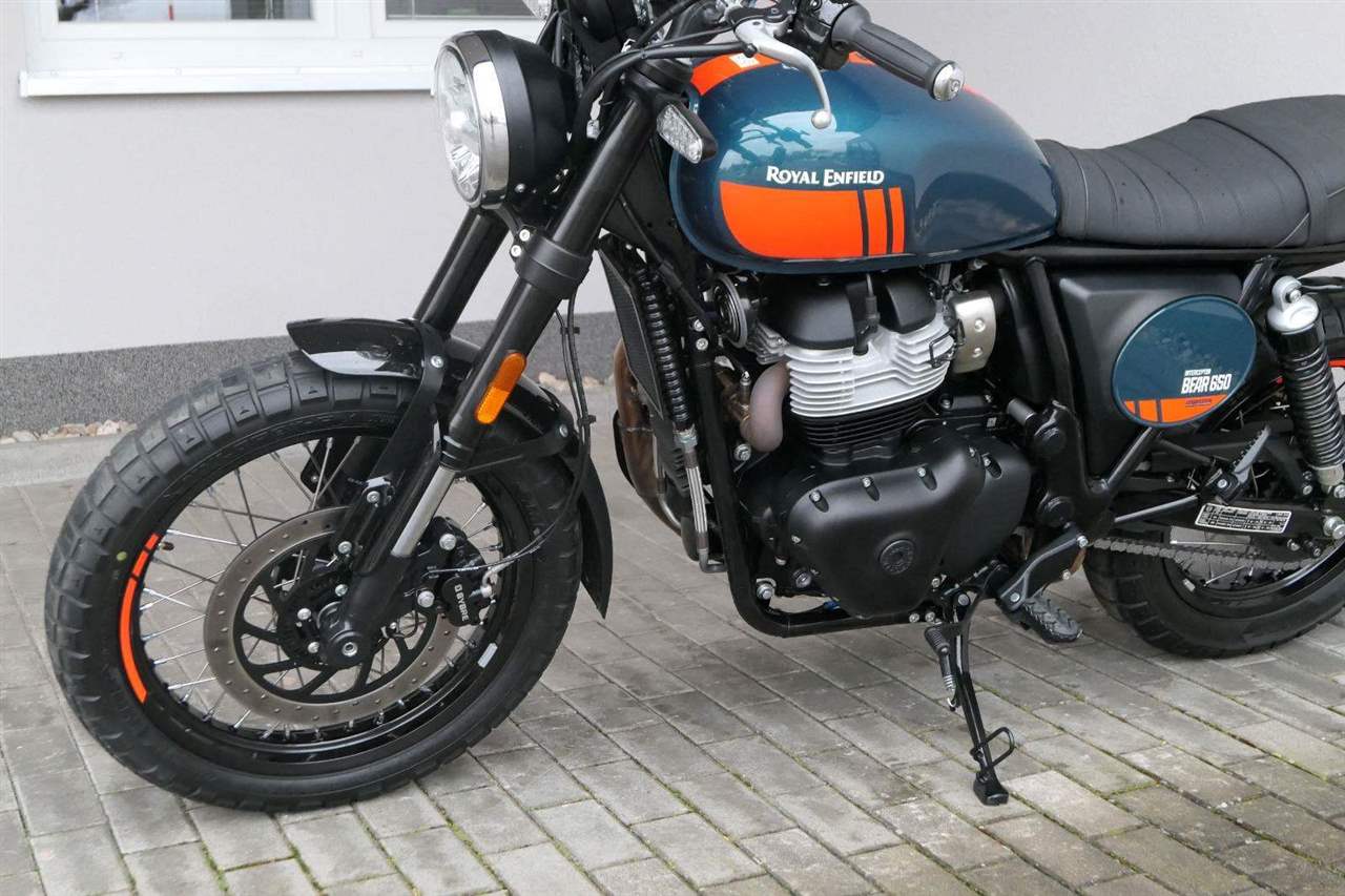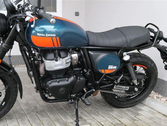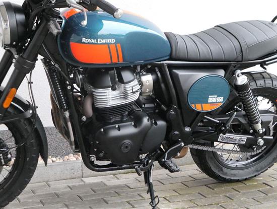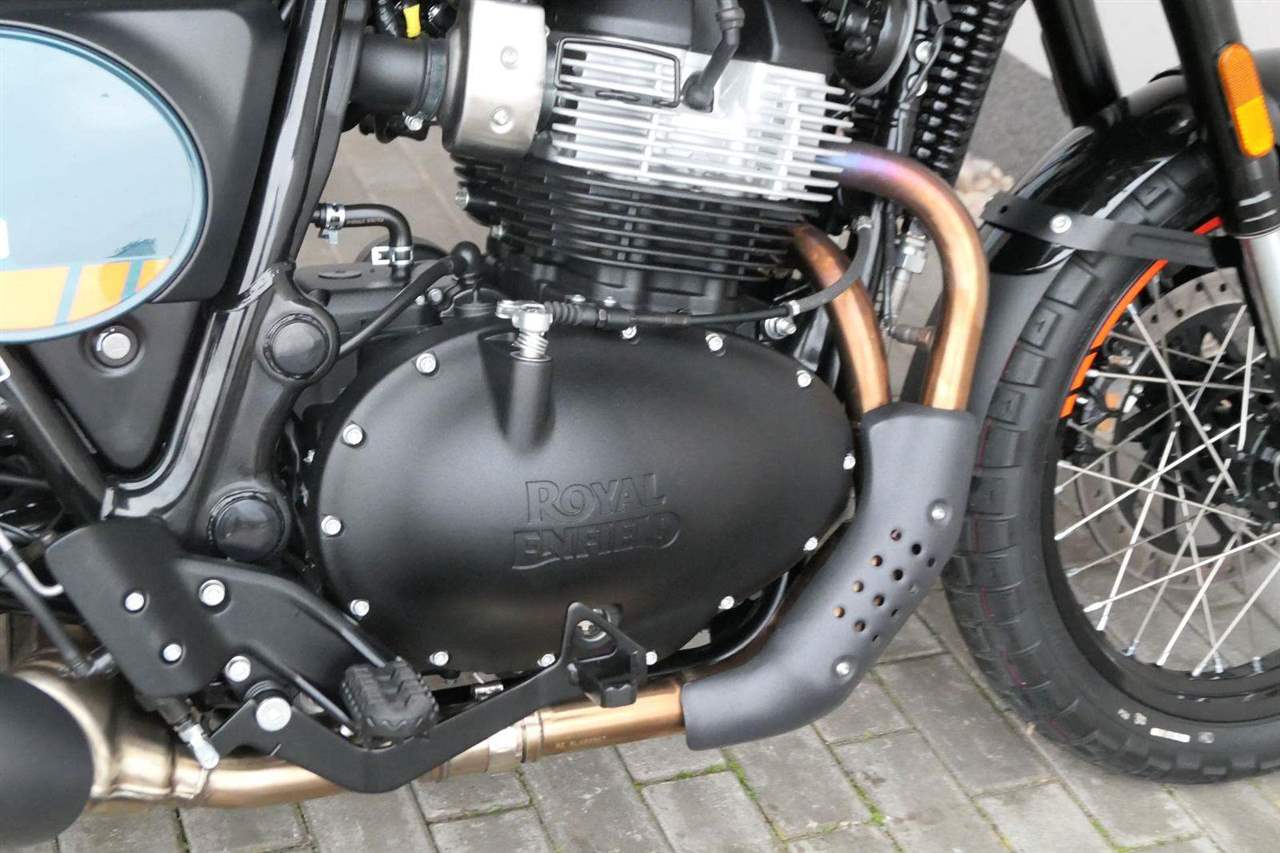 Napájení díky emocím a pohon zajišťuje ověřený paralelní dvouválec Royal Enfield o objemu 650 ccm. Je chráněn pláštěm ve vysoce odolné, prémiové černé úpravě, čímž získává robustní a účelné vzezření a je očividně dokonalým scramblerem.