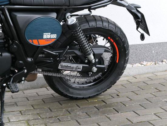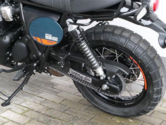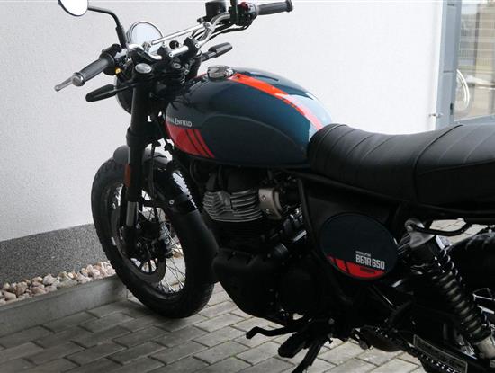 Silniční scramler s duší šedesátých let. Bear 650 ztělesňuje ducha šestnáctiletého nováčka, který se v roce 1960 seřadil vedle stovek spálených nadějí, všichni hladoví po vítězství v nejdivočejším závodě, jaký kdy kalifornská poušť znala - Big Bear Run.