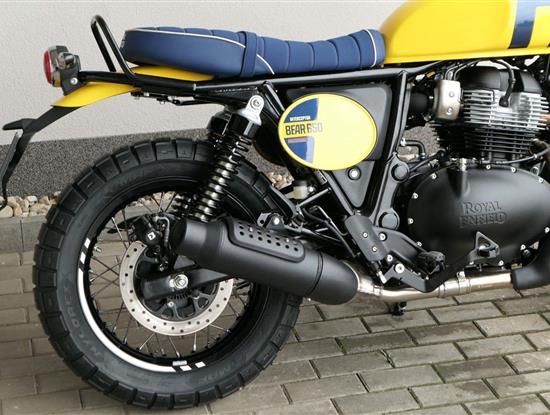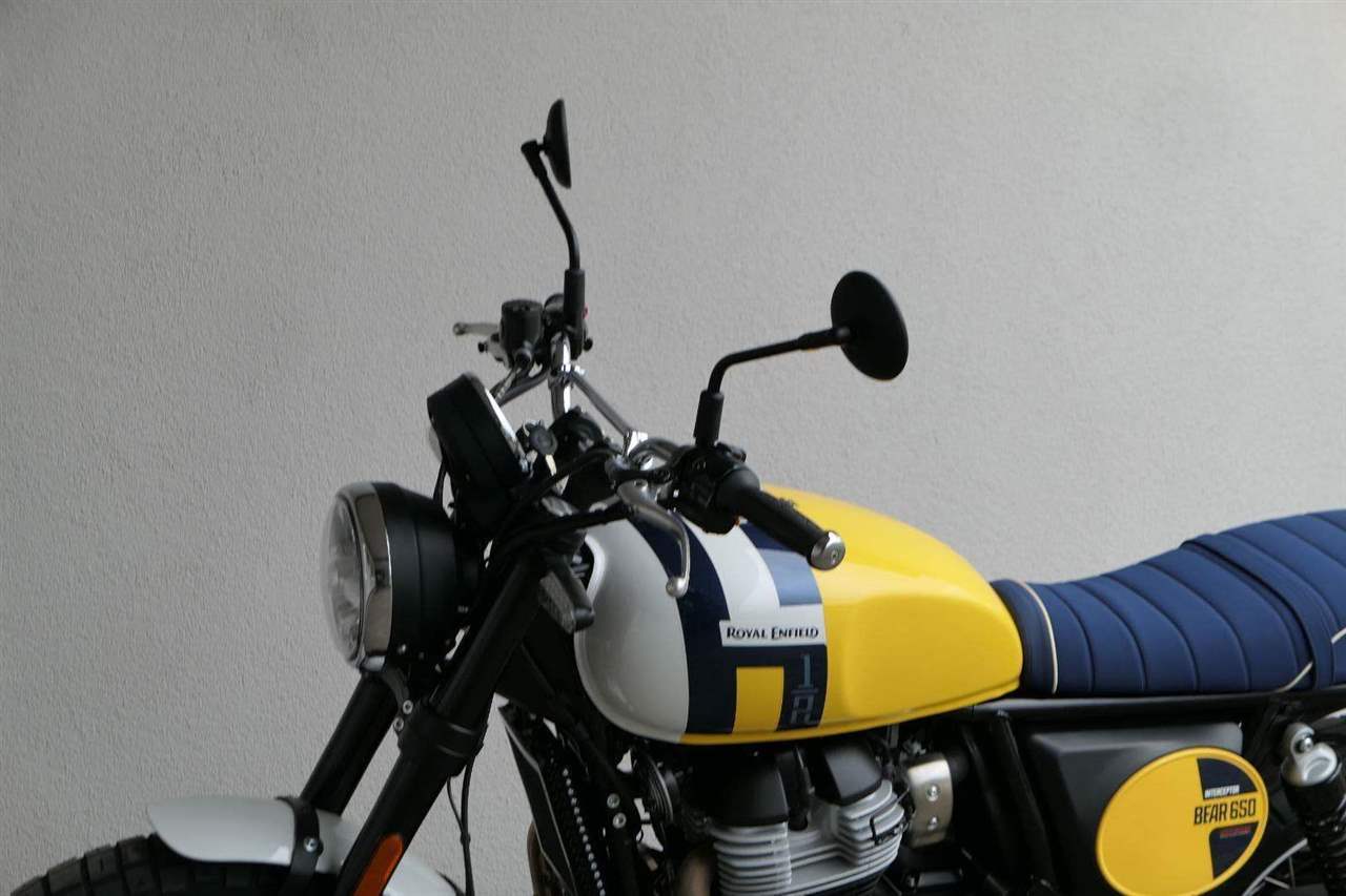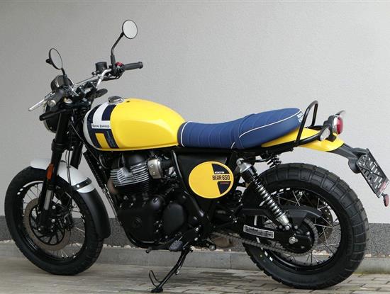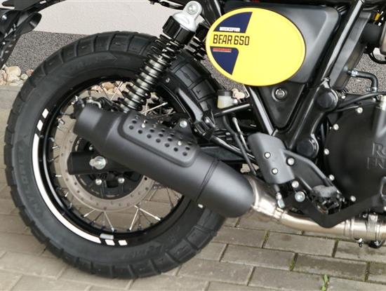 Silniční scramler s duší šedesátých let. Bear 650 ztělesňuje ducha šestnáctiletého nováčka, který se v roce 1960 seřadil vedle stovek spálených nadějí, všichni hladoví po vítězství v nejdivočejším závodě, jaký kdy kalifornská poušť znala - Big Bear Run.