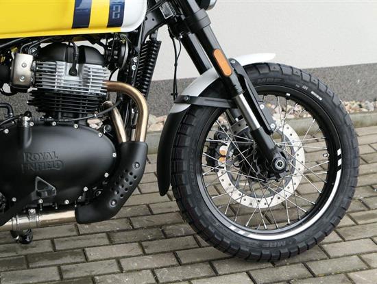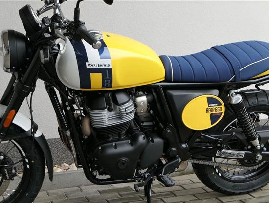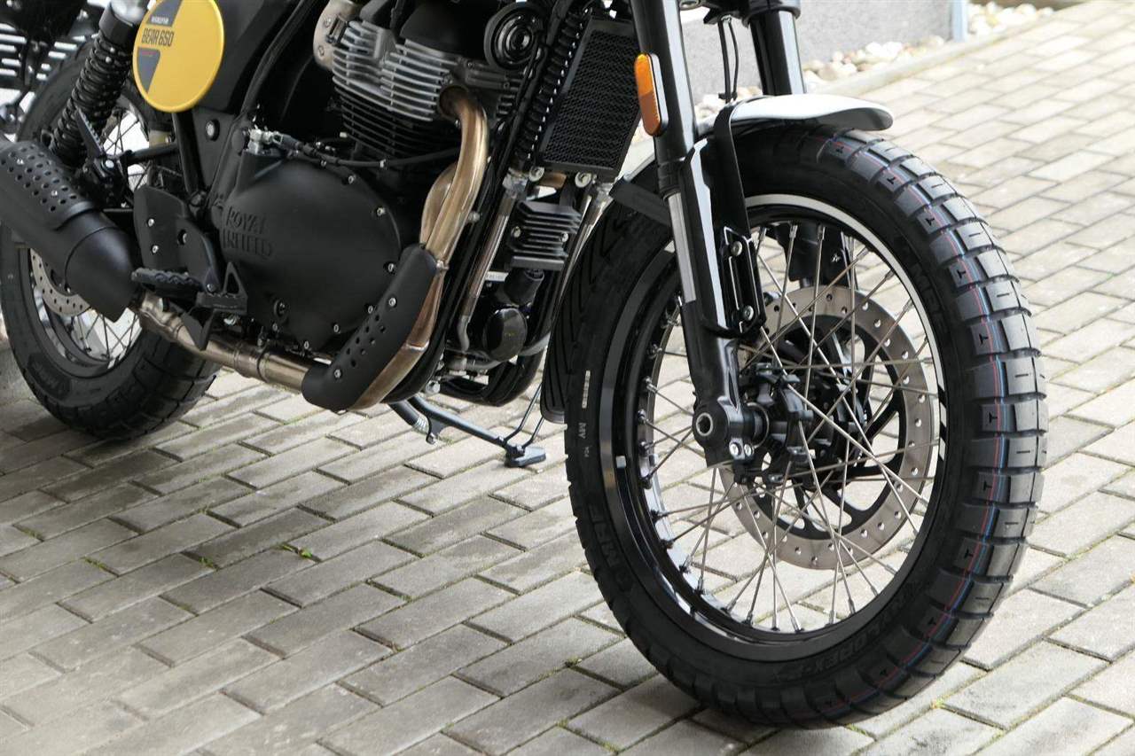 Napájení díky emocím a pohon zajišťuje ověřený paralelní dvouválec Royal Enfield o objemu 650 ccm. Je chráněn pláštěm ve vysoce odolné, prémiové černé úpravě, čímž získává robustní a účelné vzezření a je očividně dokonalým scramblerem.