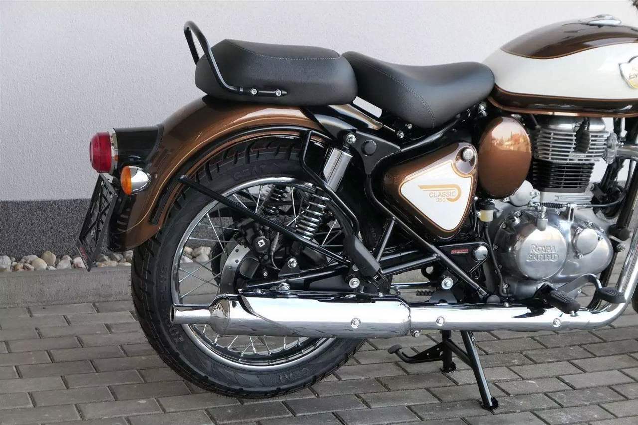Ústředním prvkem nového Classic 350 je zcela nové srdce, které bije do jedinečného rytmu Royal Enfield. Ve spojení s novým rámem se dvěma spodními trubkami, který jezdí pevně a věrně, solidní a spolehlivou kvalitou konstrukce, je Classic vaším spojencem, ať už je váš cíl kdekoliv. Vzpřímená jízdní poloha dává jezdci Classicu vynikající vzhled na silnici, zatímco brzdy s větším průměrem zvyšují jeho brzdnou sílu. Ale silnější neznamená jen schopný a odolný, Classic je obdařen také pohodlím, s vylepšeným širším sedlem, které zpříjemňuje jízdu.
