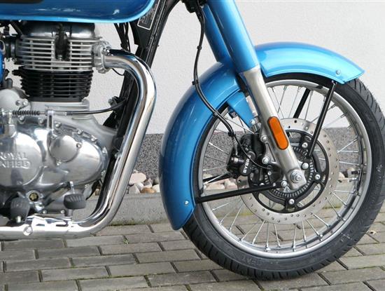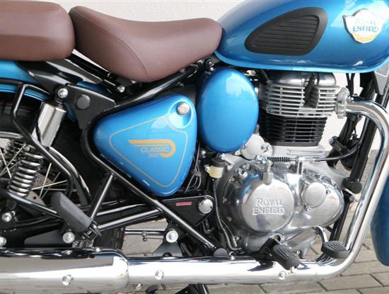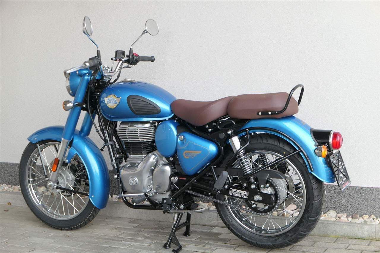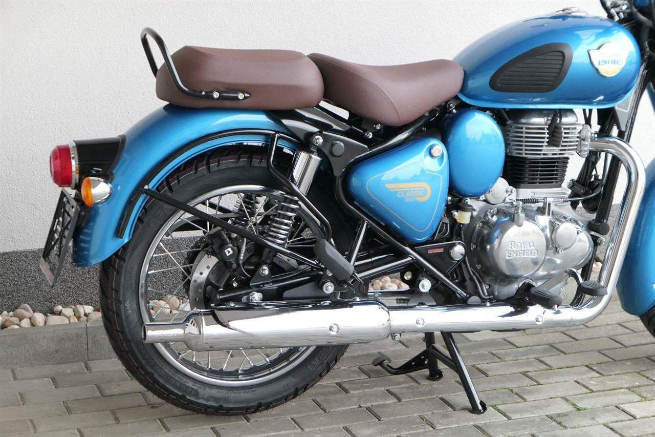 Ústředním prvkem nového Classic 350 je zcela nové srdce, které bije do jedinečného rytmu Royal Enfield. Ve spojení s novým rámem se dvěma spodními trubkami, který jezdí pevně a věrně, solidní a spolehlivou kvalitou konstrukce, je Classic vaším spojencem, ať už je váš cíl kdekoliv. Vzpřímená jízdní poloha dává jezdci Classicu vynikající vzhled na silnici, zatímco brzdy s větším průměrem zvyšují jeho brzdnou sílu. Ale silnější neznamená jen schopný a odolný, Classic je obdařen také pohodlím, s vylepšeným širším sedlem, které zpříjemňuje jízdu.