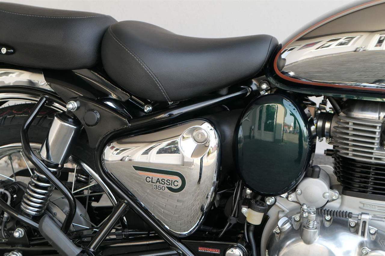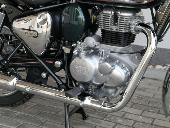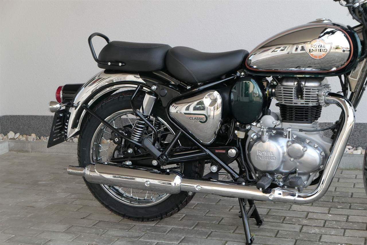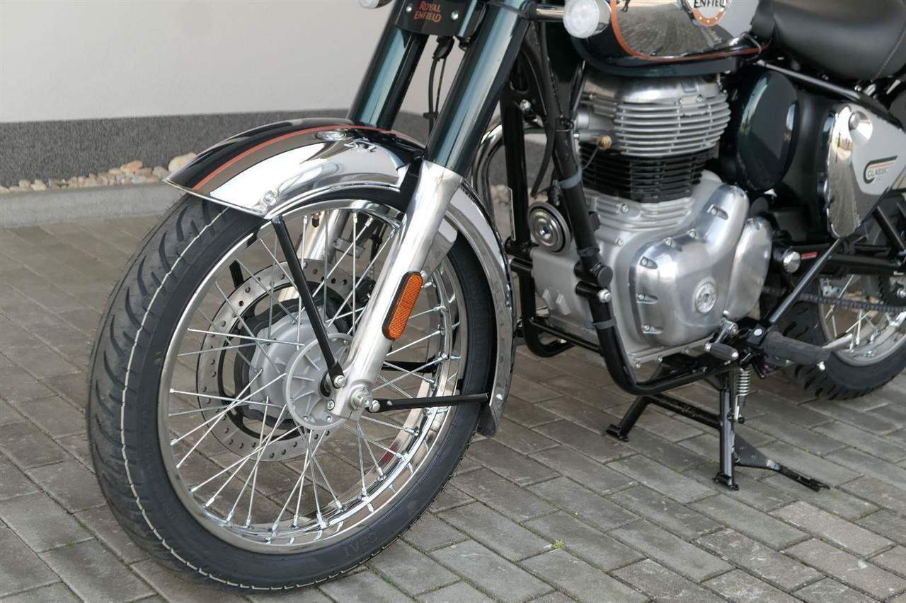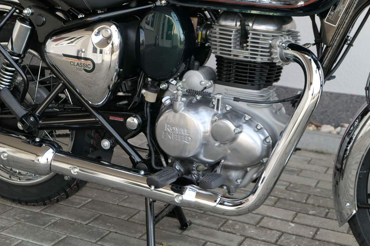 Ústředním prvkem nového Classic 350 je zcela nové srdce, které bije do jedinečného rytmu Royal Enfield. Ve spojení s novým rámem se dvěma spodními trubkami, který jezdí pevně a věrně, solidní a spolehlivou kvalitou konstrukce, je Classic vaším spojencem, ať už je váš cíl kdekoliv. Vzpřímená jízdní poloha dává jezdci Classicu vynikající vzhled na silnici, zatímco brzdy s větším průměrem zvyšují jeho brzdnou sílu. Ale silnější neznamená jen schopný a odolný, Classic je obdařen také pohodlím, s vylepšeným širším sedlem, které zpříjemňuje jízdu.