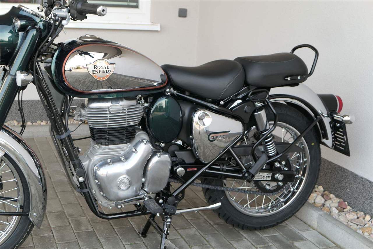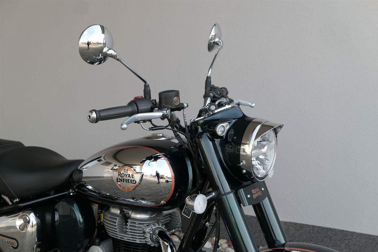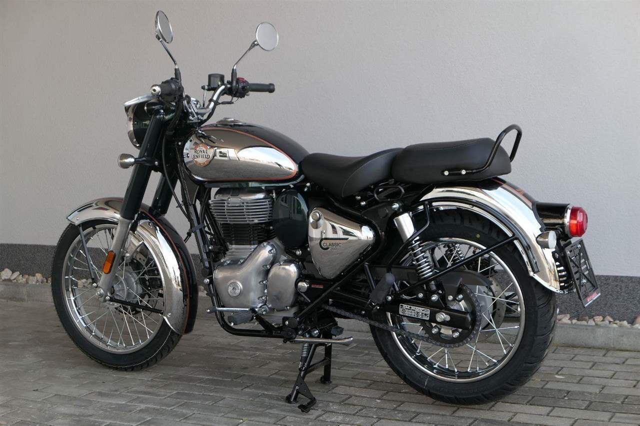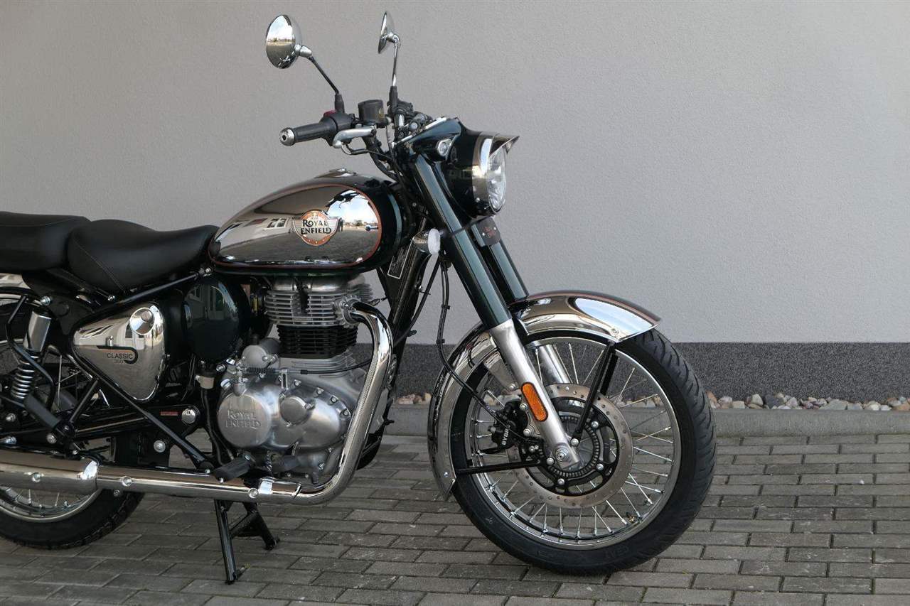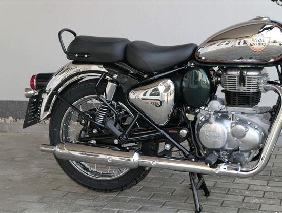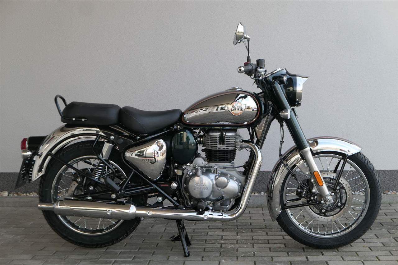 Ústředním prvkem nového Classic 350 je zcela nové srdce, které bije do jedinečného rytmu Royal Enfield. Ve spojení s novým rámem se dvěma spodními trubkami, který jezdí pevně a věrně, solidní a spolehlivou kvalitou konstrukce, je Classic vaším spojencem, ať už je váš cíl kdekoliv. Vzpřímená jízdní poloha dává jezdci Classicu vynikající vzhled na silnici, zatímco brzdy s větším průměrem zvyšují jeho brzdnou sílu. Ale silnější neznamená jen schopný a odolný, Classic je obdařen také pohodlím, s vylepšeným širším sedlem, které zpříjemňuje jízdu.