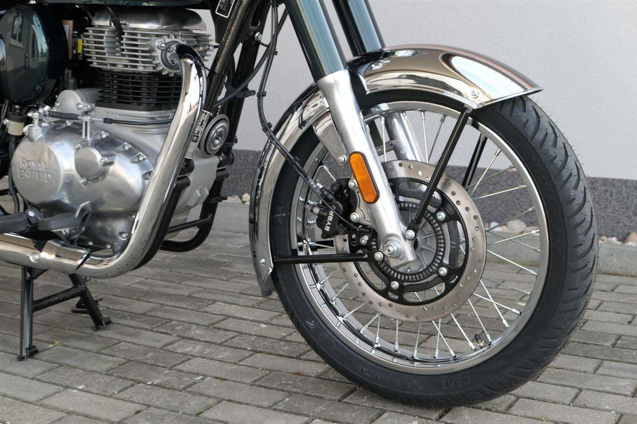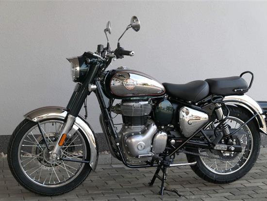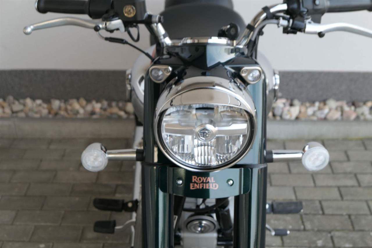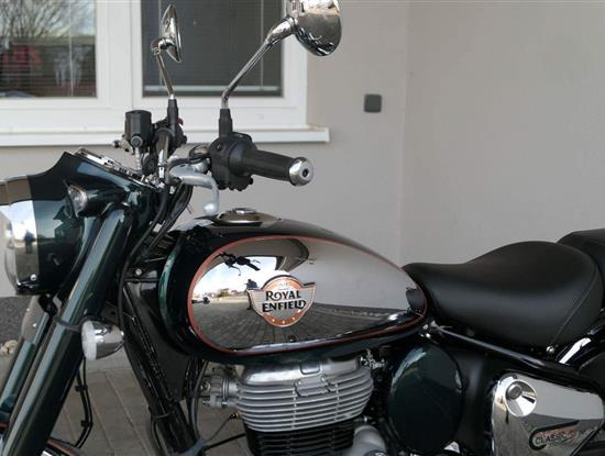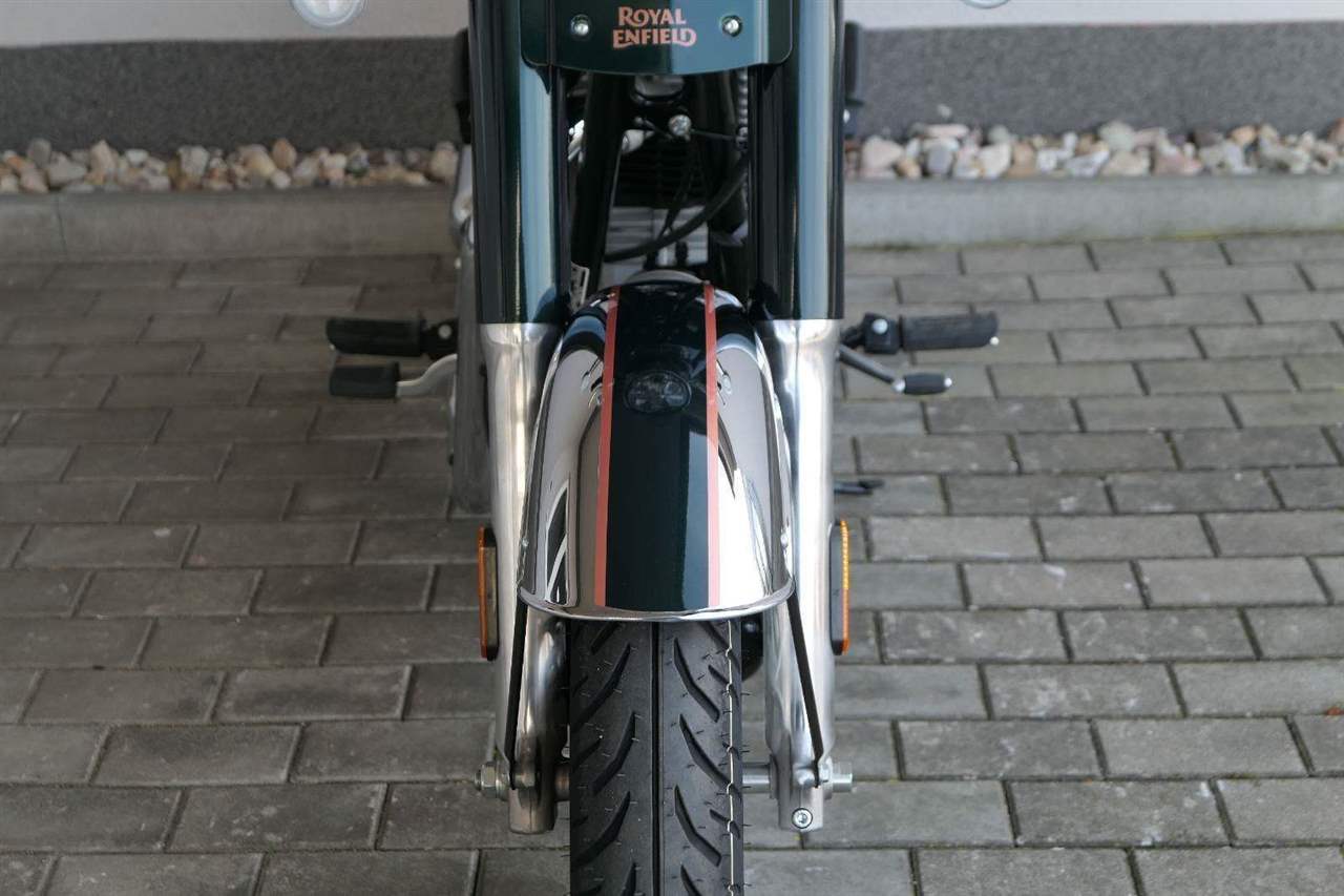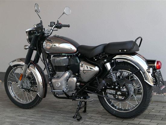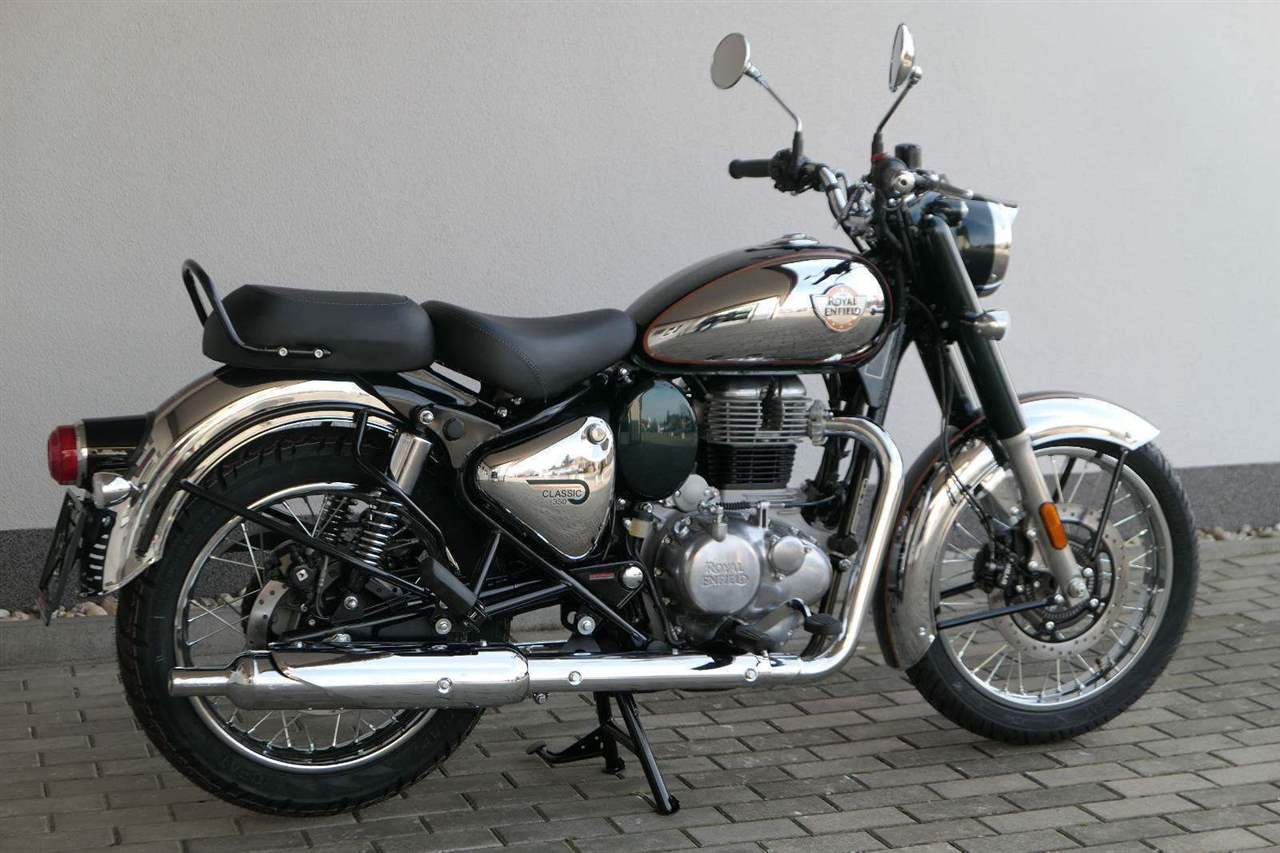 Ústředním prvkem nového Classic 350 je zcela nové srdce, které bije do jedinečného rytmu Royal Enfield. Ve spojení s novým rámem se dvěma spodními trubkami, který jezdí pevně a věrně, solidní a spolehlivou kvalitou konstrukce, je Classic vaším spojencem, ať už je váš cíl kdekoliv. Vzpřímená jízdní poloha dává jezdci Classicu vynikající vzhled na silnici, zatímco brzdy s větším průměrem zvyšují jeho brzdnou sílu. Ale silnější neznamená jen schopný a odolný, Classic je obdařen také pohodlím, s vylepšeným širším sedlem, které zpříjemňuje jízdu.